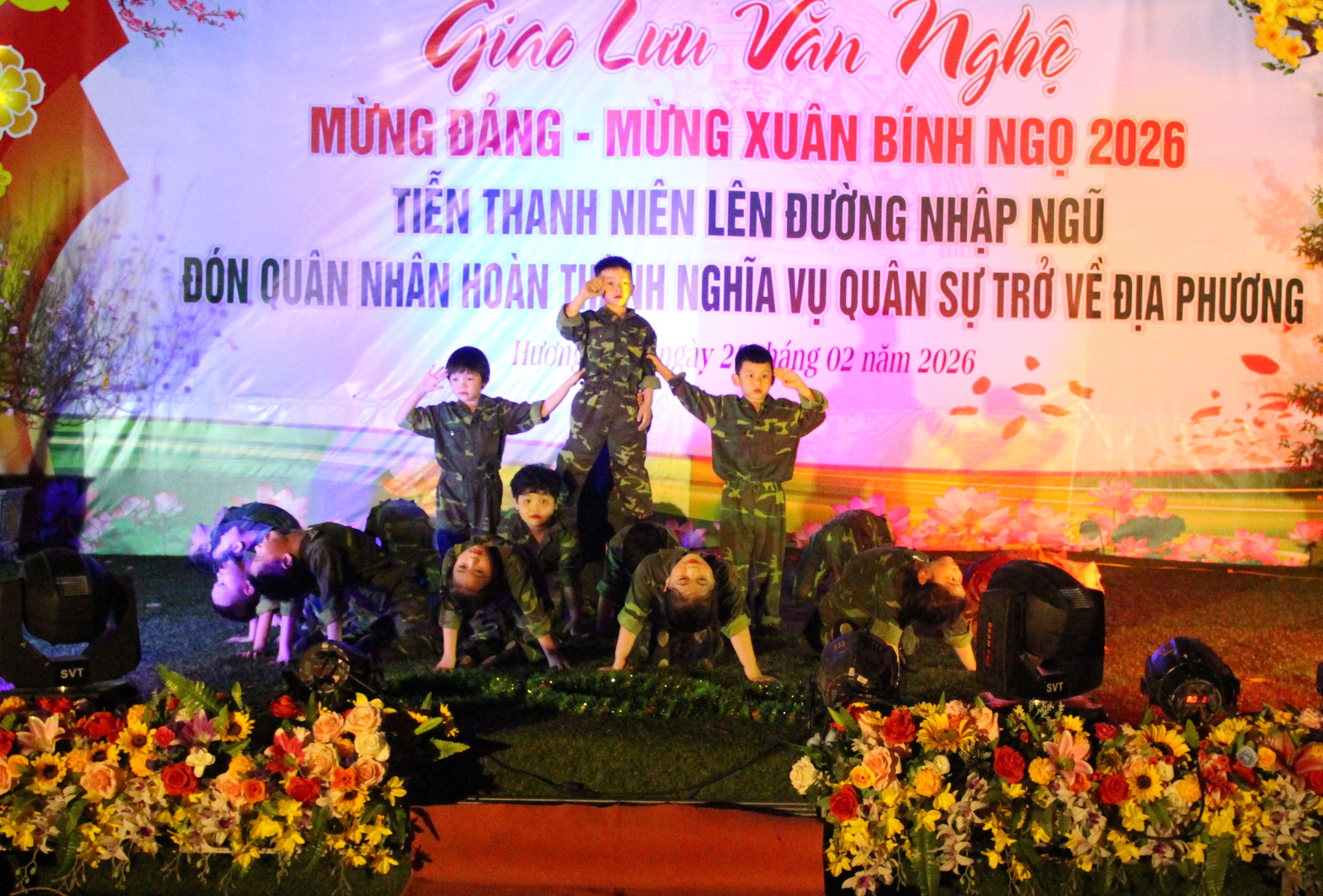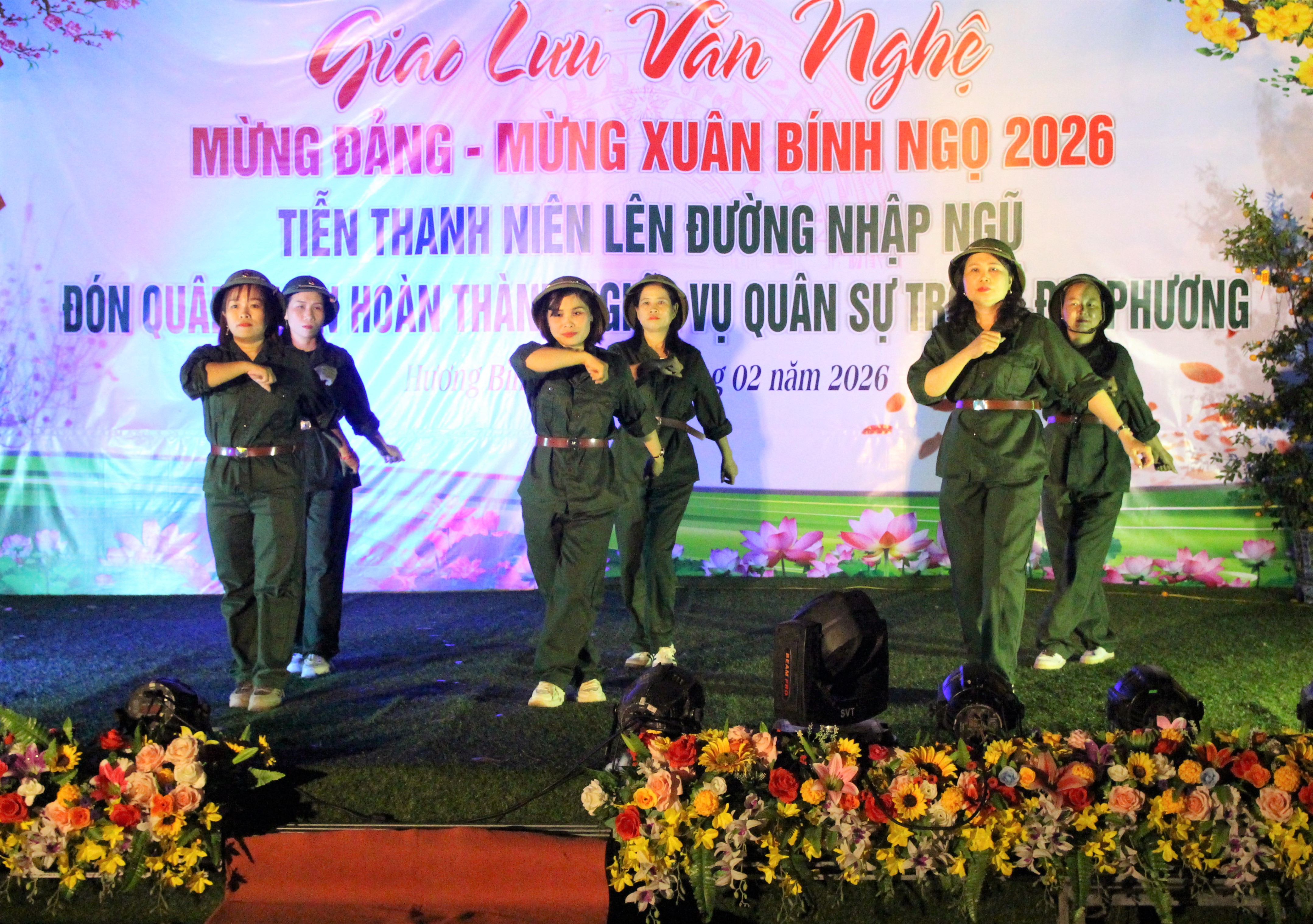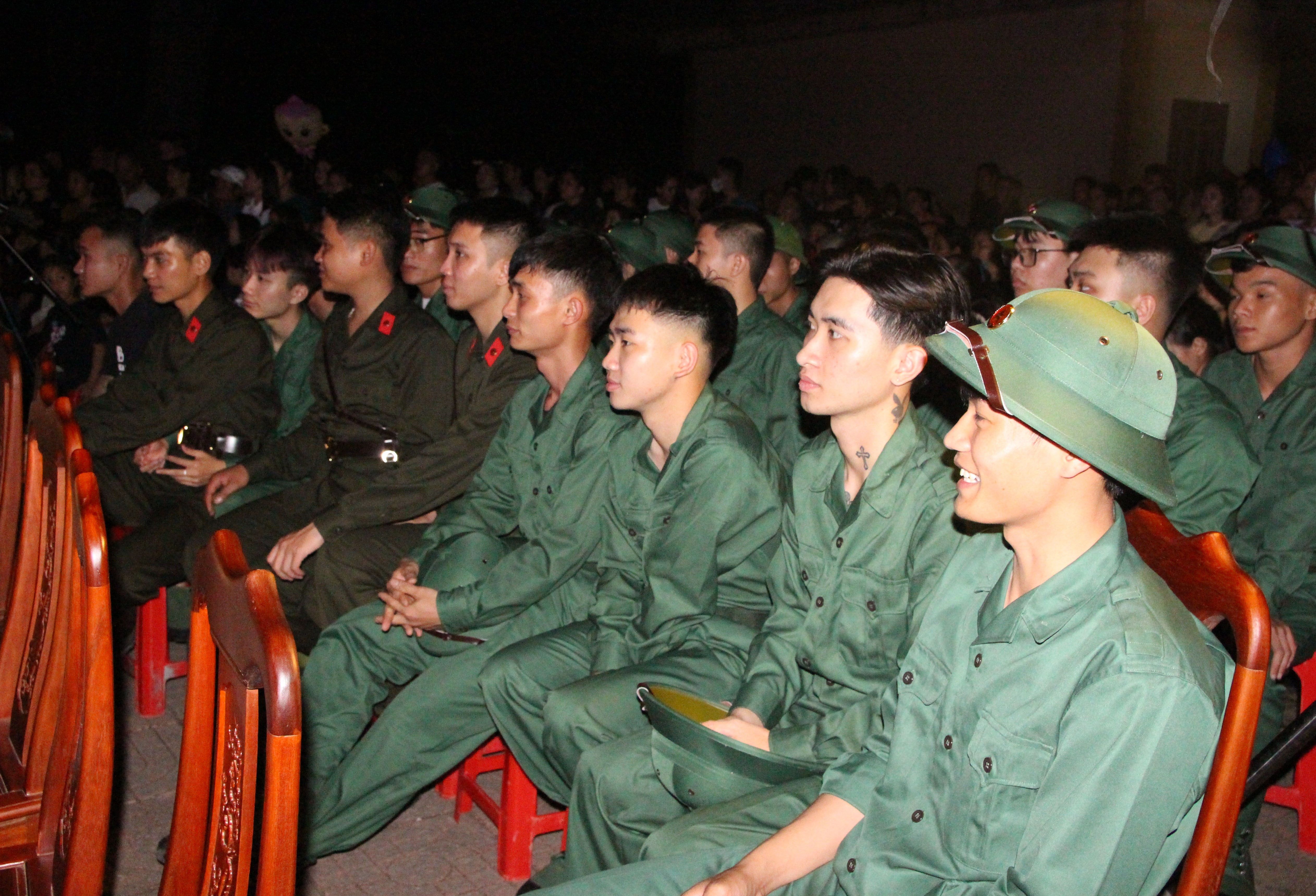 Trong không khí vui tươi, phấn khởi, các đại biểu và tân binh được thưởng thức các tiết mục văn nghệ ca ngợi Đảng, Bác Hồ kính yêu, tình yêu quê hương, đất nước và truyền thống anh hùng của quân đội; ca ngợi hình ảnh người chiến sĩ trên mặt trận xây dựng và bảo vệ Tổ quốc.