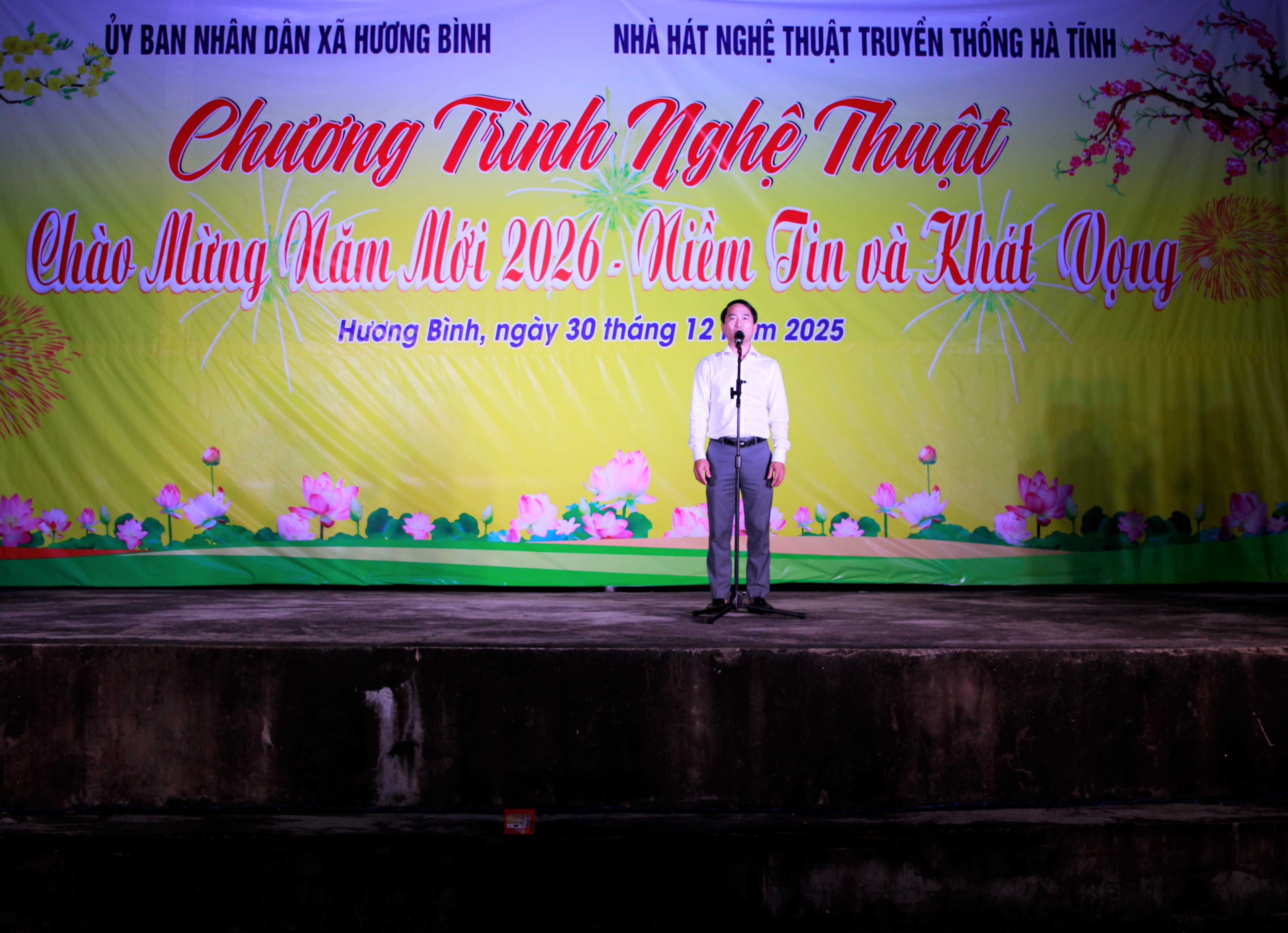 Tối ngày 30/12/2025, xã Hương Bình phối hợp với Nhà hát truyền thống nghệ thuật Hà Tĩnh tổ chức Chương trình nghệ thuật “Chào mừng năm mới 2026, niềm tin và khát vọng”.