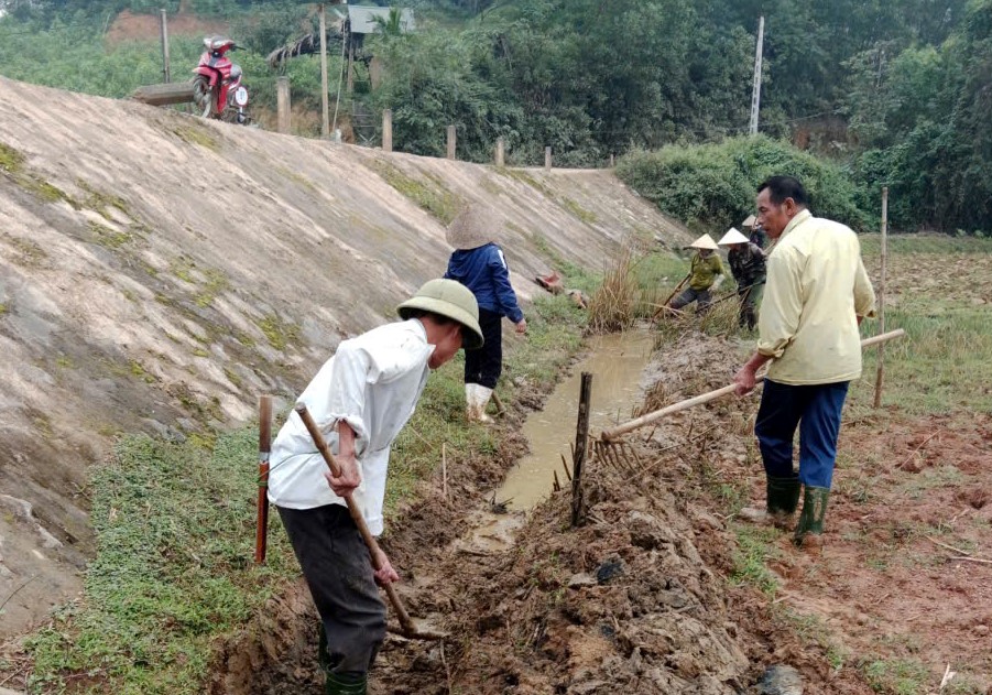 Bà con nông dân hối hả ra đồng nạo vét kênh mương.