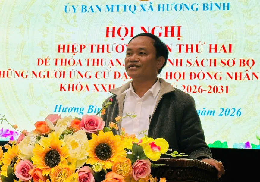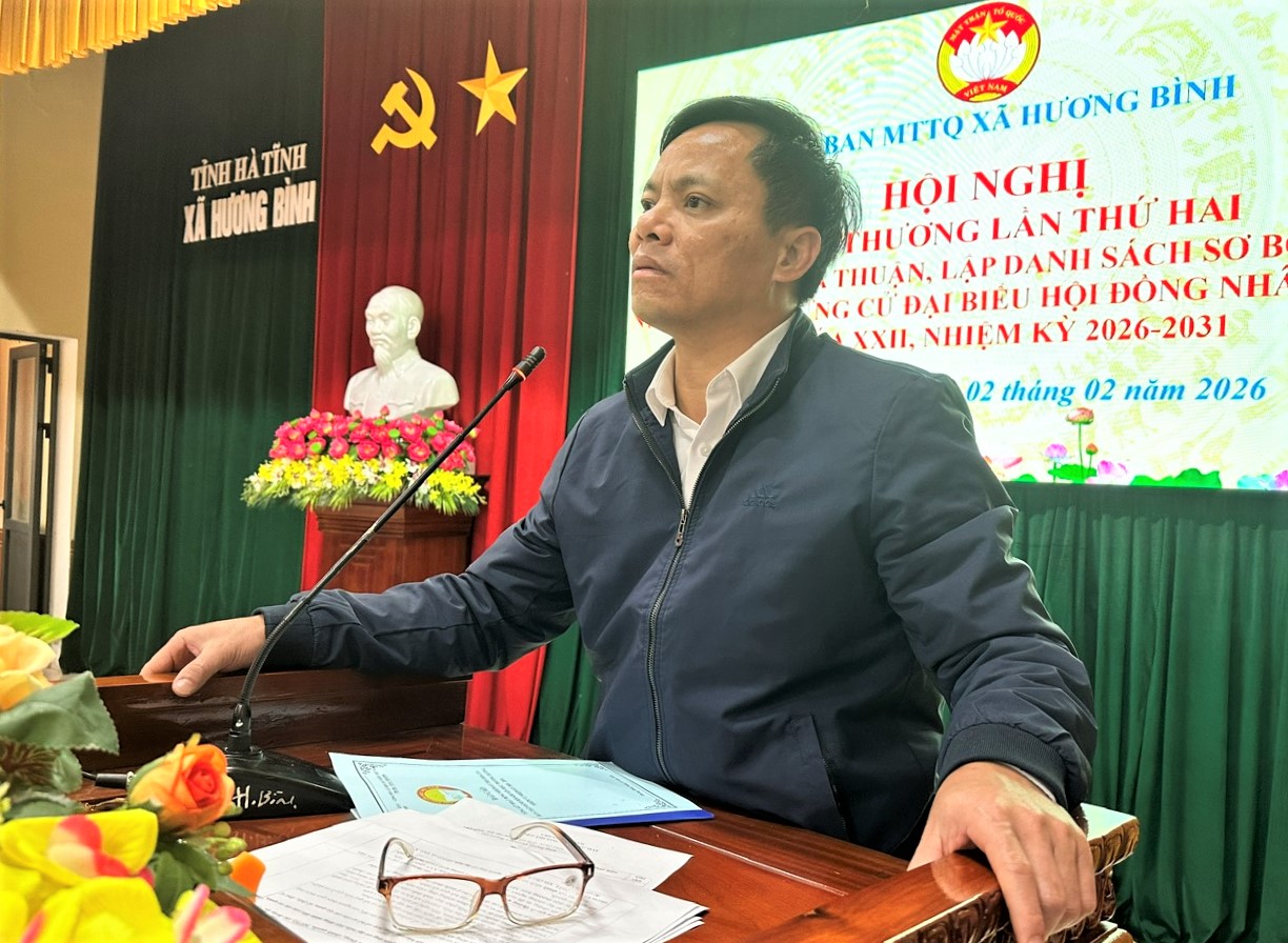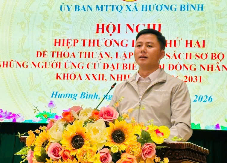Chiều ngày 2/2/2026, Ban Thường trực Ủy ban MTTQ Việt Nam xã Hương Bình tổ chức hội nghị hiệp thương lần thứ 2 để thỏa thuận lập danh sách sơ bộ những người ứng cử đại biểu HĐND xã, khóa XXII, nhiệm kỳ 2026 – 2031.