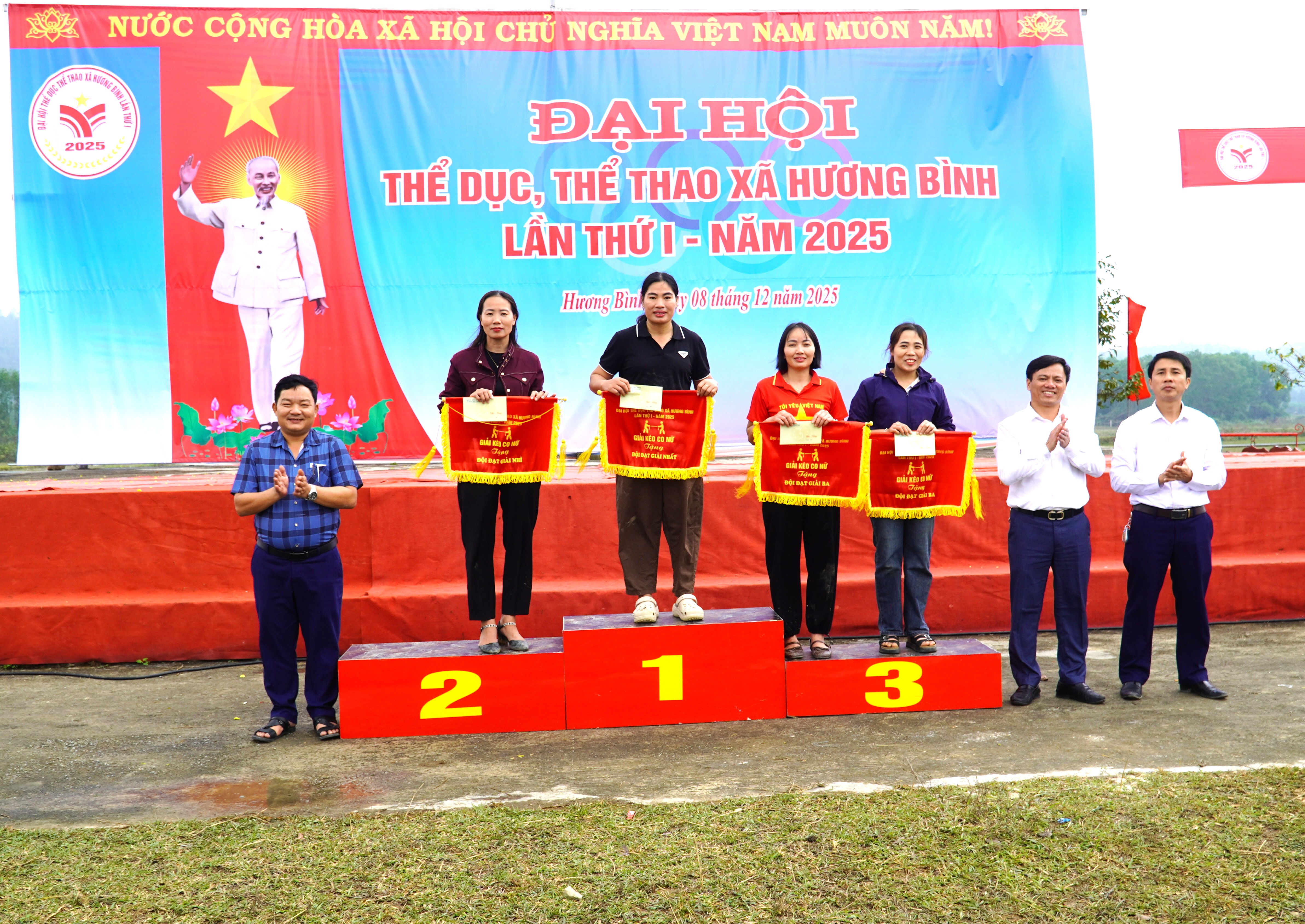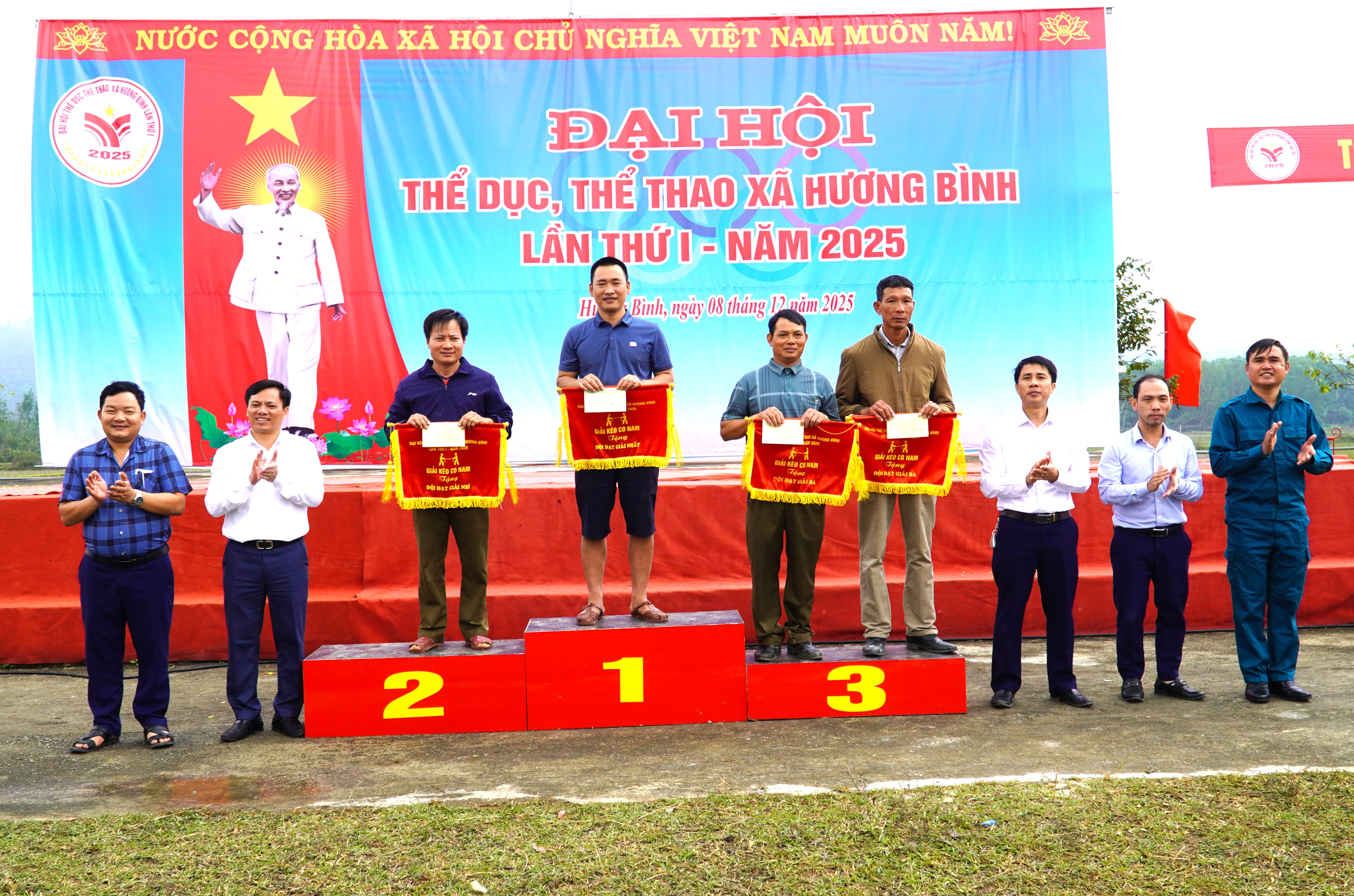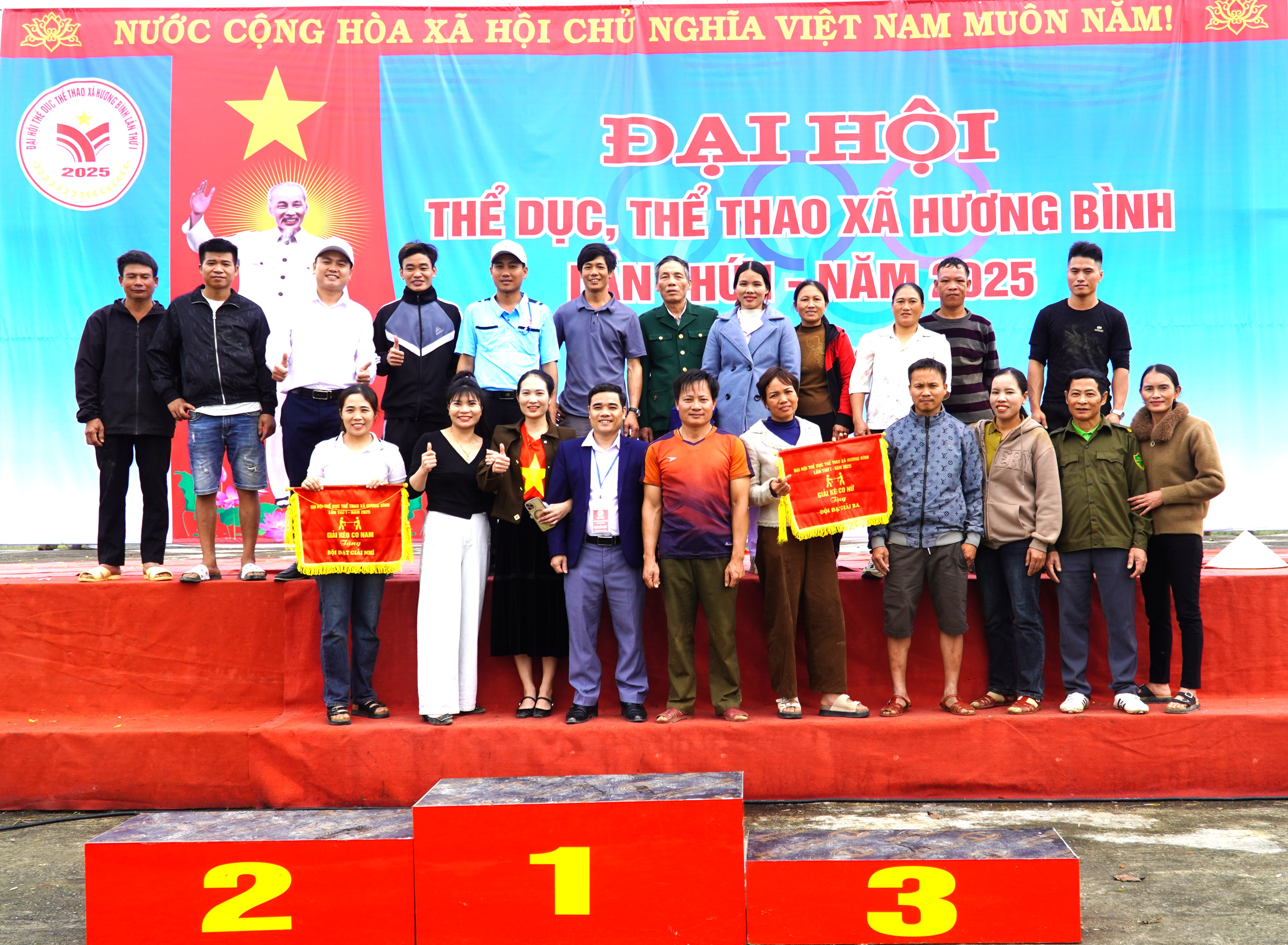 Kết thúc Đại hội TDTT xã Hương Bình lần thứ I, năm 2025. Ban tổ chức đã trao giải nhất, nhì và 2 giả ba môn kéo co Nam là thôn 5 Phúc Đồng, thôn 8 Phúc Đồng, thôn 9 và thôn 12 Hòa Hải; Môn kéo co Nữ trao giải nhất, nhì và 2 giải ba cho đội thôn Bình Trung, thôn 4, thôn 8 Hòa Hải và thôn 8 Phúc Đồng.