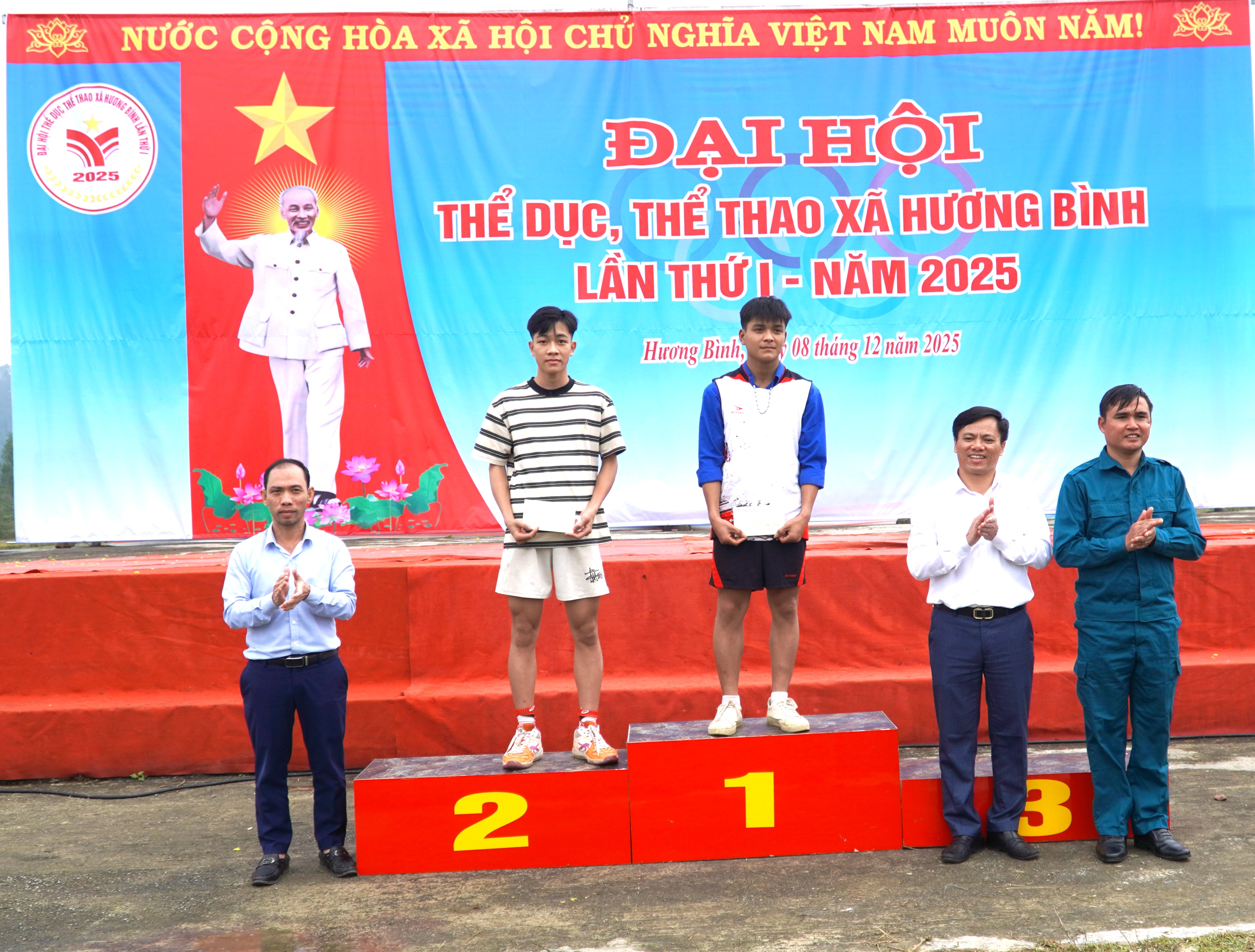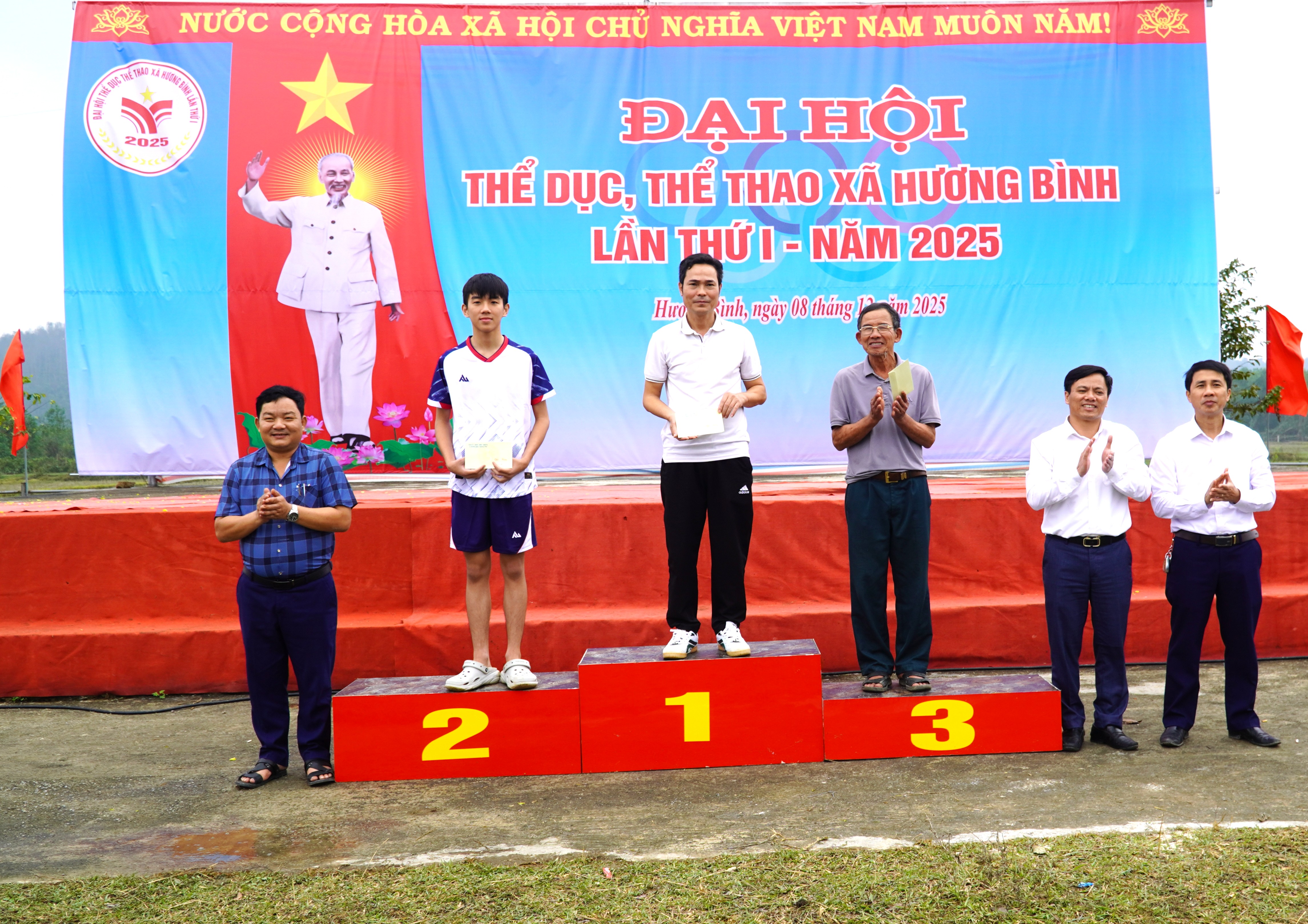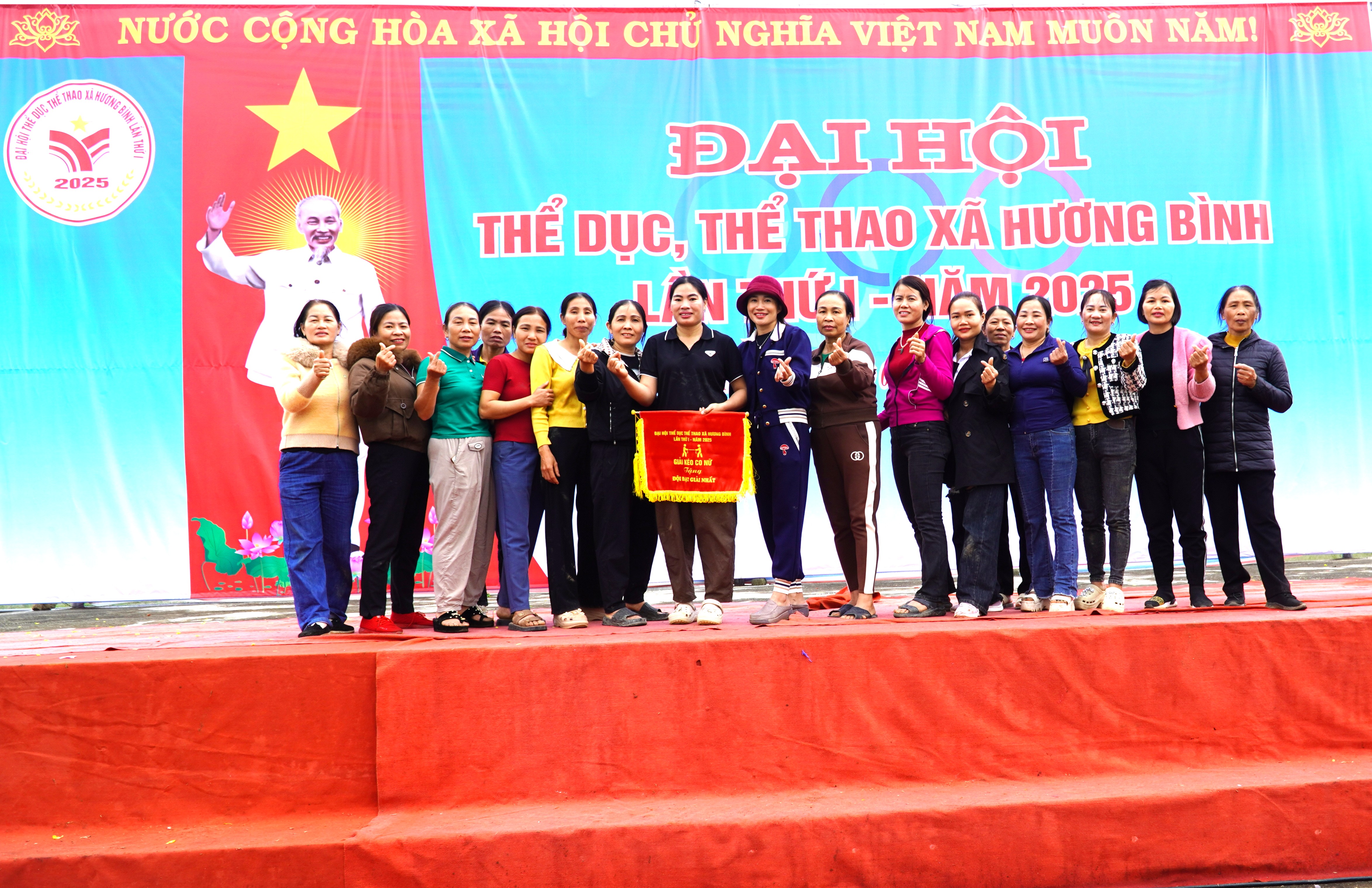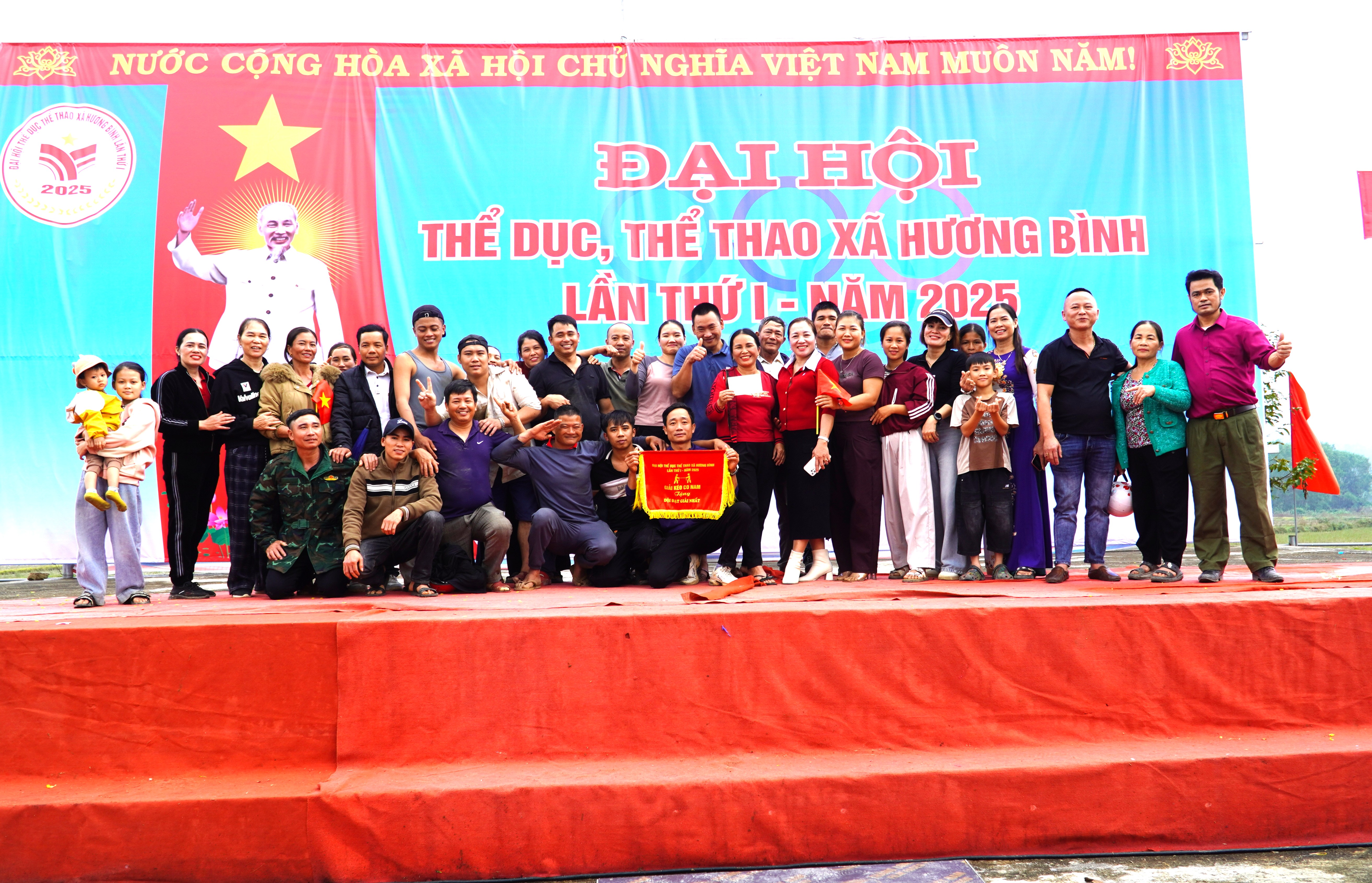 Kết thúc Đại hội TDTT xã Hương Bình lần thứ I, năm 2025. Ban tổ chức đã trao giải nhất, nhì và 2 giả ba môn kéo co Nam là thôn 5 Phúc Đồng, thôn 8 Phúc Đồng, thôn 9 và thôn 12 Hòa Hải; Môn kéo co Nữ trao giải nhất, nhì và 2 giải ba cho đội thôn Bình Trung, thôn 4, thôn 8 Hòa Hải và thôn 8 Phúc Đồng.