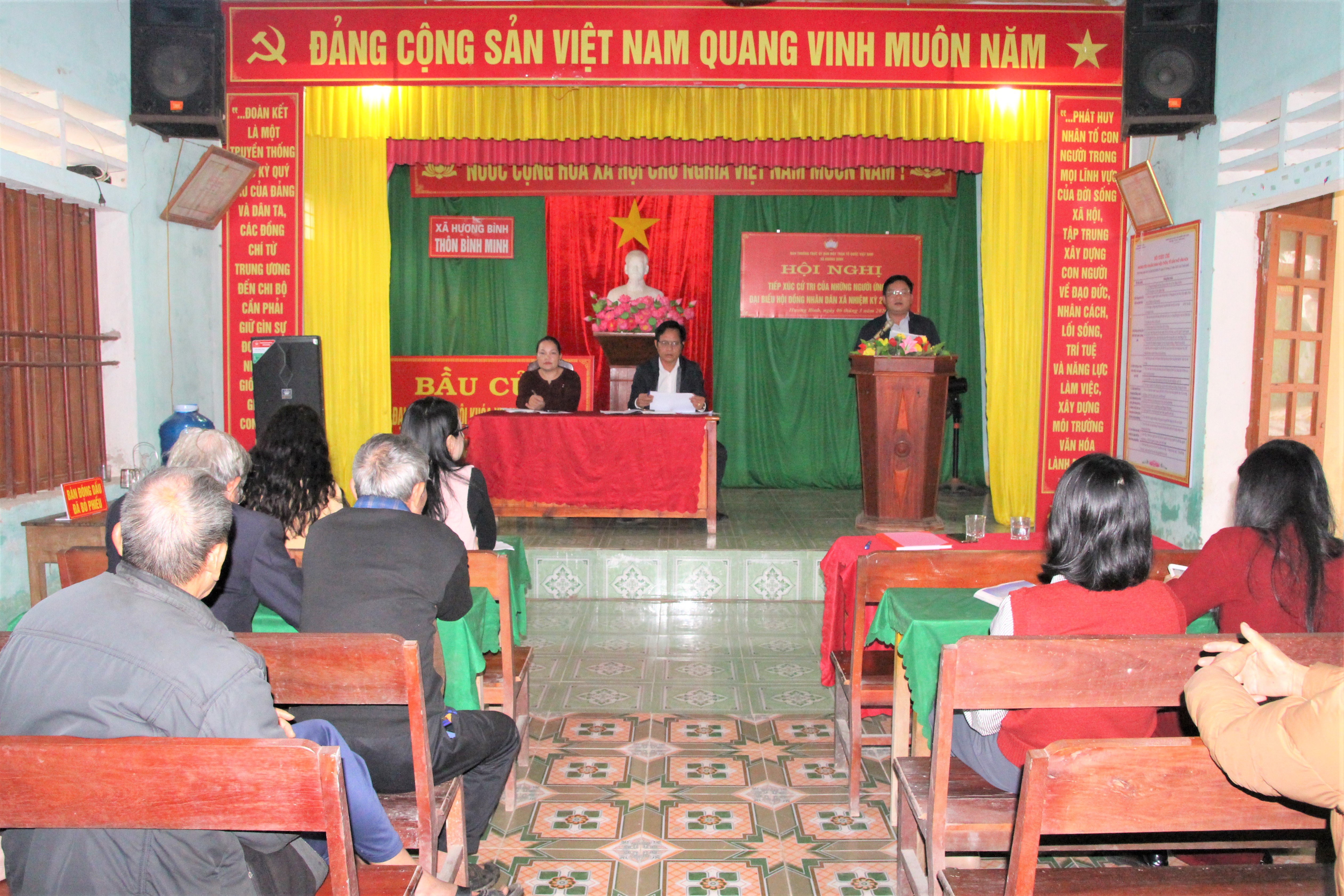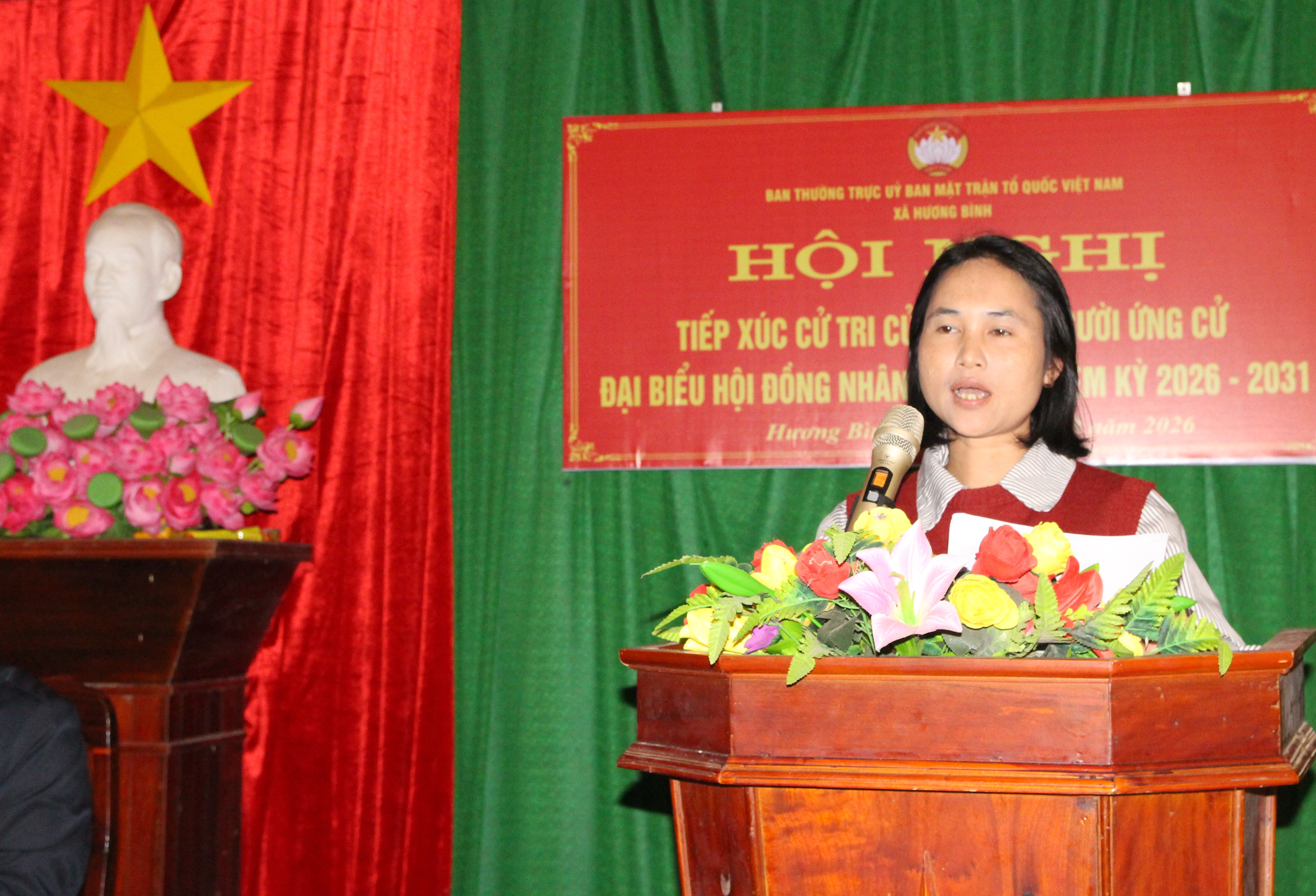 Tại điểm tiếp xúc cử tri, các ứng cử viên đã trình bày chương trình hành động trước cử tri nếu được bầu vào Đại biểu HĐND xã Hương Bình, nhiệm kỳ 2026 – 2031.