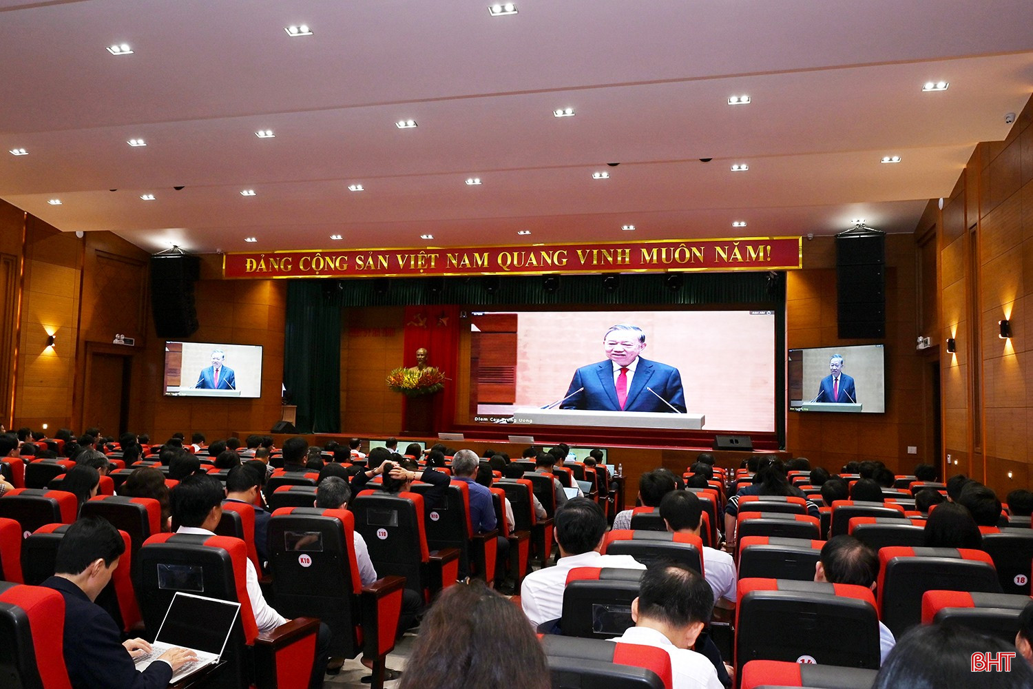 Dự điểm cầu tại xã Hương Bình có các đồng chí Nguyễn Thanh Tuấn – Bí thư Đảng ủy, Chủ tịch HĐND xã; Đoàn Thanh Hải – Phó Bí thư Thường trực Đảng ủy; Lê Quang Vinh – Phó Bí thư Đảng ủy, Chủ tịch UBND xã và các đồng chí Thường trực HĐND, UBND, Ủy ban MTTQ Việt Nam xã và các ban, ngành, đoàn thể, tổ chức chính trị xã hội...