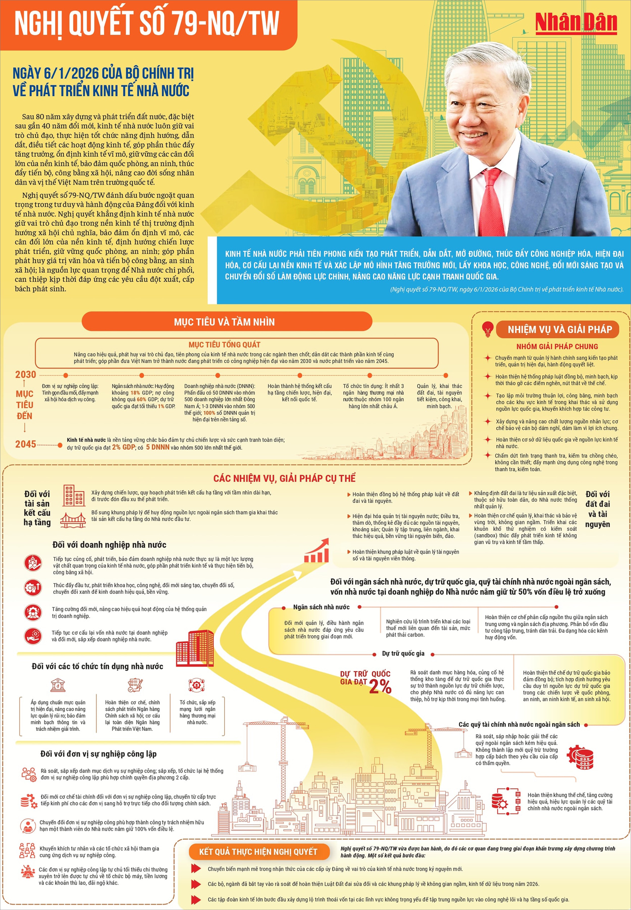 Tổng Bí thư bày tỏ tin tưởng, với quyết tâm chính trị cao, sự vào cuộc đồng bộ của hệ thống chính trị và toàn xã hội với tinh thần đoàn kết, khát vọng vươn lên, Nghị quyết số 79-NQ/TW và Nghị quyết số 80-NQ/TW sẽ nhanh chóng đi vào cuộc sống, tạo chuyển biến rõ nét để góp phần xây dựng nước Việt Nam phát triển nhanh, bền vững, độc lập, tự chủ, tự cường trong cái giai đoạn mới.