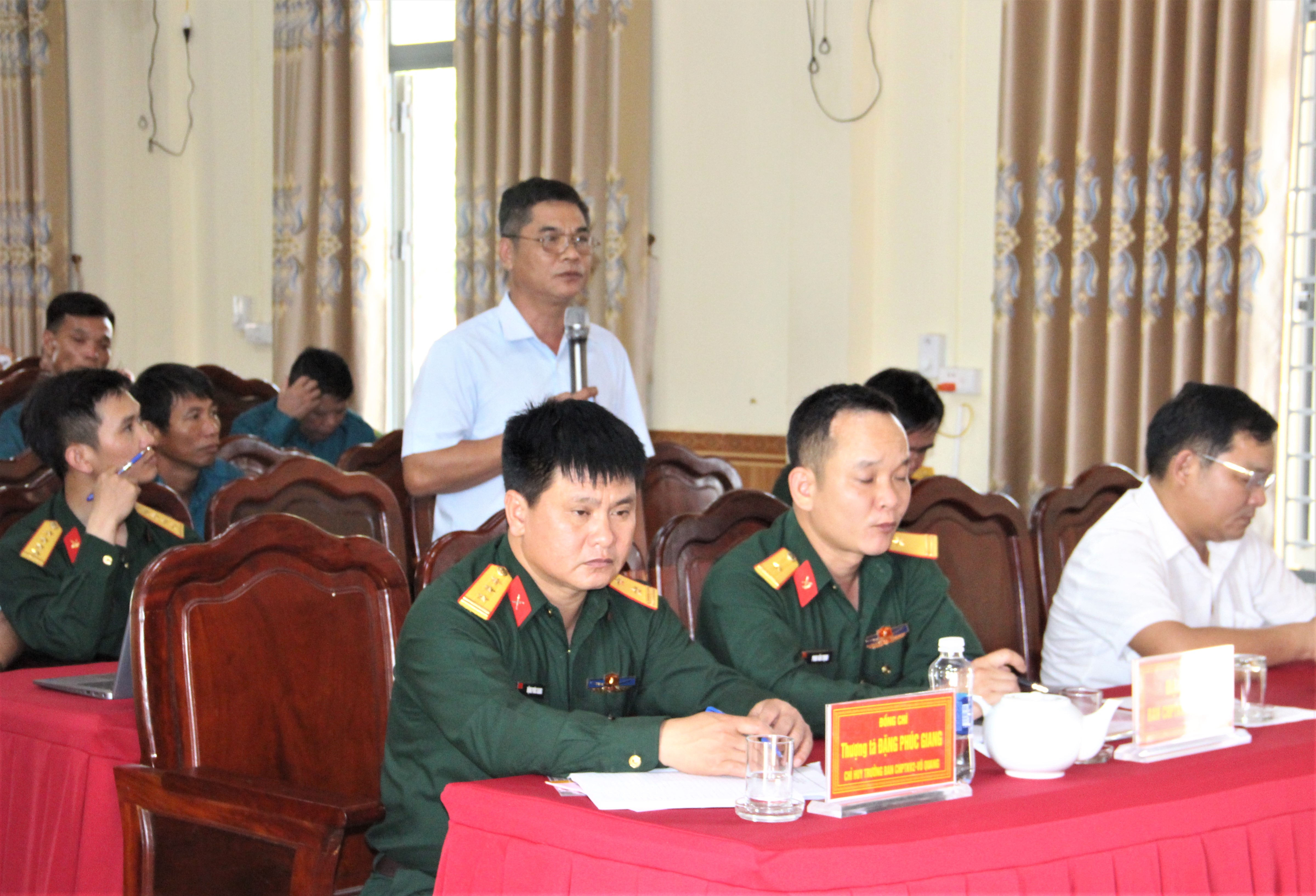 Thượng tá Đặng Phúc Giang – Phó Bí thư Đảng ủy, Chỉ huy trưởng Ban chỉ huy khu vực phòng thủ 2 Vũ Quang phát biểu.