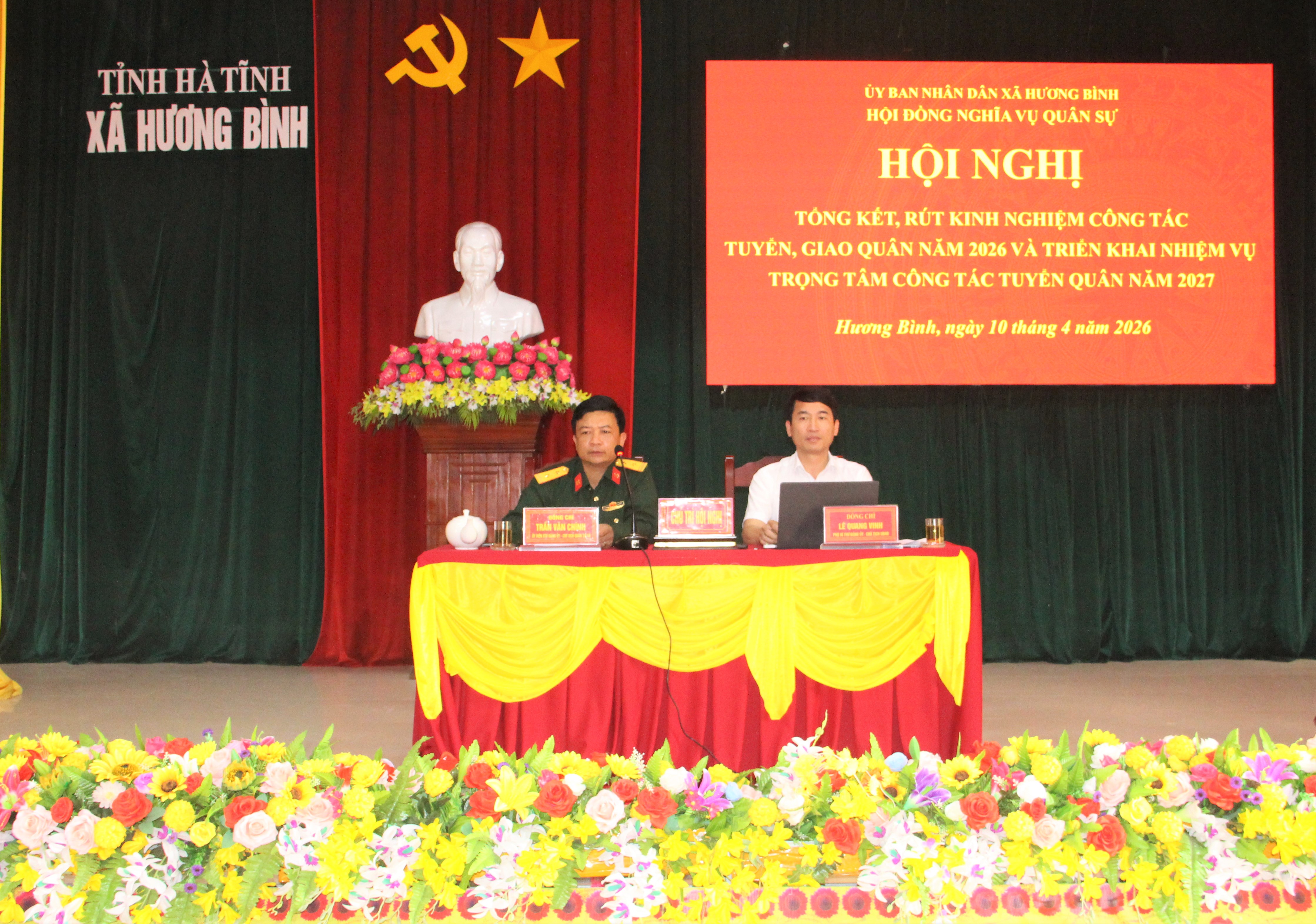 Sáng ngày 10/4/2026, UBND xã Hương Bình (Hà Tĩnh) tổ chức Hội nghị tổng kết, rút kinh nghiệm công tác tuyển, giao quân năm 2026 và triển khai nhiệm vụ trọng tâm công tác tuyển quân năm 2027.