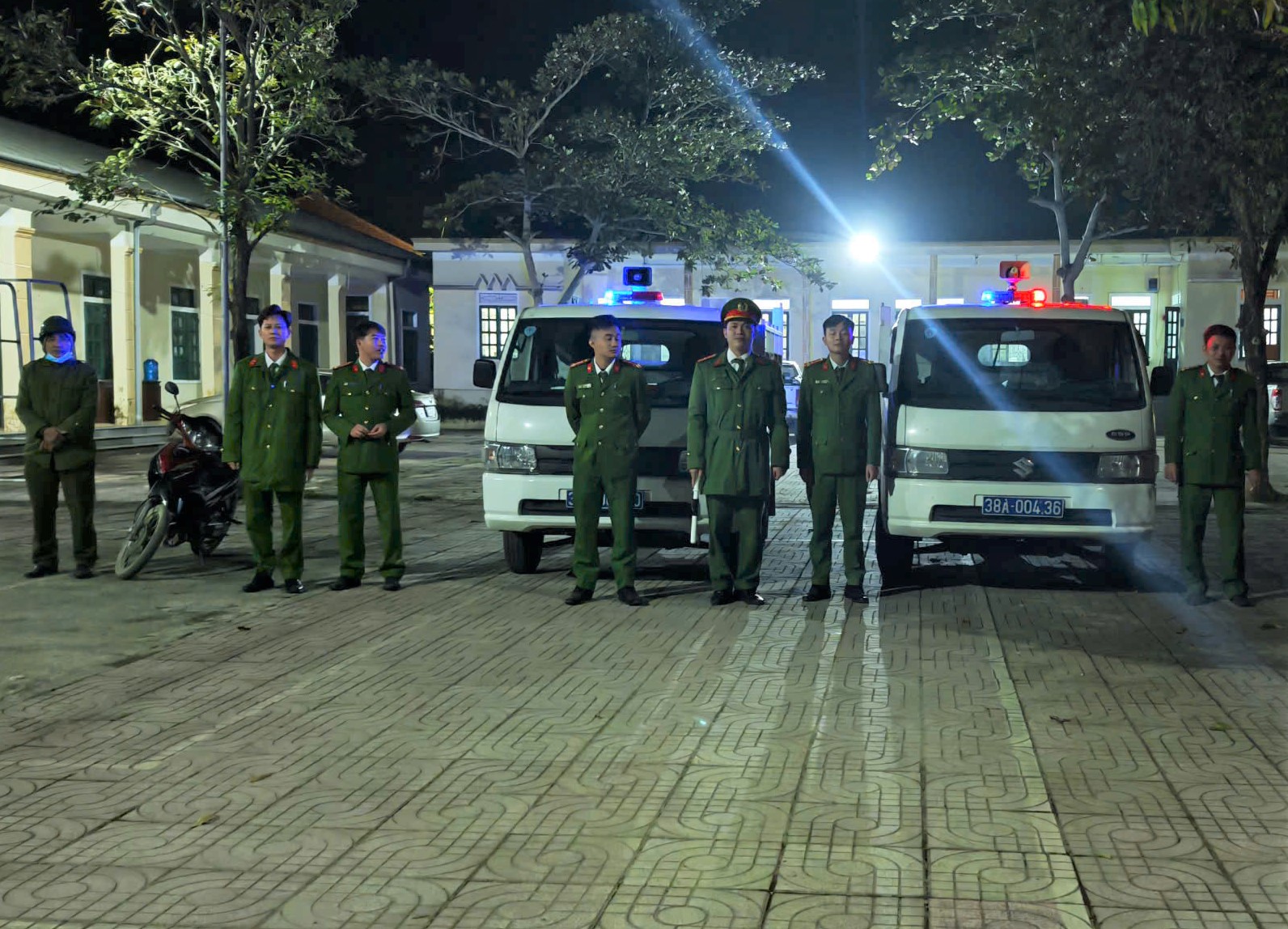 Công an xã Hương Bình liên tục tuần tra, kiểm soát đảm bảo ANTT trong đêm.