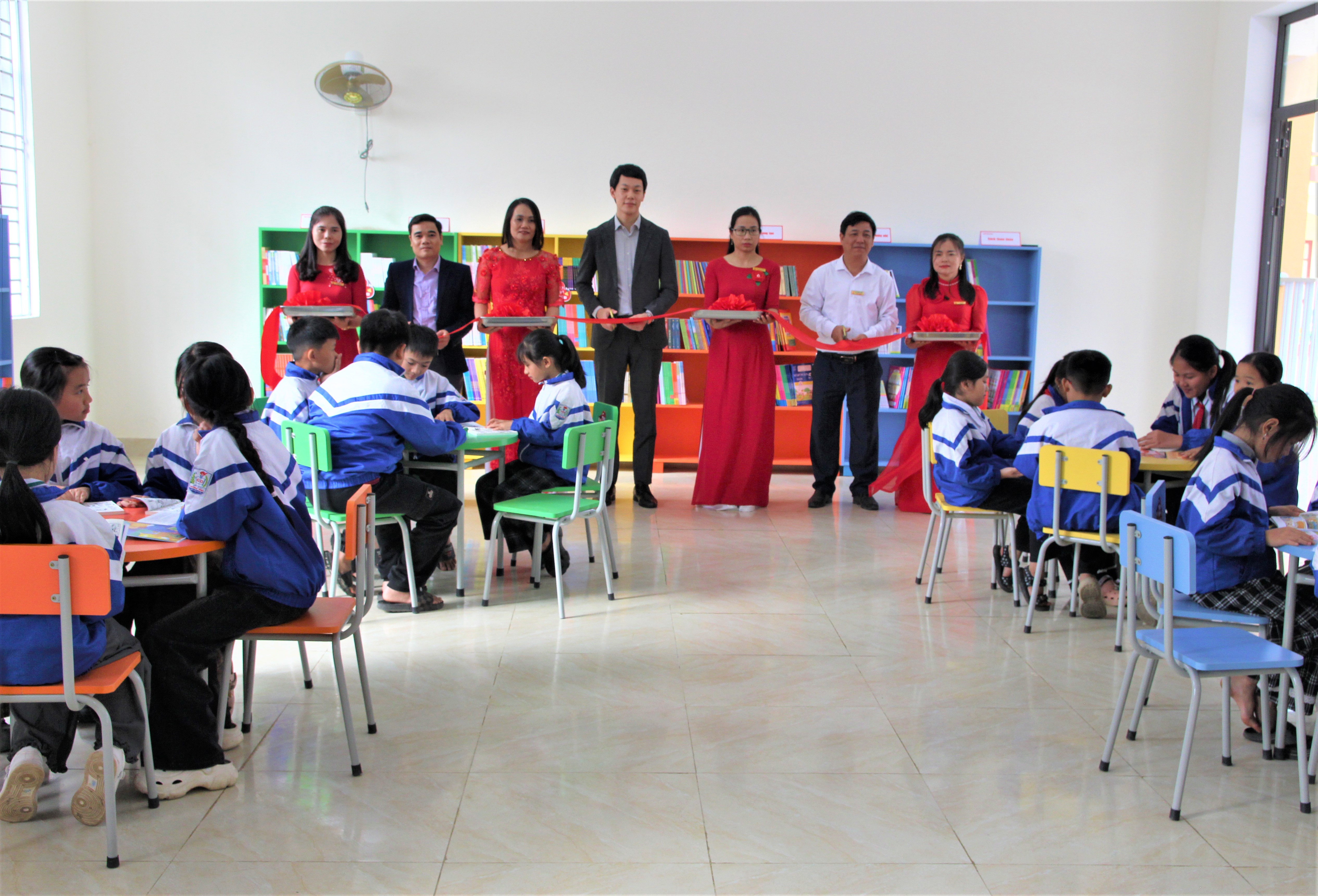 Lễ cắt băng khánh thành thư viện trường Tiểu học Hương Bình.