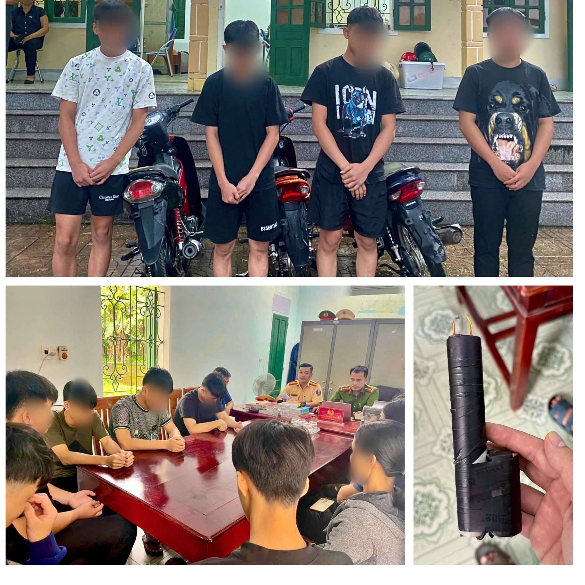Sau khi tiếp nhận thông tin, Công an xã Hương Bình đã nhanh chóng triển khai các biện pháp nghiệp vụ, phối hợp các lực lượng tổ chức điều tra, xác minh làm rõ. Kết quả đã xác minh, làm rõ nhóm 06 đối tượng liên quan, gồm: N.D.N, sinh năm 2008, trú tại thôn 10, xã Hương bình; V.V.Q, sinh năm 2008, trú tại thôn 8, xã Hương Bình; T.D.K, sinh năm 2008, trú tại thôn 8, xã Hương Bình; N.V.N.N, sinh năm 2009, trú tại thôn 6, xã Hương Bình; T.M.C, sinh năm 2004, trú tại thôn 10, xã Hương Bình; N.H.T, sinh năm 2008, trú tại thôn 6, xã Hương Bình. Công an xã, đã tiến hành tạm giữ các phương tiện vi phạm để tiến hành xử lý theo quy định của pháp luật. Ngoài ra, trong quá trình kiểm tra Công an xã còn phát hiện 01 công cụ hỗ trợ (dạng dùi cui điện) do các đối tượng tự chế tạo để sử dụng nhằm mục đích đe dọa người khác, gây rối ANTT.