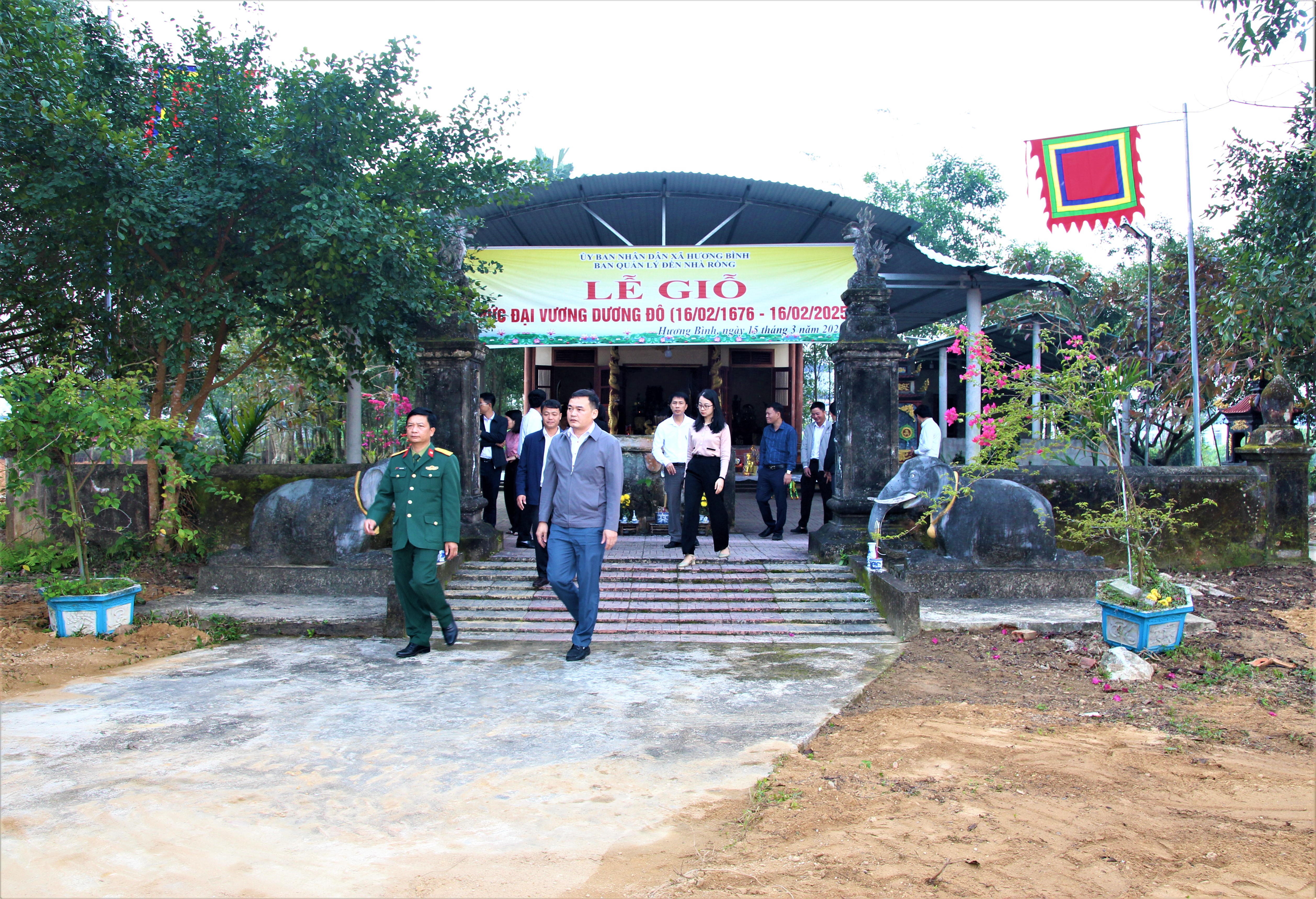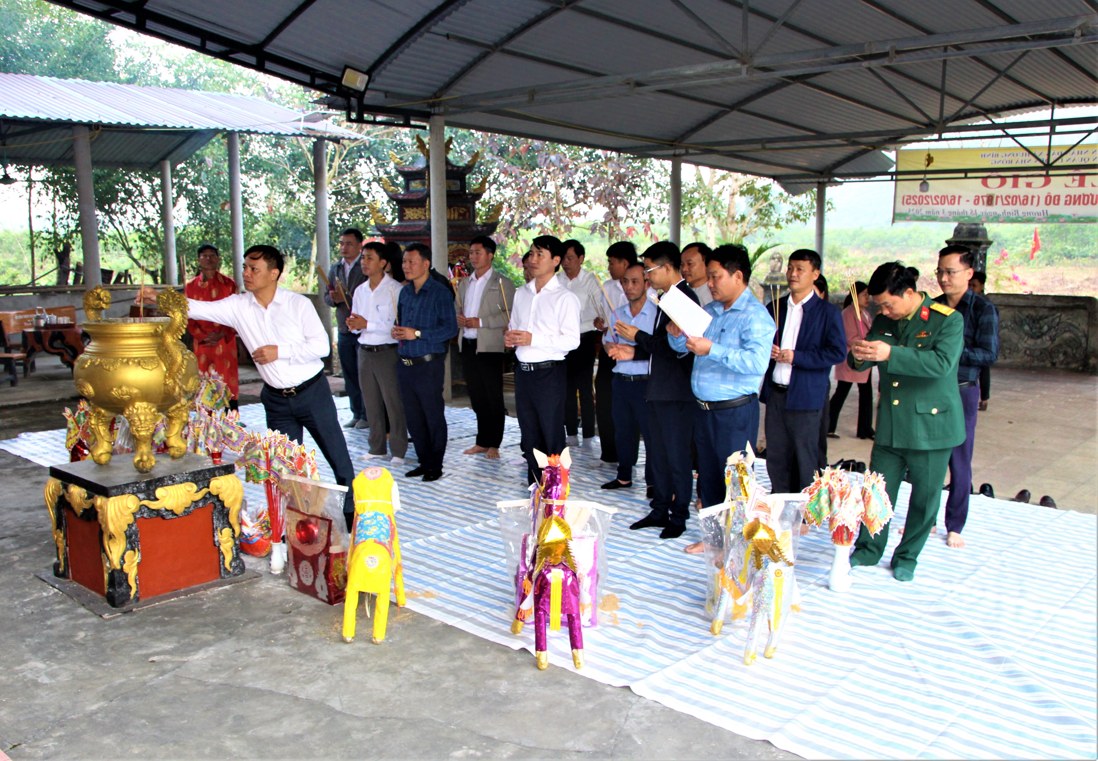 Đoàn công tác Đảng ủy, HĐND, UBND, Ủy ban MTTQ Việt Nam xã Hương Bình và các ban, ngành, đoàn thể, tổ chức chính trị xã hội đến dâng hoa, dâng nén hương thơm....tại Đền Nhà Rồng. (Ảnh chụp ngày 13/2/2026)