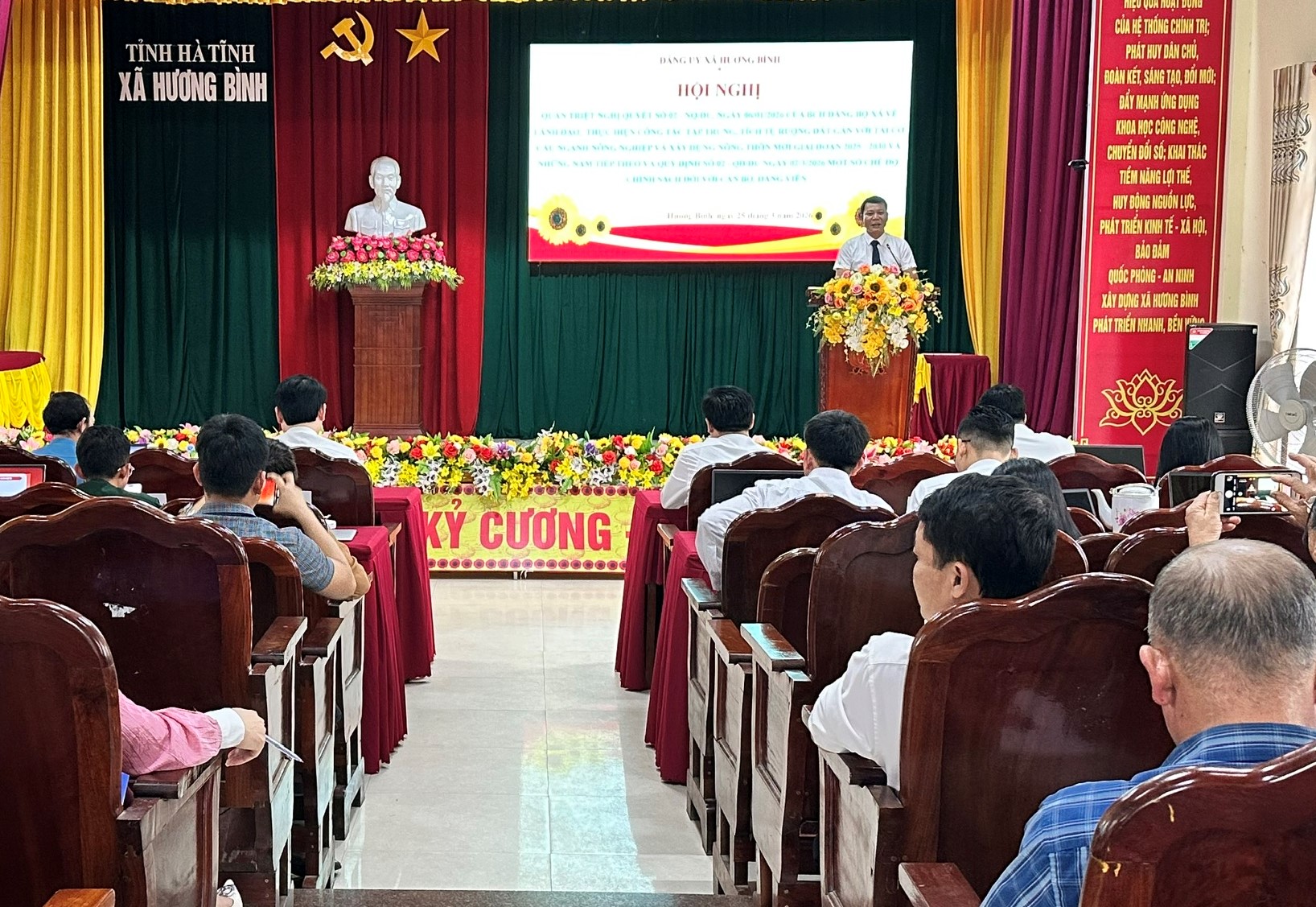 Chiều ngày 25/3/2026, Đảng ủy xã Hương Bình (Hà Tĩnh) tổ chức Hội nghị học tập, quán triệt và triển khai thực hiện các nghị quyết, kết luận, quy định của Trung ương và của Đảng ủy xã đến đội ngũ cán bộ chủ chốt trên địa bàn.