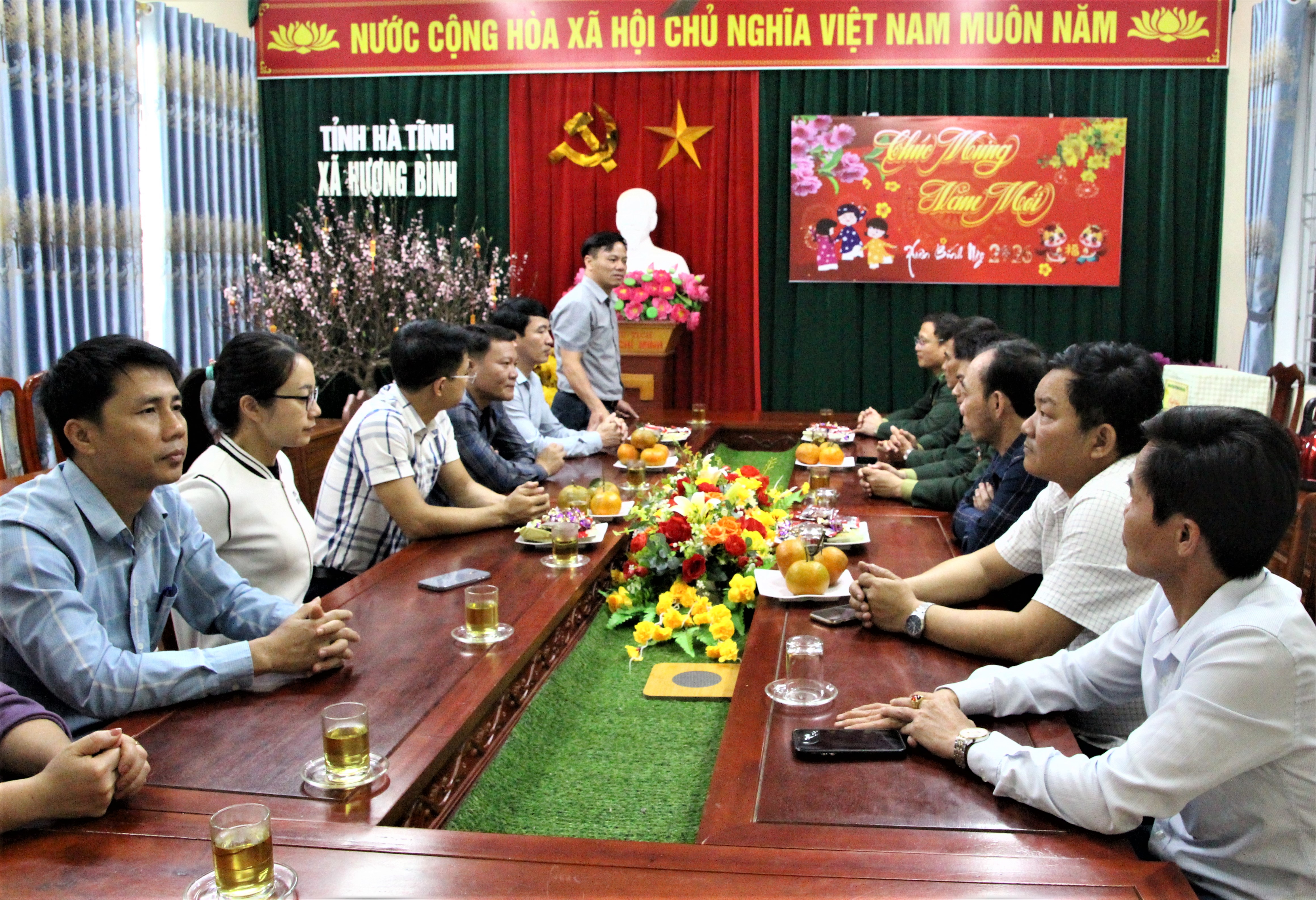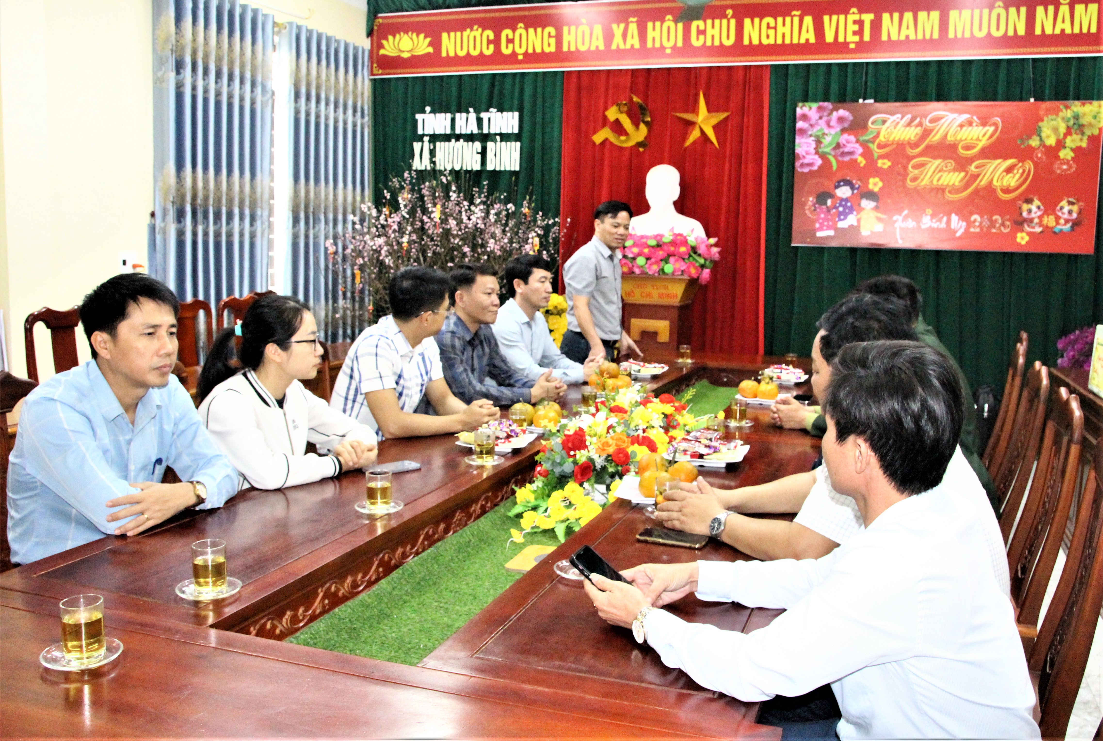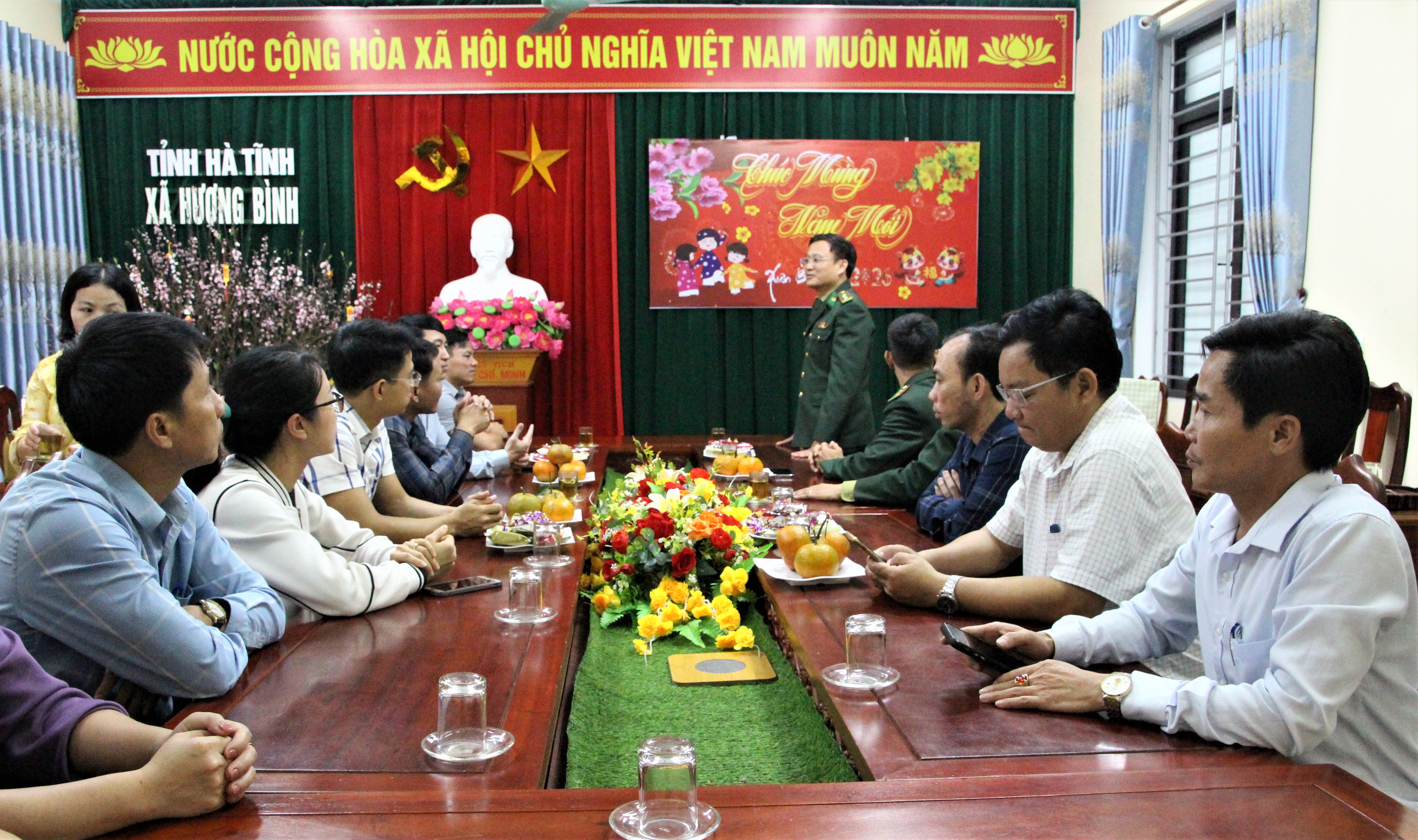 Đến chúc Tết, lãnh đạo Đồn Biên phòng Hòa Hải gửi lời chúc mừng tốt đẹp nhất tới lãnh đạo, cán bộ công chức, viên chức, người lao động đang công tác tại xã Hương Bình.