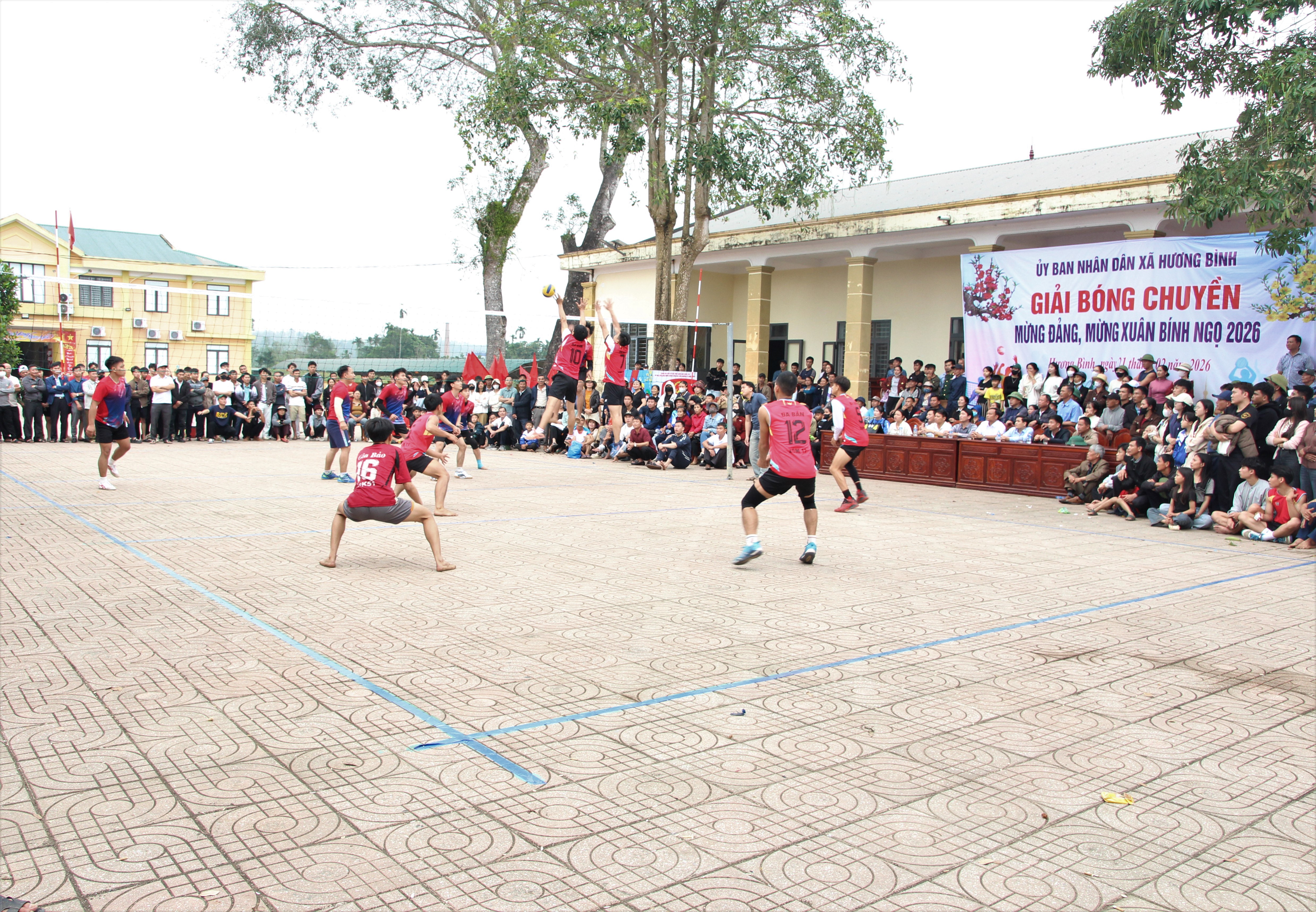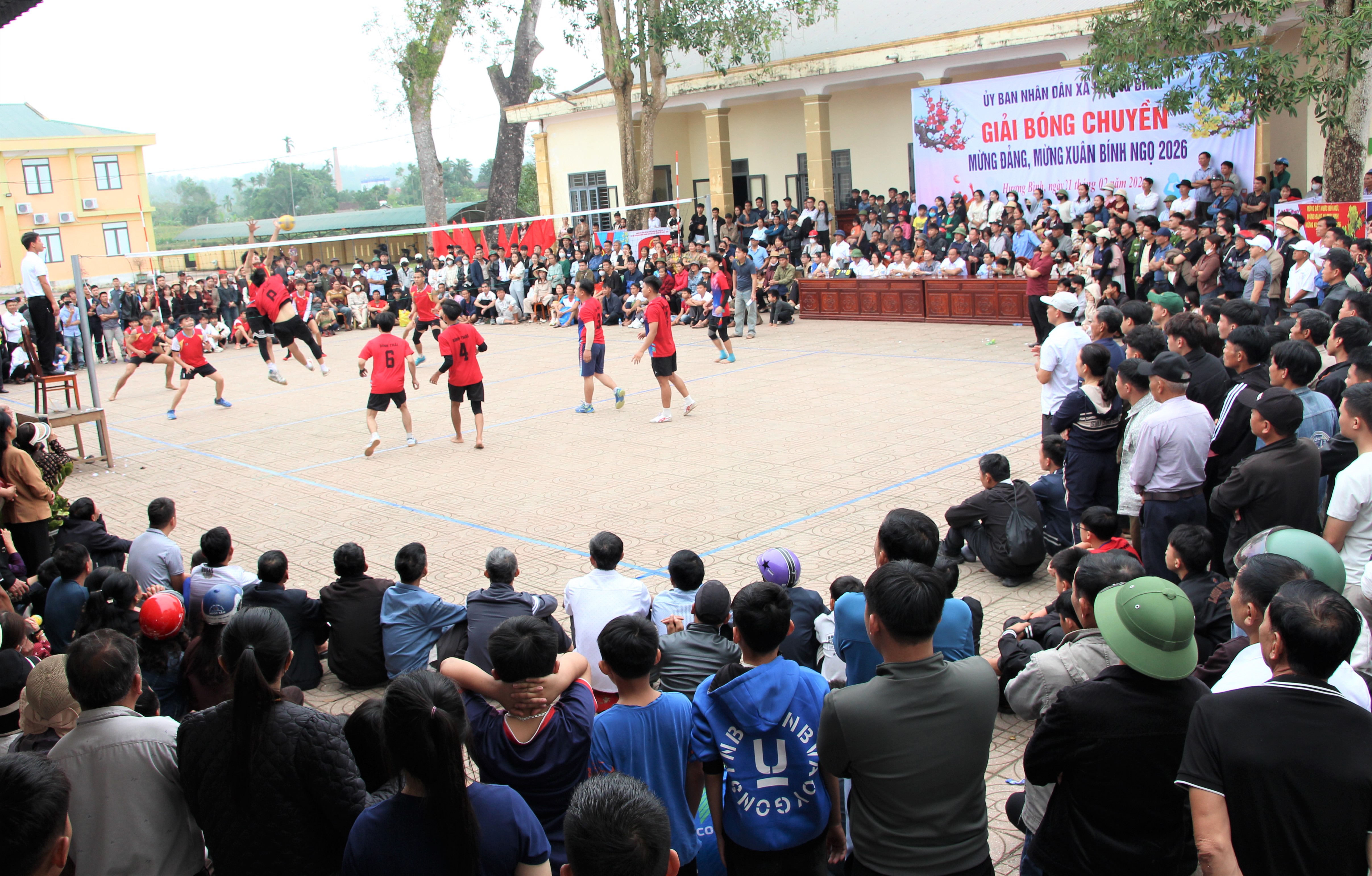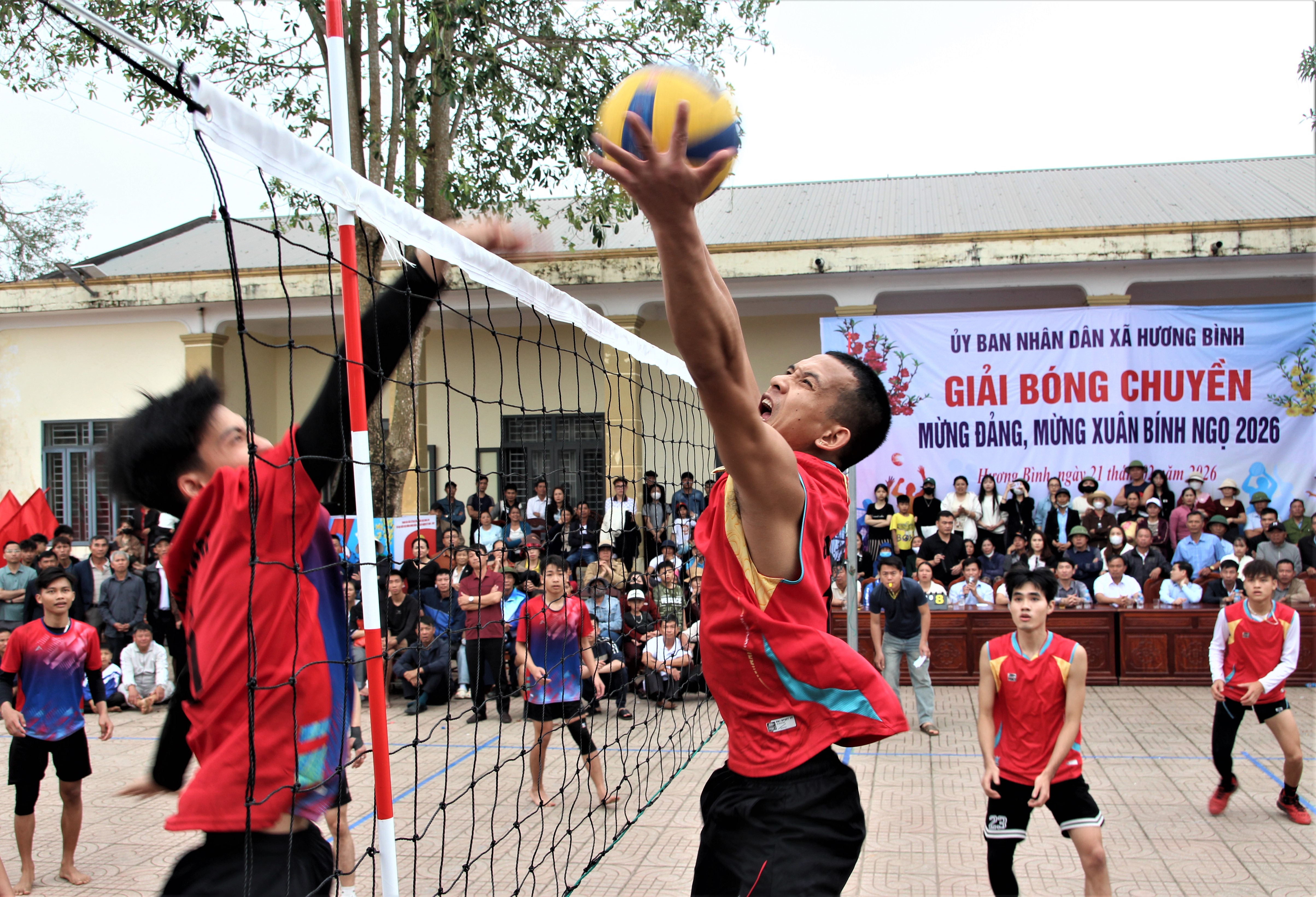 Giải bóng chuyền chuyền da mừng Đảng, mừng Xuân Bính Ngọ 2026 tại xã Hương Bình có sự tham gia của 22 đội bóng đến từ 21 thôn và Hội Doanh nghiệp xã Hương Bình với khoảng 230 vận động viên.
