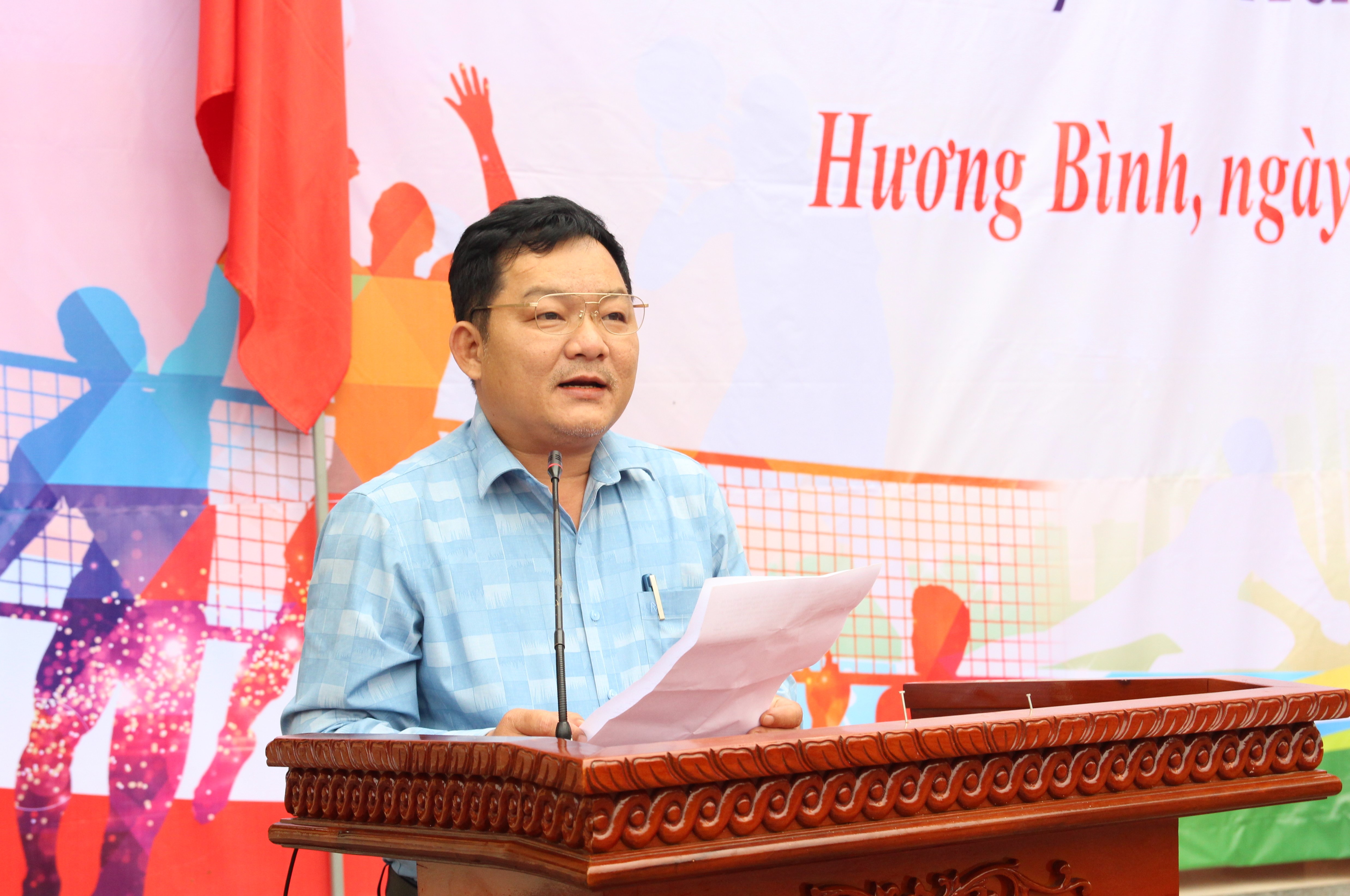 Đồng chí Trần Văn Hương - Trưởng phòng Văn hóa - Xã hội, trưởng Ban tổ chức giải phát biểu bế mạc.