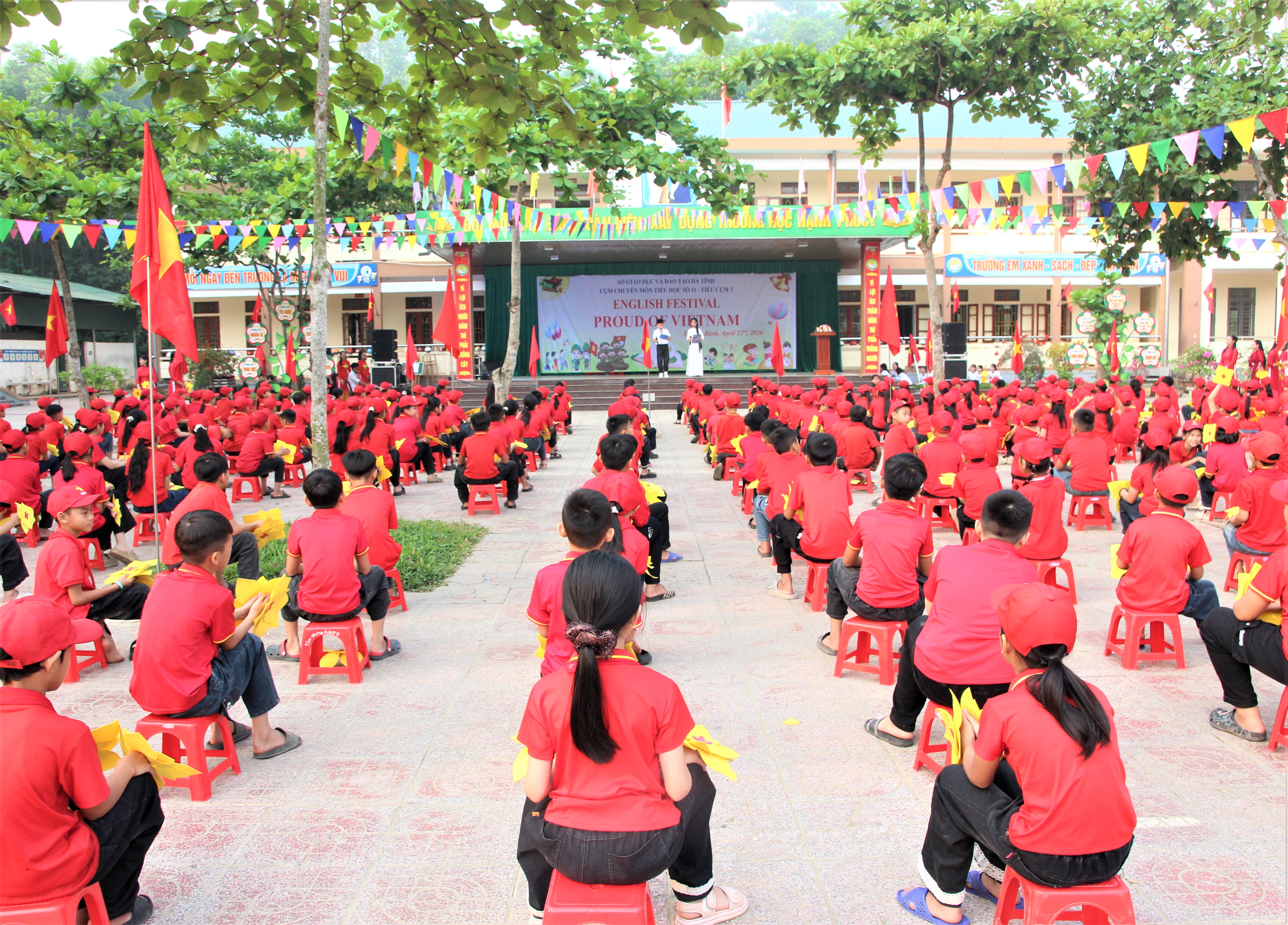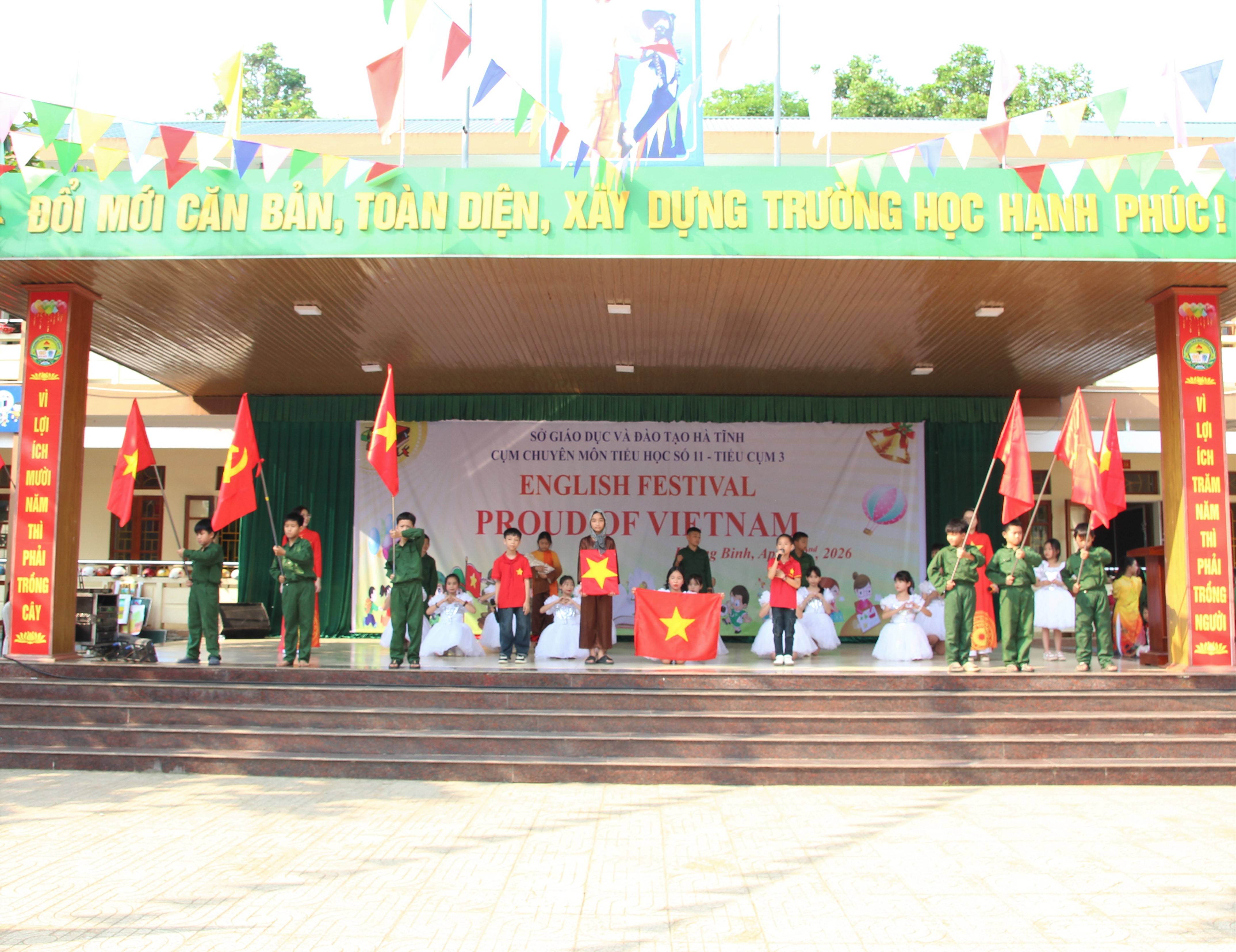 Sáng ngày 22/4/2026, tại trường Tiểu học Phúc Đồng, xã Hương Bình (Hà Tĩnh), các trường Tiểu cụm 3 thuộc cụm chuyên môm số 11 tổ chức chương trình Giao lưu hoạt động ngoại khóa với chủ đề “PROUD OF VIETNAM – TỰ HÀO VIỆT NAM”.