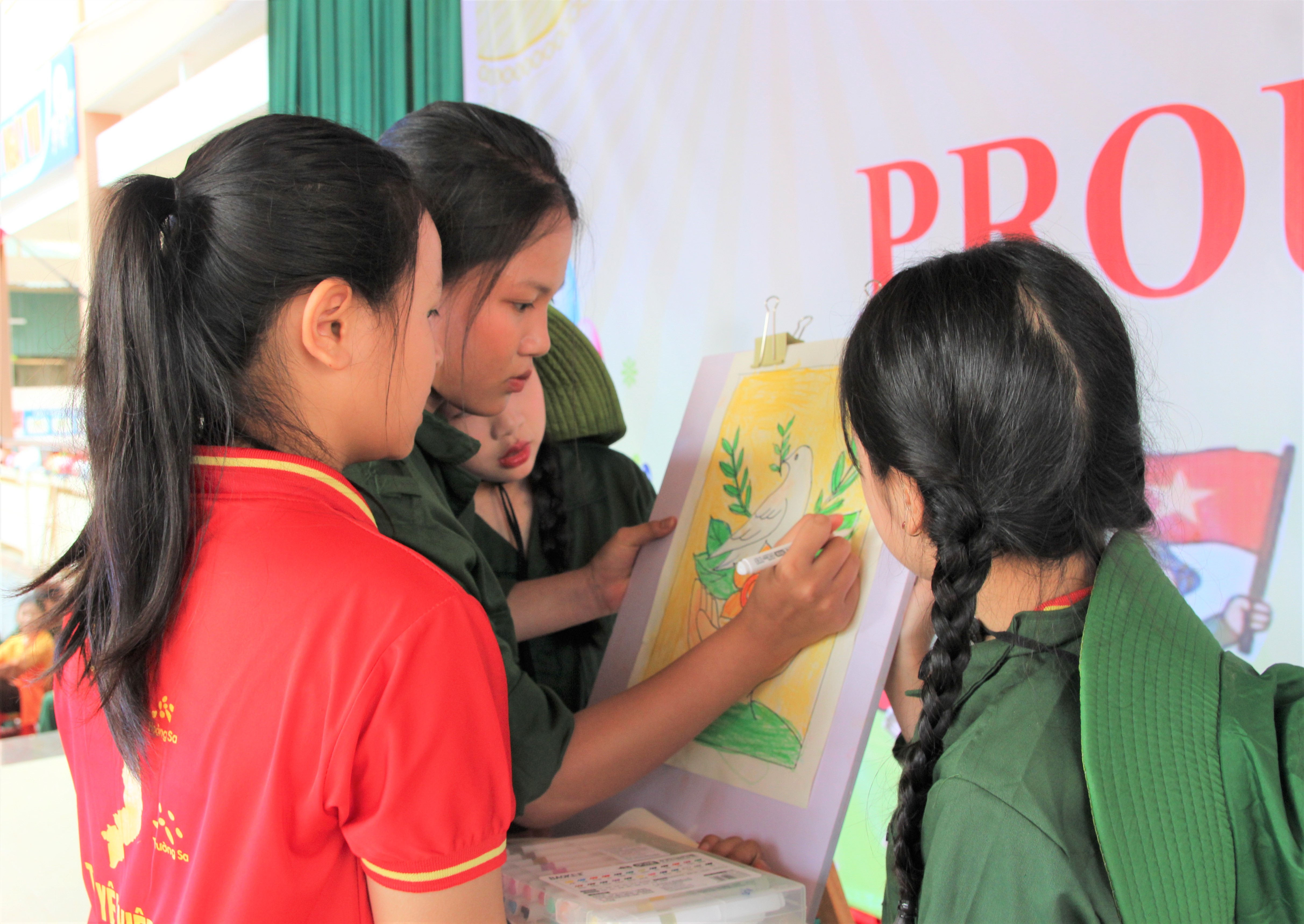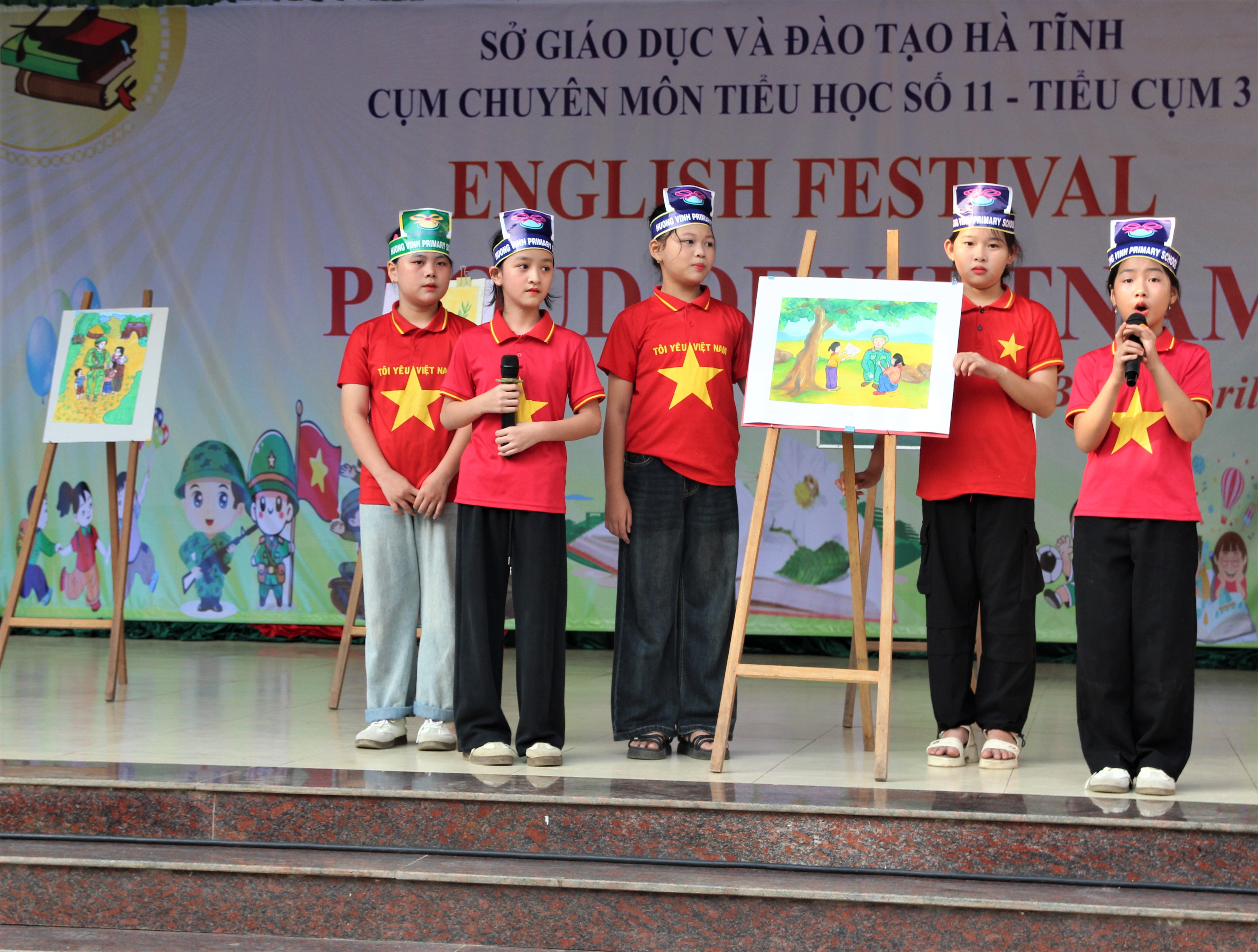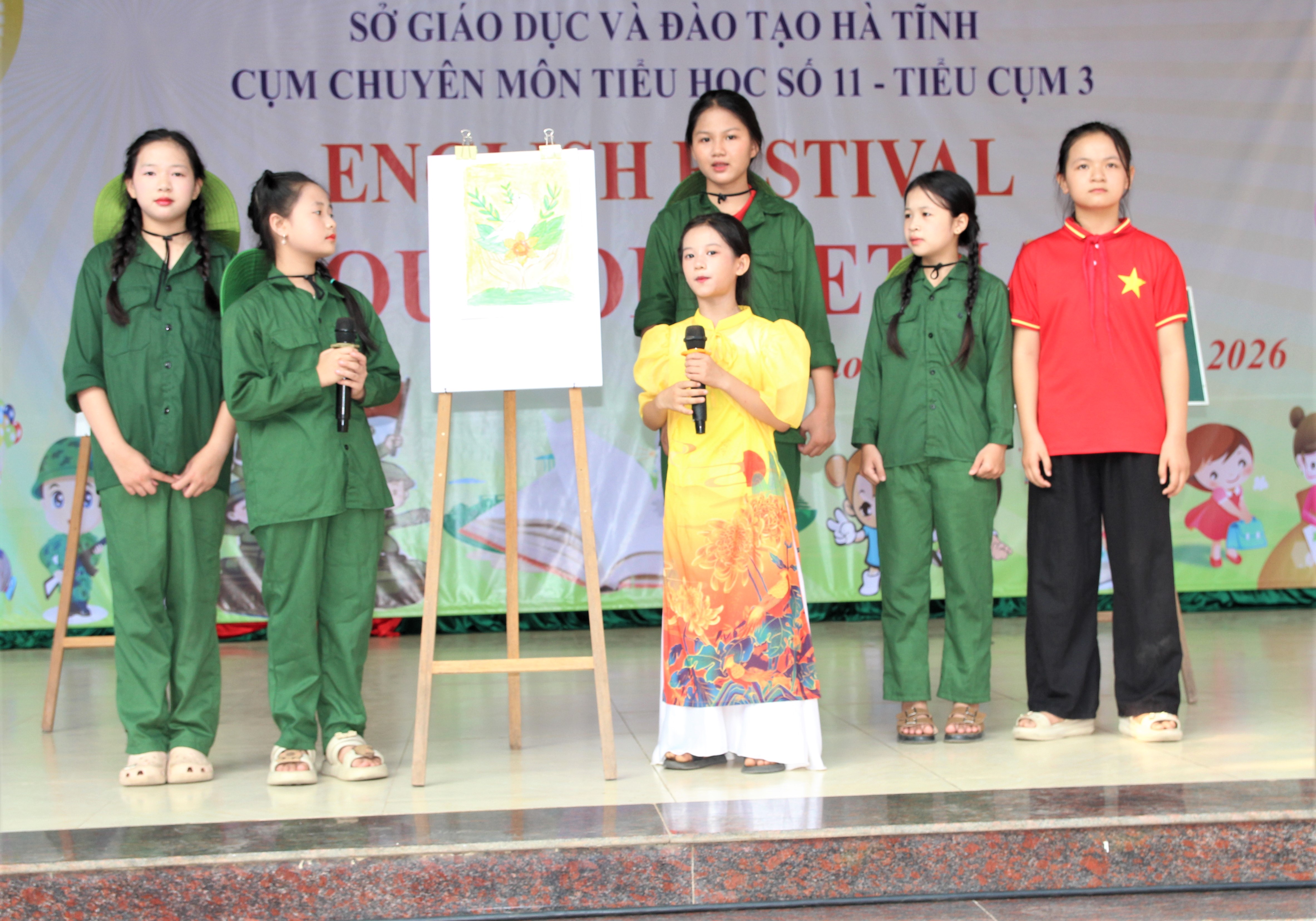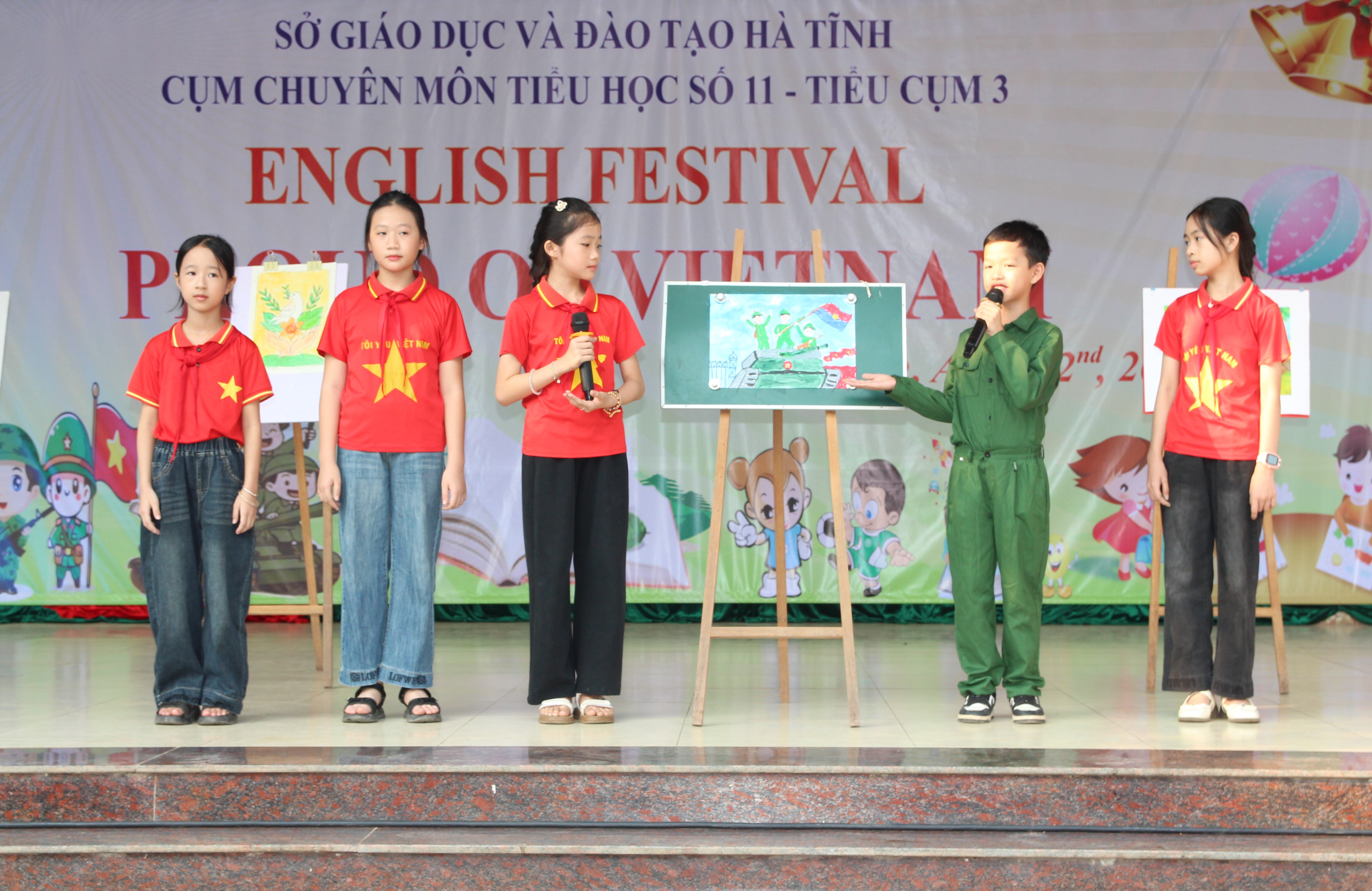 Đồng diễn tập thể với các bài hát “Viết tiếp câu chuyện hòa bình”; câu chuyện “Mười cô gái Ngã Ba Đồng Lộc”. Tổ chức giao lưu thuyết trình tranh được ghép hoặc vẽ tranh sáng tạo theo chủ đề “Proud of Vietnam”, đồng thời thuyết trình bằng Tiếng Anh về ý tưởng của mình…