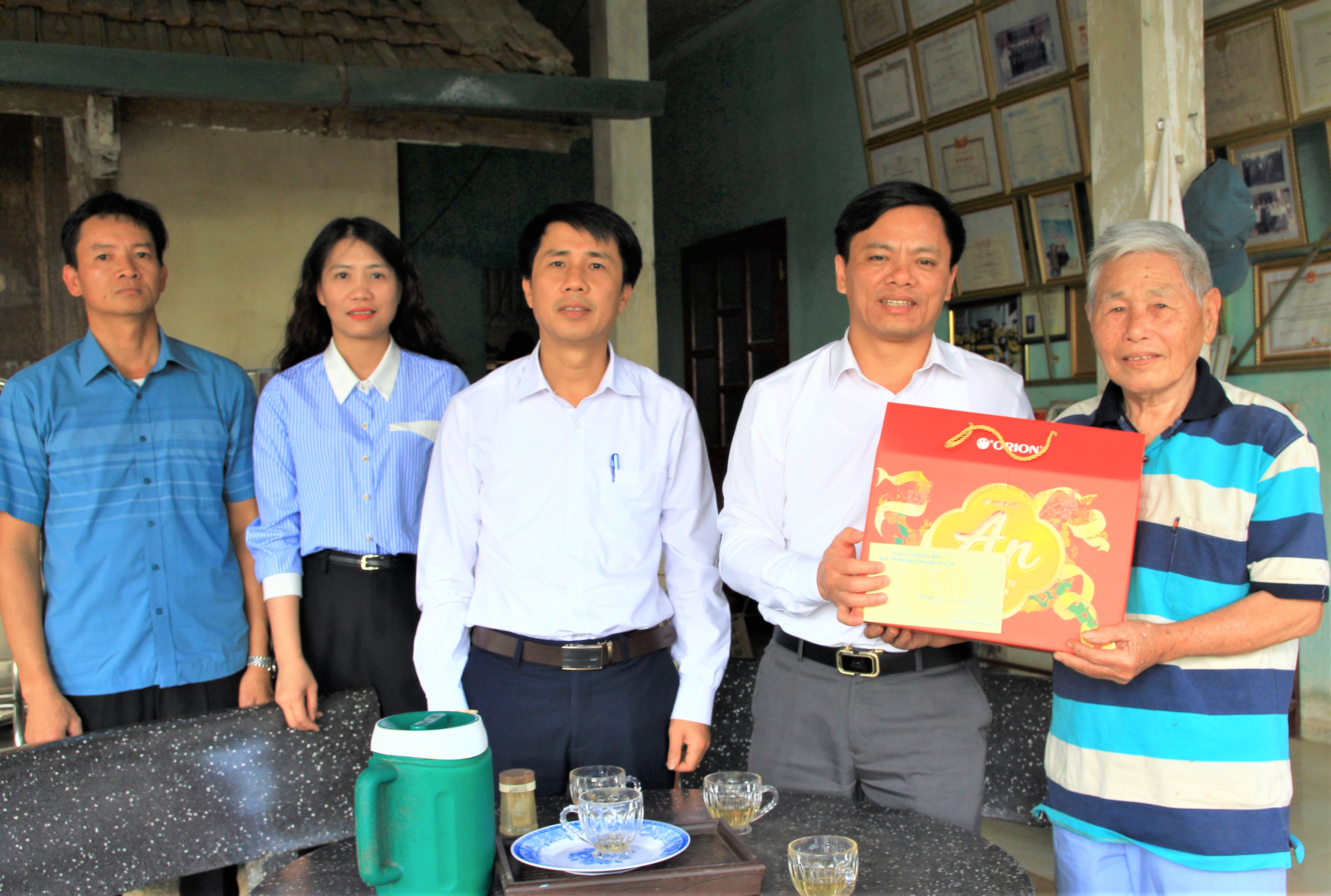 Lãnh đạo Thường trực Đảng uỷ, HĐND, UBND, Ủy ban MTTQ Việt Nam xã Hương Bình thăm hỏi, tặng quà gia đình ông Phan Văn Tiến trú tại thôn 11 Phúc Đồng là đảng viên 62 tuổi đảng.