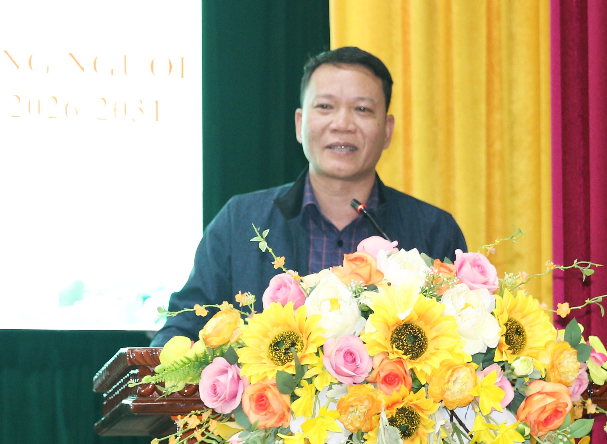 Đồng chí Nguyễn Đình Hậu - Chủ tịch Ủy ban MTTQ xã điều hành hội nghị