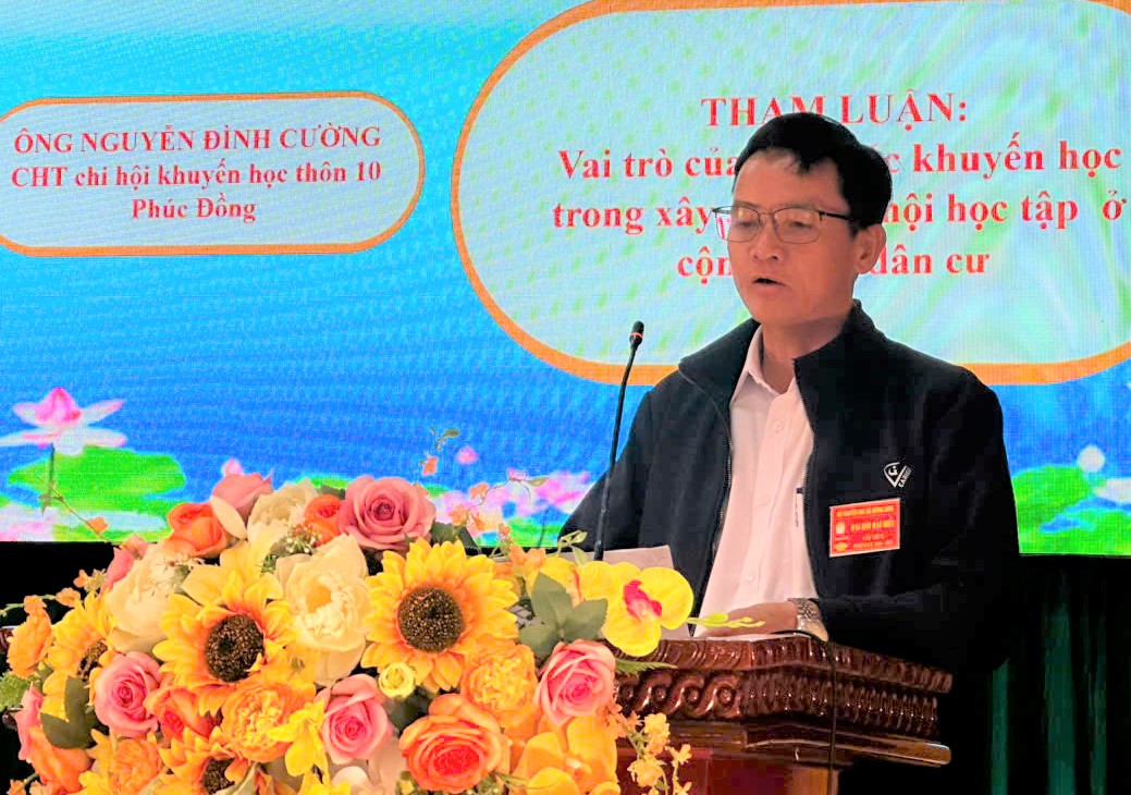 Đồng chí Nguyễn đình Cường - Chi hội khuyến học thôn 10 Phúc Đồng tham luận tại đại hội.