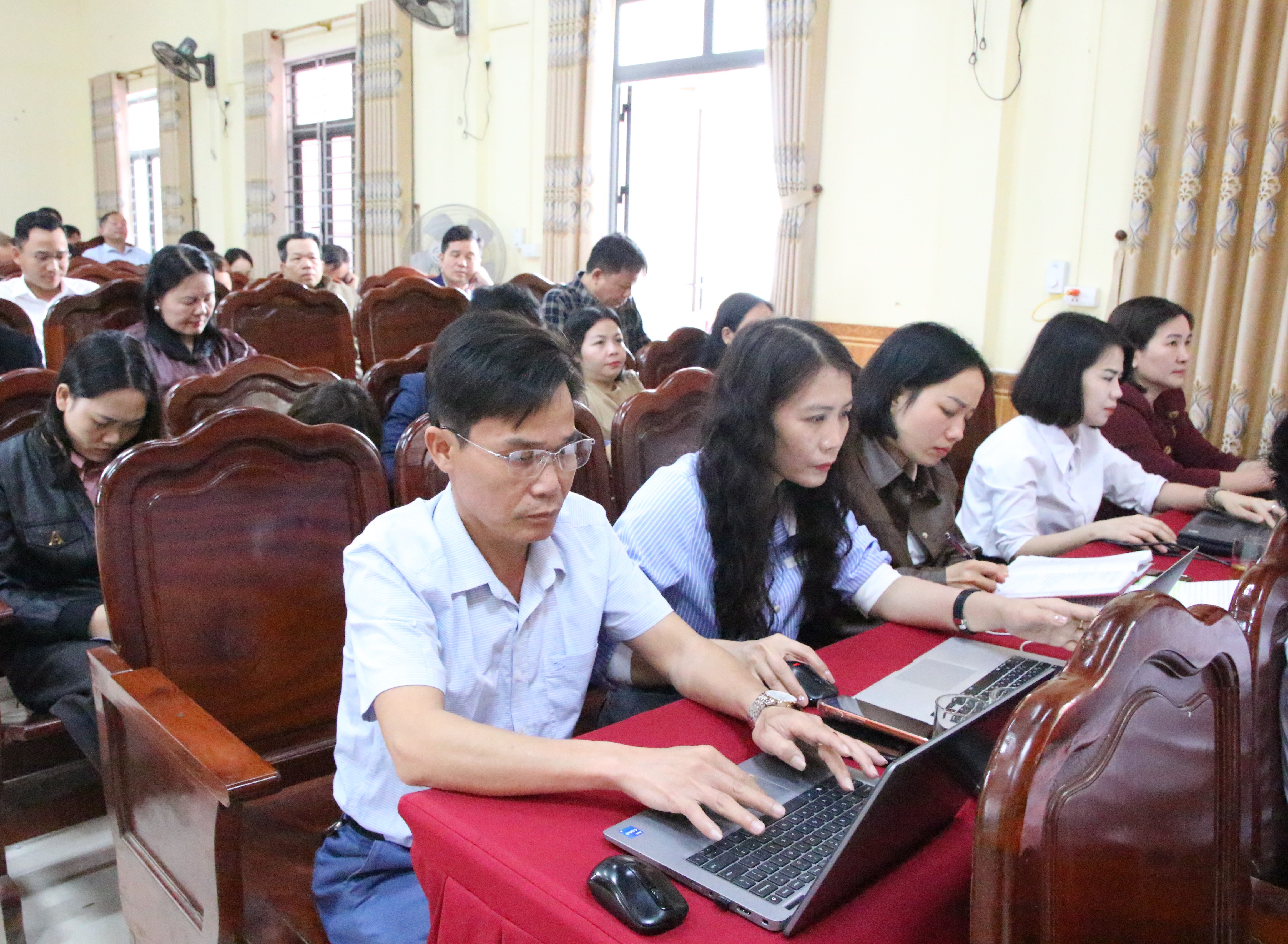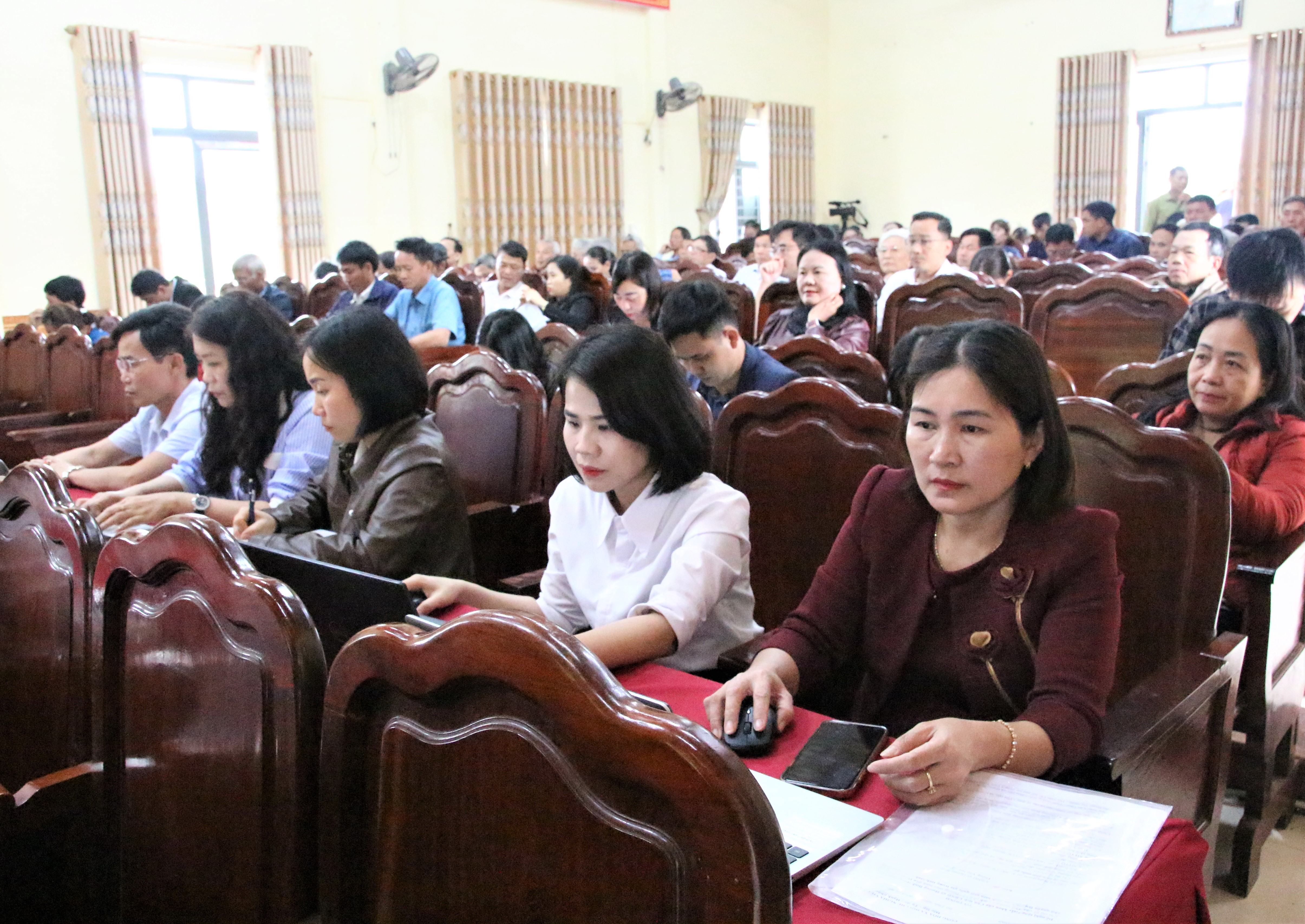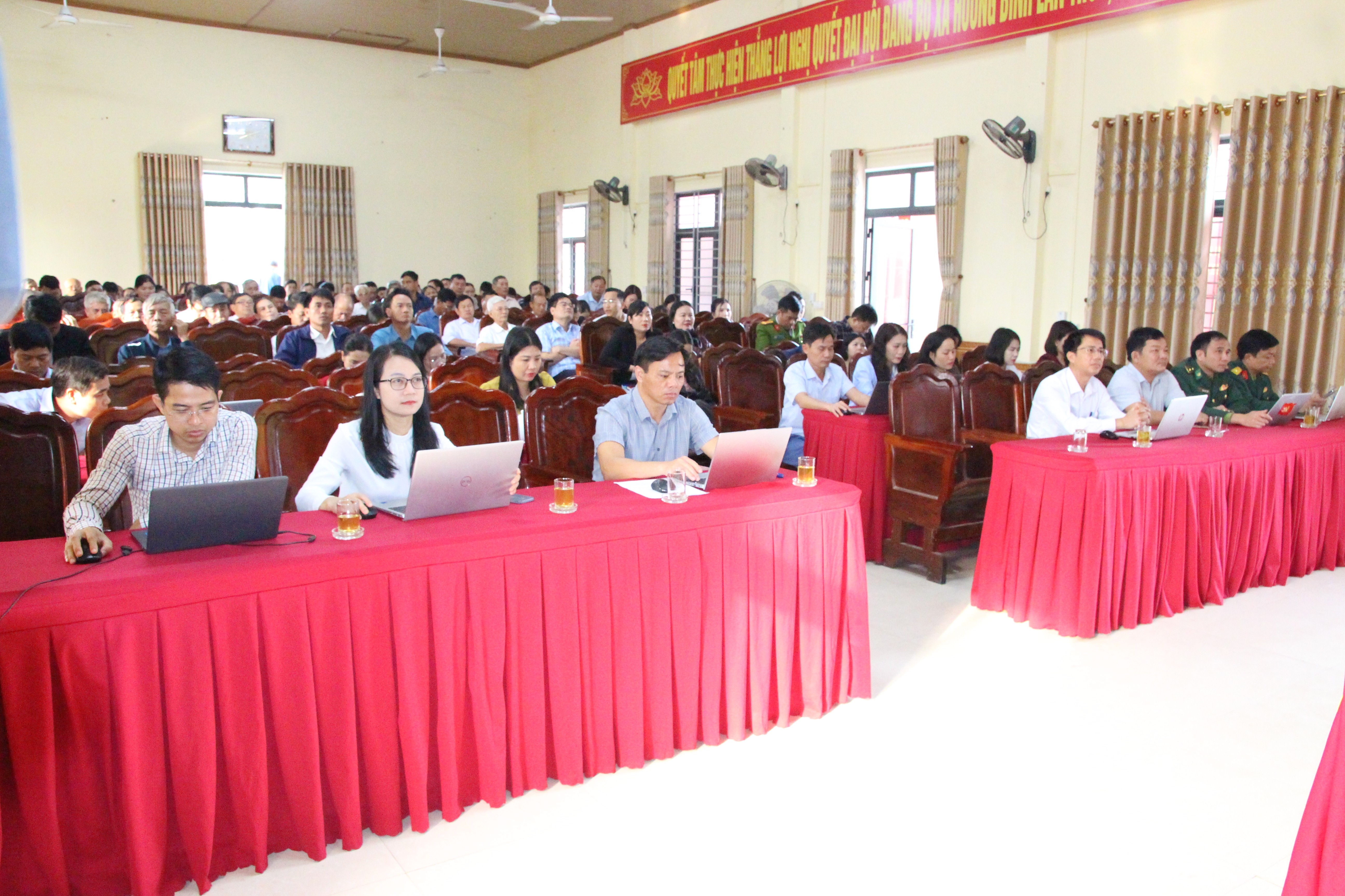 Đại biểu dự điểm cầu xã Hương Bình (Hà Tĩnh).