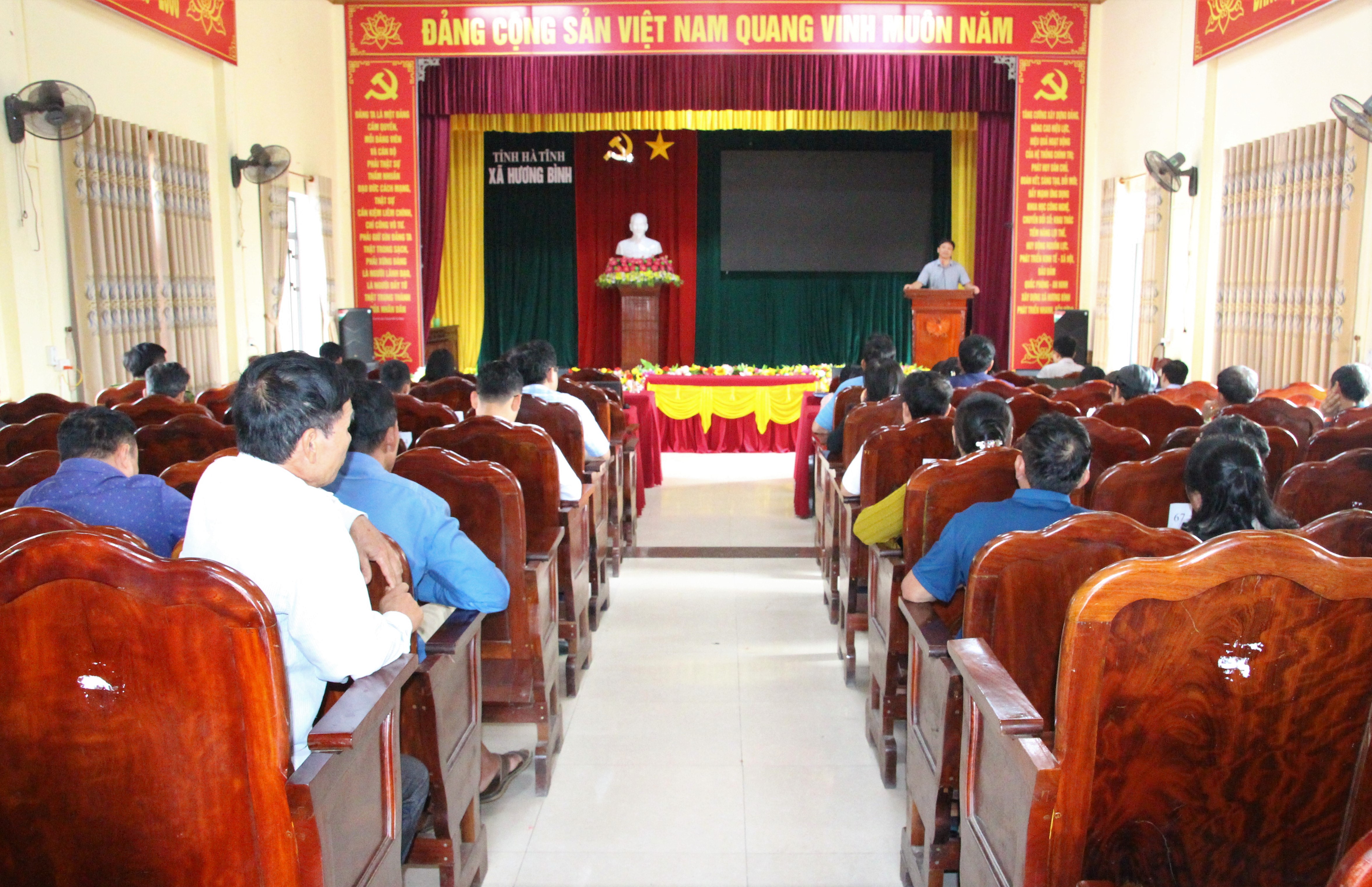 Tại 3.321 điểm cầu cấp xã, trong đó có xã Hương Bình. Tại xã Hương Bình có đồng chí Nguyễn Thanh Tuấn – Bí thư Đảng ủy, Chủ tịch HĐND xã, Chủ tịch Ủy ban bầu cử xã và các thành viên Ban Chỉ đạo bầu cử, Ủy ban bầu cử cấp xã, Thường trực HĐND, lãnh đạo UBND, Ban Thường trực Ủy ban Mặt trận Tổ quốc Việt Nam cấp xã, các Bí thư, Trưởng thôn, Tổ trưởng tổ dân phố, Trưởng Ban công tác mặt trận, các đoàn thể.