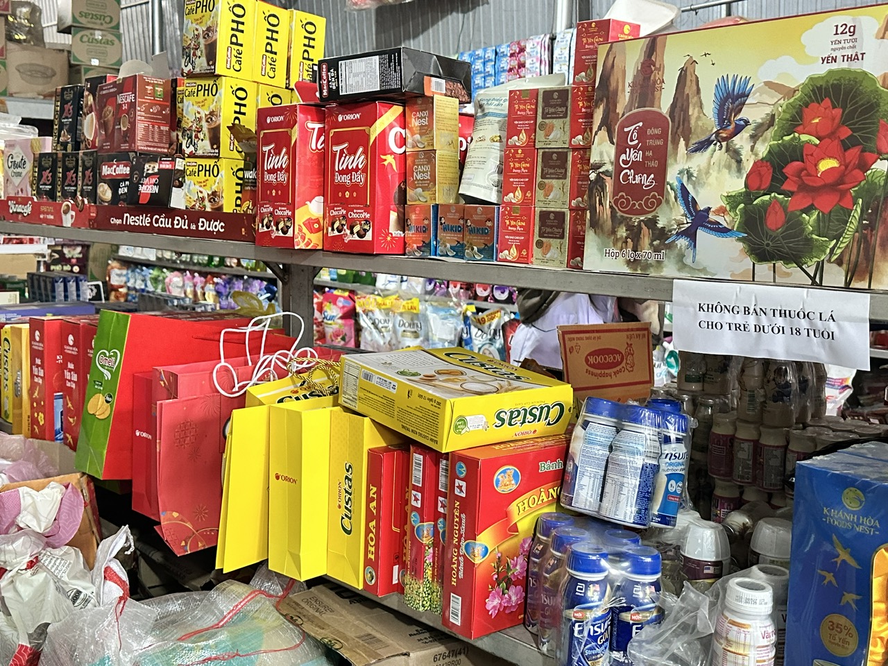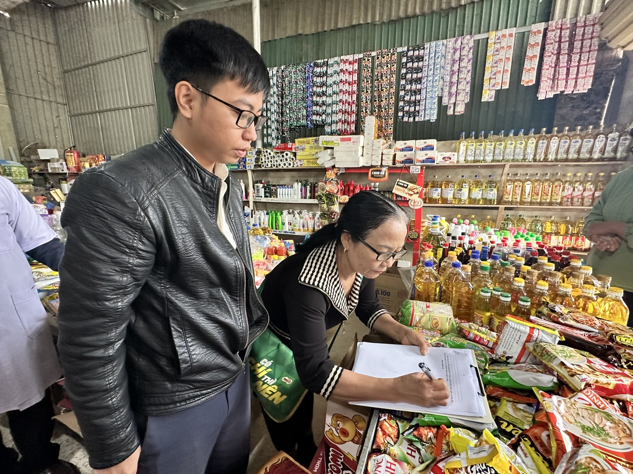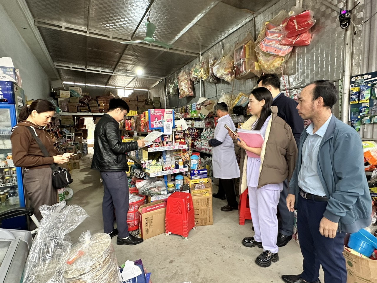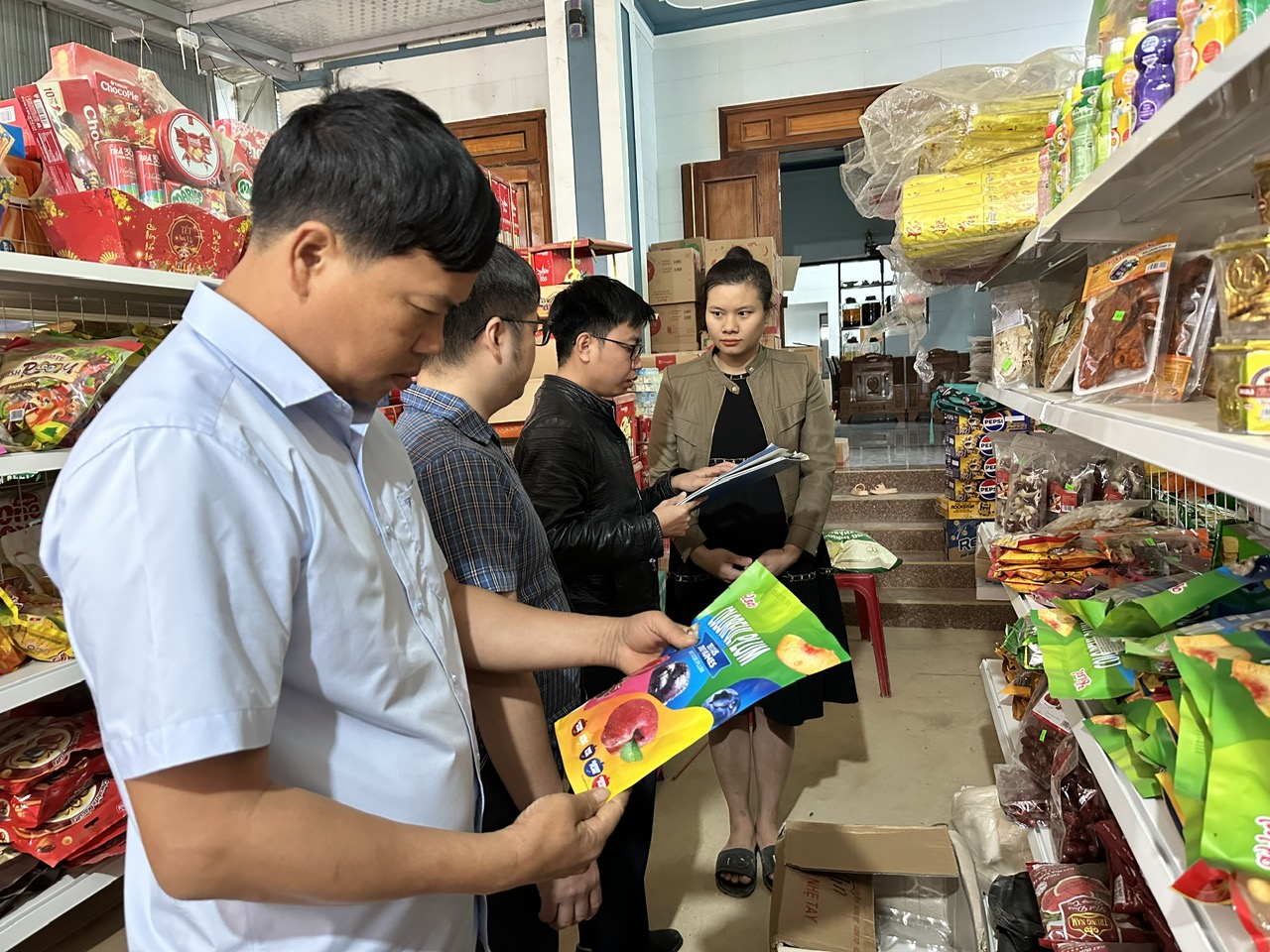 Đoàn liên ngành do đồng chí Thái Hồng Sang - PCT UBND xã làm trưởng đoàn đã đi kiểm tra tại một số ki ốt kinh doanh hàng tạp hóa.