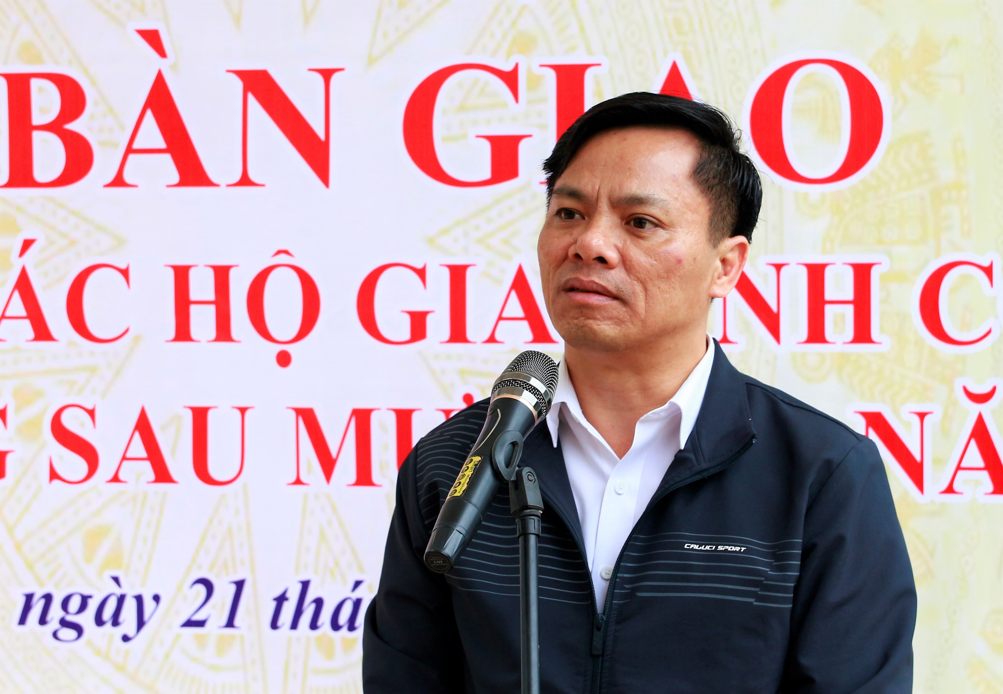 Đồng chí Nguyễn Thanh Tuấn - Bí thư Đảng ủy, Chủ tịch HĐND xã Hương Bình phát biểu tại lễ bàn giao nhà.