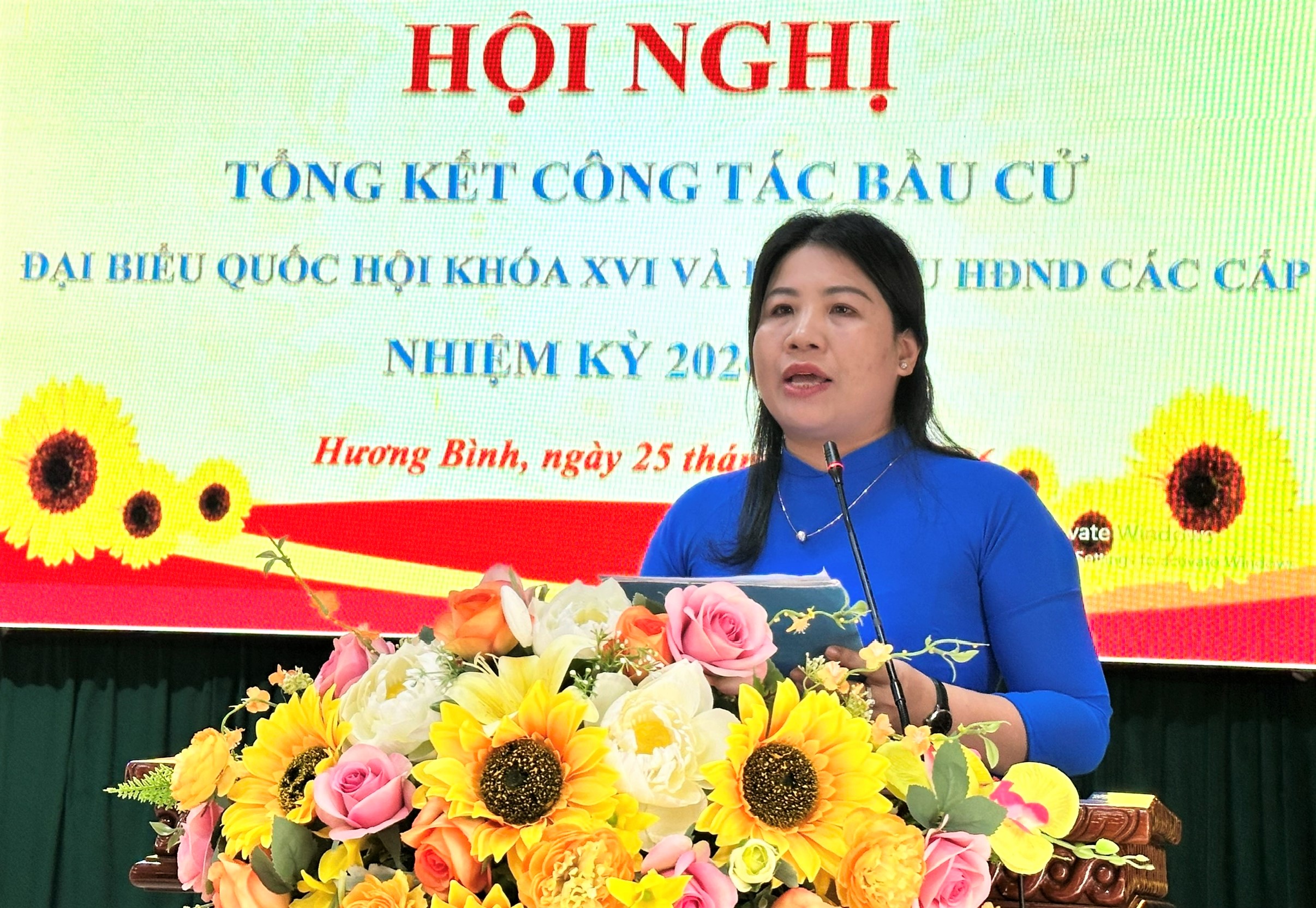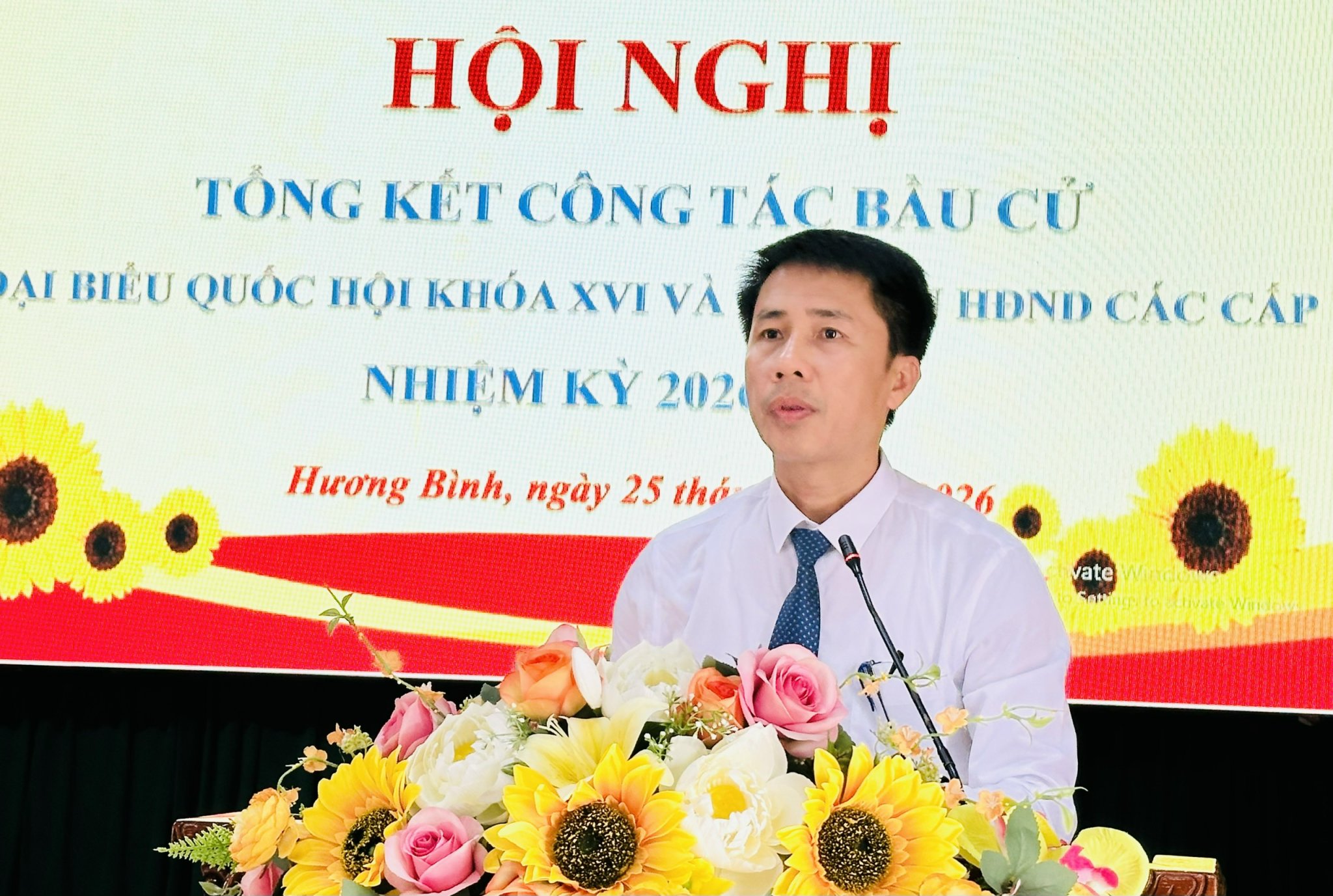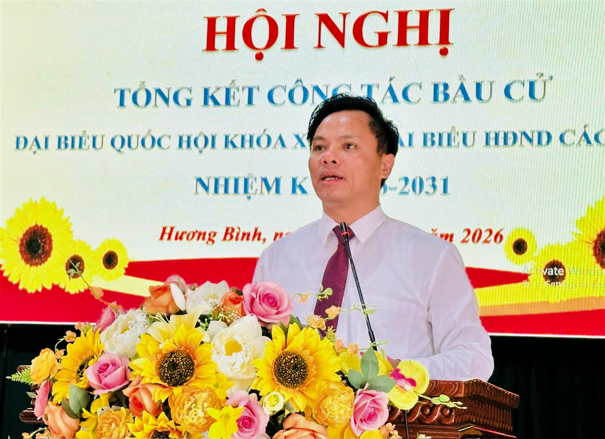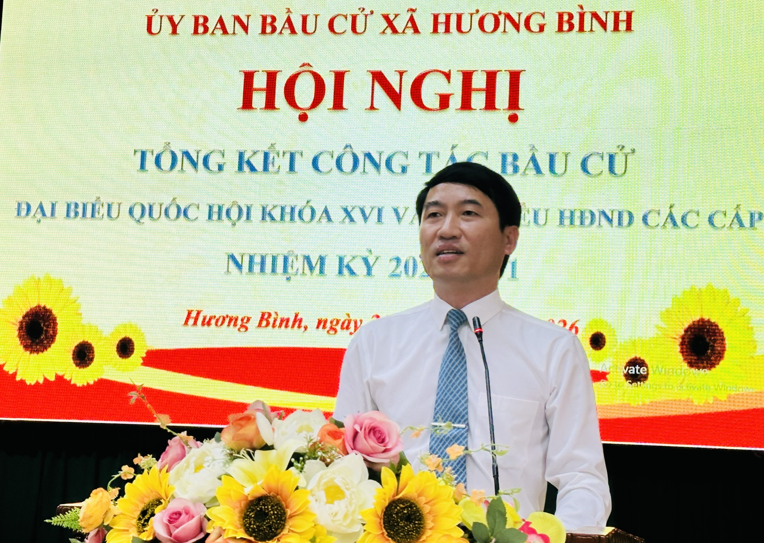 Phát biểu tại hội nghị, đồng chí Nguyễn Thanh Tuấn – Bí thư Đảng ủy, Chủ tịch HĐND xã khóa XXI, Chủ tịch Ủy ban bầu cử xã, nhiệm kỳ 2026 – 2031 nhấn mạnh, Với tinh thần dân chủ, đoàn kết, đổi mới, kỷ cương và trách nhiệm, cuộc bầu cử đại biểu Quốc hội và HĐND các cấp, nhiệm kỳ 2026 - 2031 ở xã Hương Bình đã thành công tốt đẹp. Thời gian tới, đề nghị các đại biểu tiếp tục phấn đấu, phát huy vai trò trách nhiệm, có nhiều đóng góp tâm huyết, thiết thực để thực hiện tốt nhiệm vụ trong nhiệm kỳ tới.