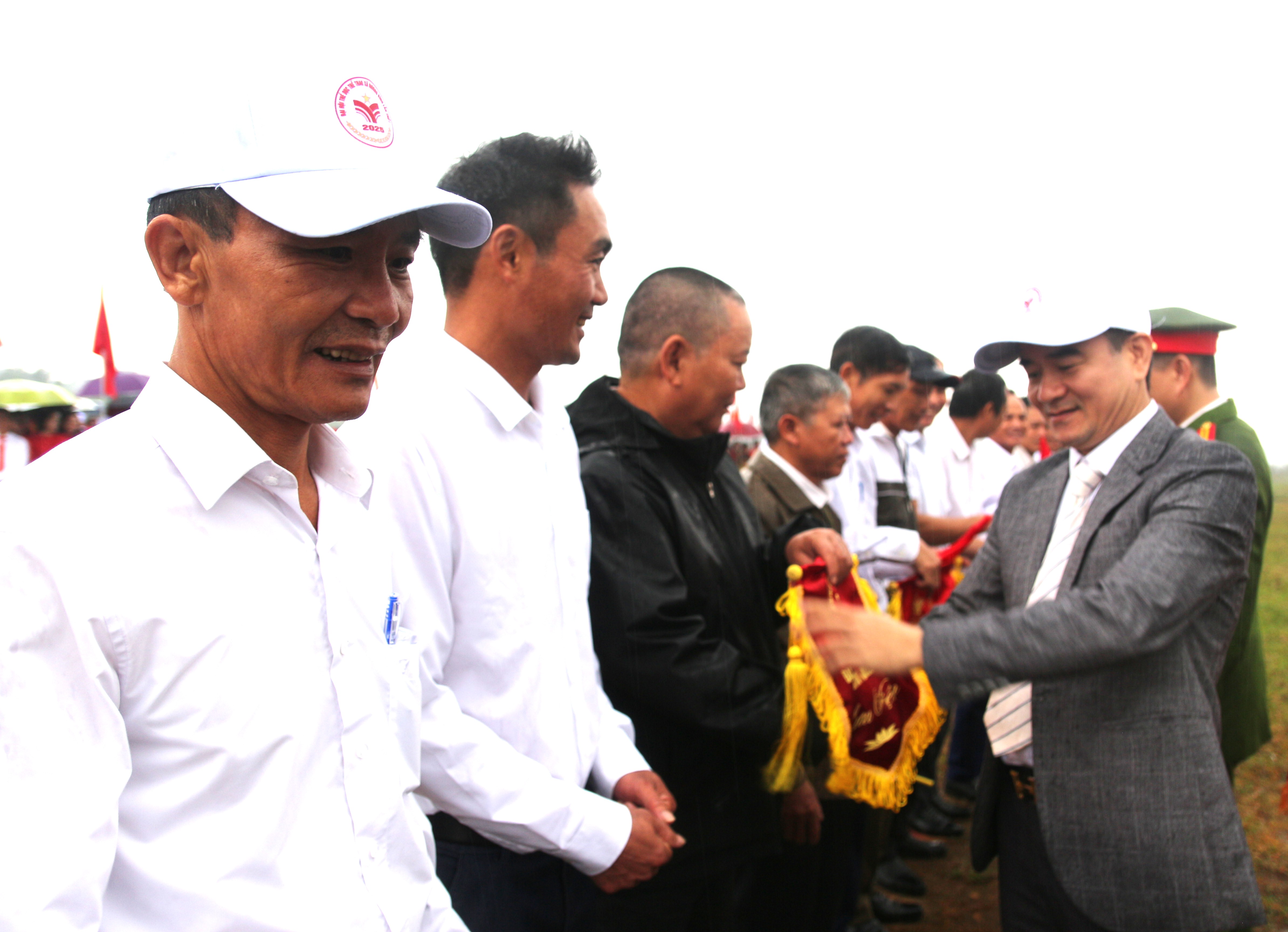 Tặng cờ lưu niệm cho các đơn vị tham gia đại hội.
