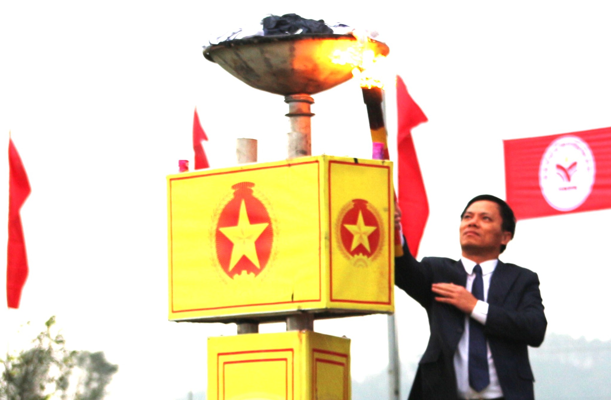 Đồng chí Nguyễn Thanh Tuấn – Bí thư Đảng ủy, Chủ tịch HĐND xã đốt đuốc truyền thống