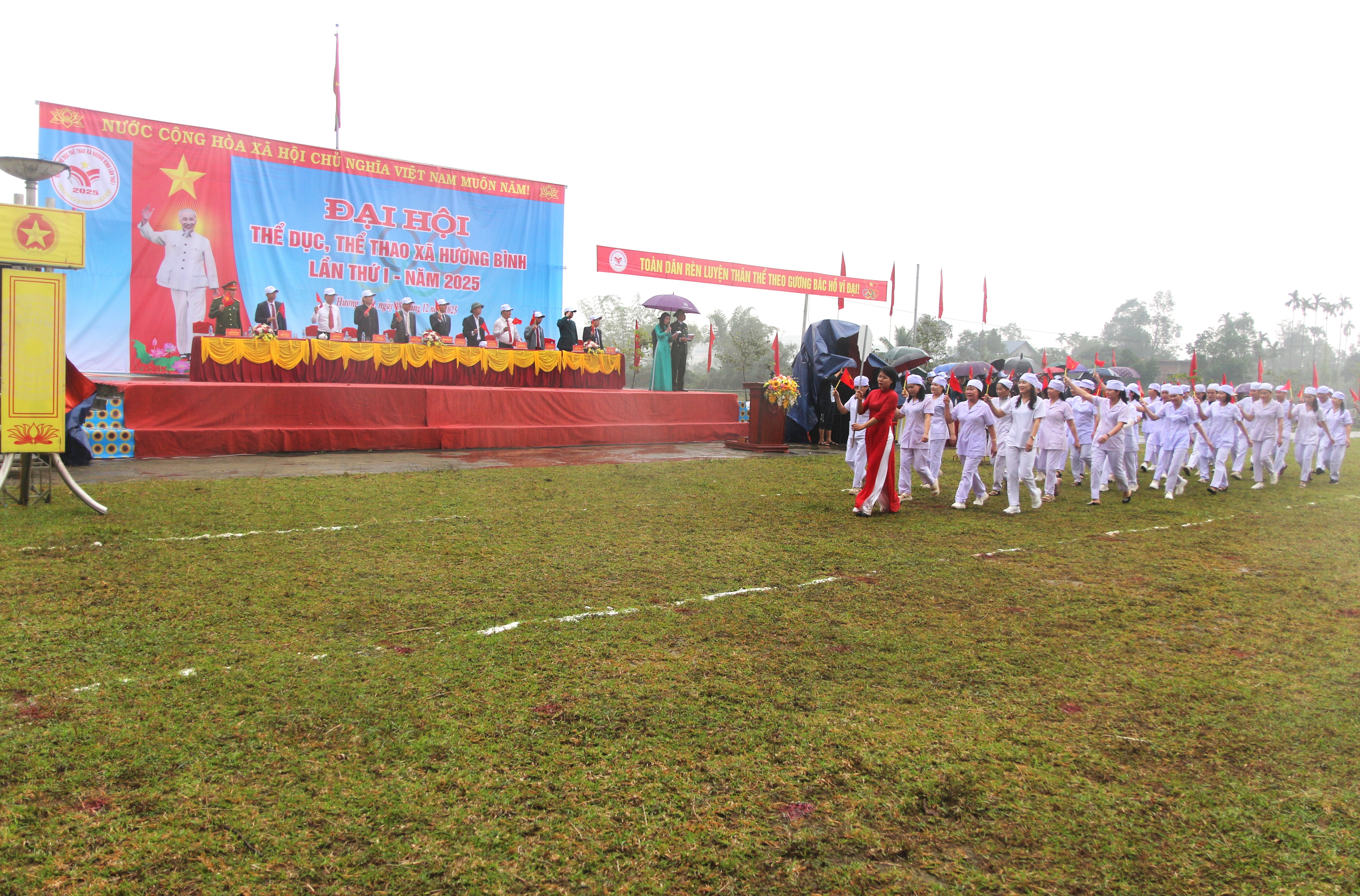 Cũng tại lễ khai mạc đã diễn ra chương trình nghệ thuật đồng diễn chào mừng đại hội với các màn đồng diễn do học sinh các trường Tiểu học Hương Bình và Hội LHPN xã thể hiện. Đồng thời các vận động viên sẻ tham gia tranh tài các nội dung bóng chuyền da nam, bóng chuyền hơi nữ, kéo co nam nữ, bóng bàn, điền kinh...
