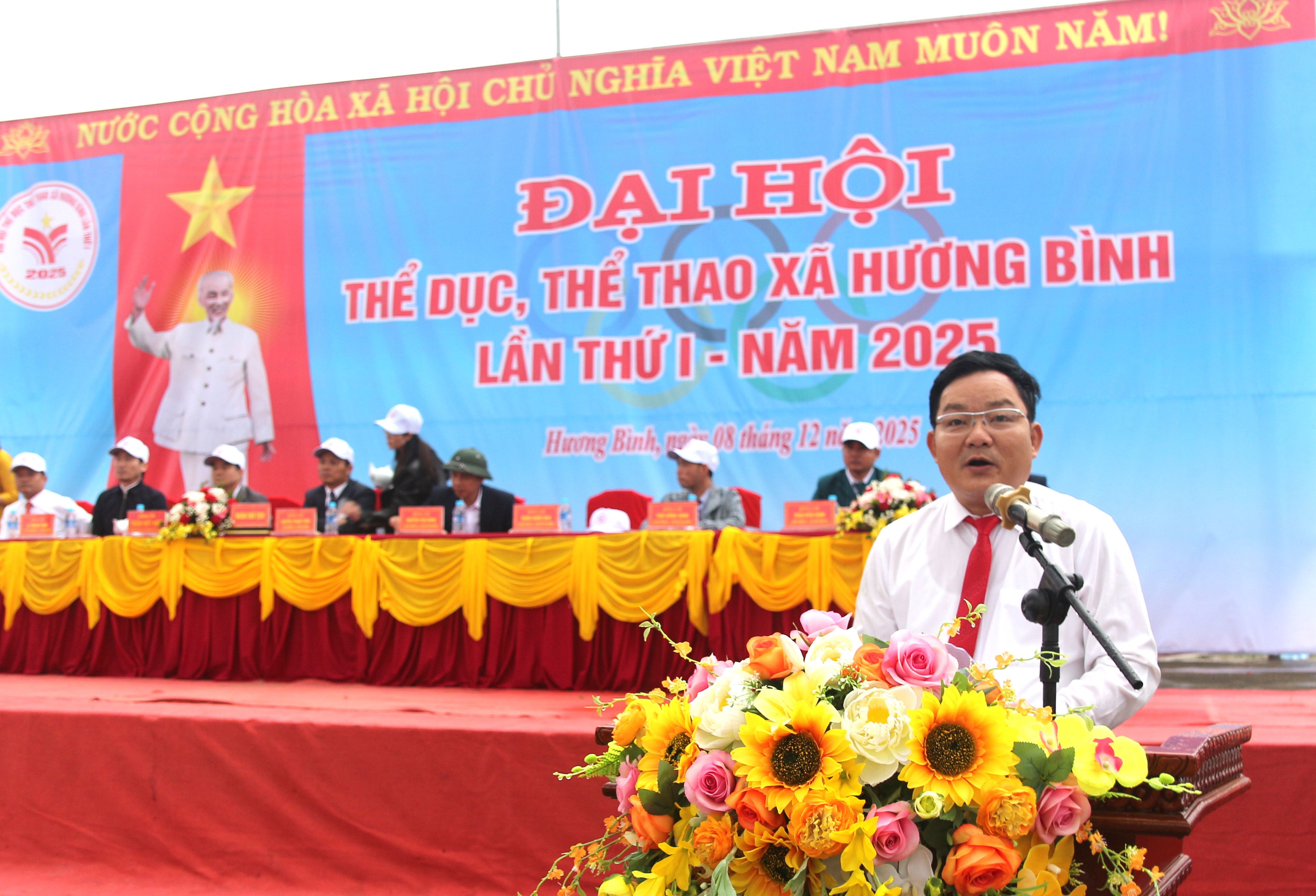 Phát biểu khai mạc đại hội, đồng chí Đặng Quốc Bảo - Phó Chủ tịch UBND xã nhấn mạnh, Đại hội TDTT xã Hương Bình lần thứ I, năm 2025 là một sự kiện có ý nghĩa quan trọng trong đời sống tinh thần của Nhân dân, là dịp để tôn vinh và biểu dương các lực lượng tham gia TDTT, khẳng định sự trưởng thành của thể dục thể thao xã nhà.