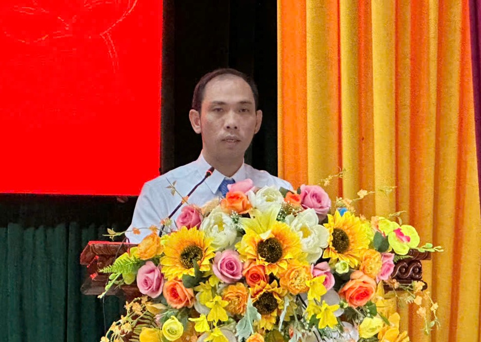 Đồng chí Đặng Quốc Bảo - PCT UBND xã Hương Bình trình bày báo cáo.
