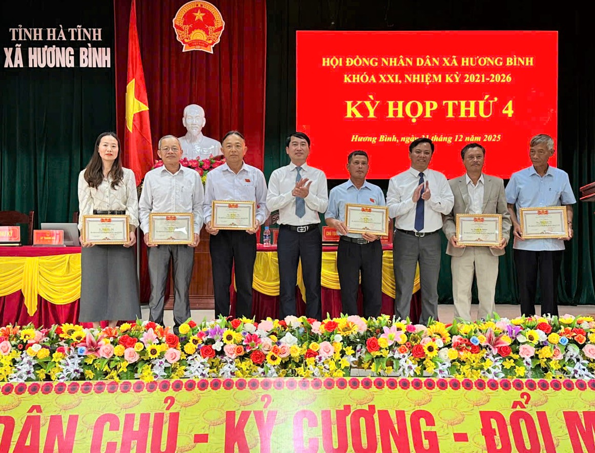 Nhân dịp này, Hội đồng nhân dân xã Hương Bình tặng Giấy khen cho 6 cá nhân có thành tích xuất sắc trong hoạt động HĐND khóa XXI, nhiệm kỳ 2021 – 2026.