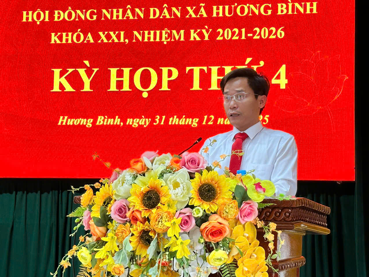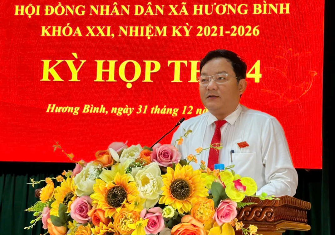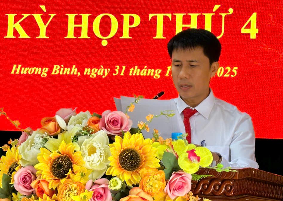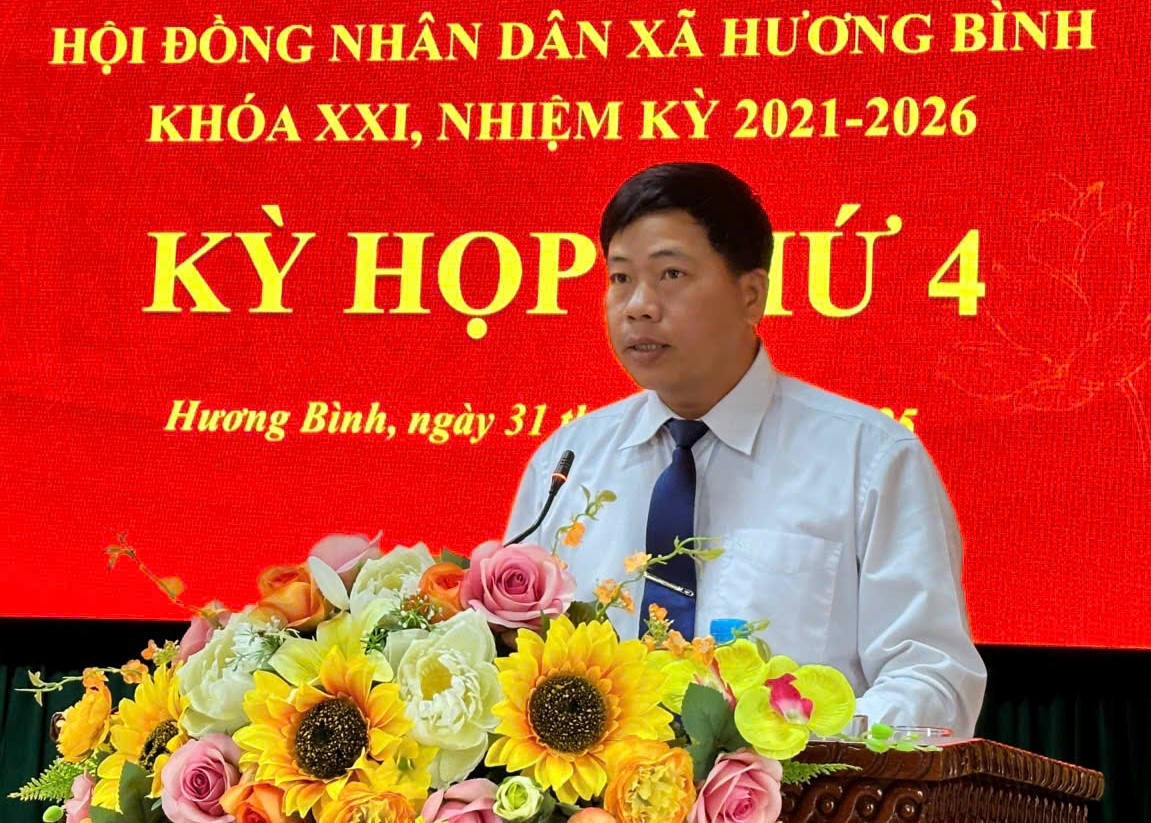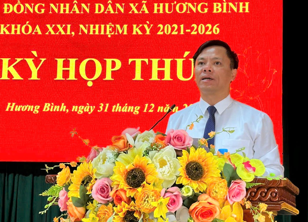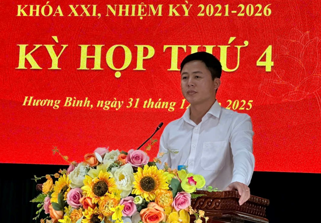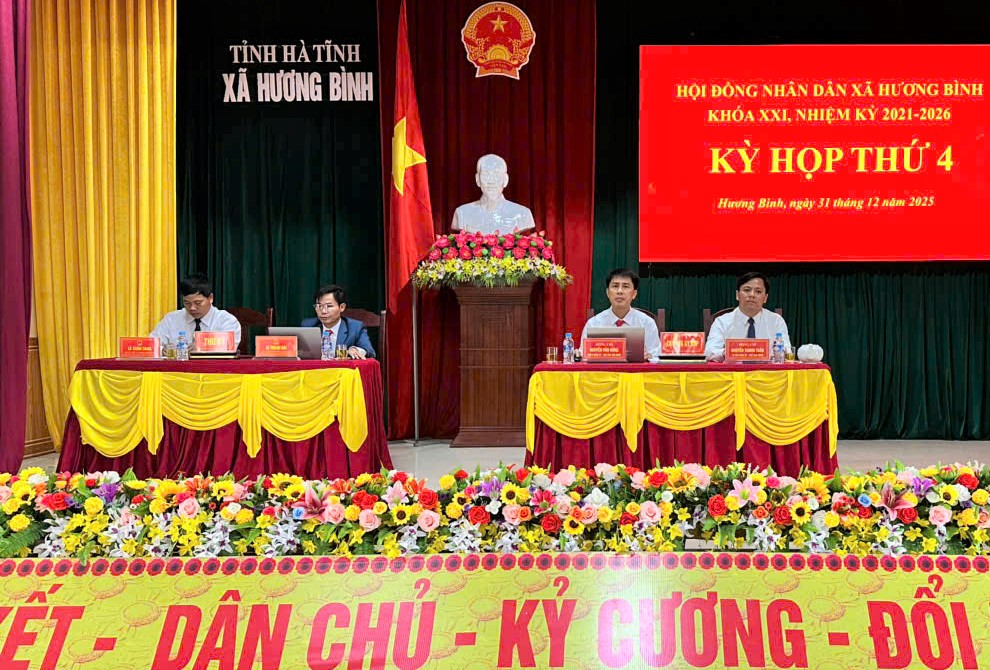 Ngày 31/12/2025, Hội đồng nhân dân xã Hương Bình (Hà Tĩnh) tổ chức Kỳ họp thứ IV, khóa XXI, nhiệm kỳ 2021 – 2026. Các đồng chí Nguyễn Thanh Tuấn – Bí thư Đảng ủy, Chủ tịch HĐND xã; Nguyễn Văn Hùng Phó Chủ tịch HĐND xã chủ trì hội nghị.