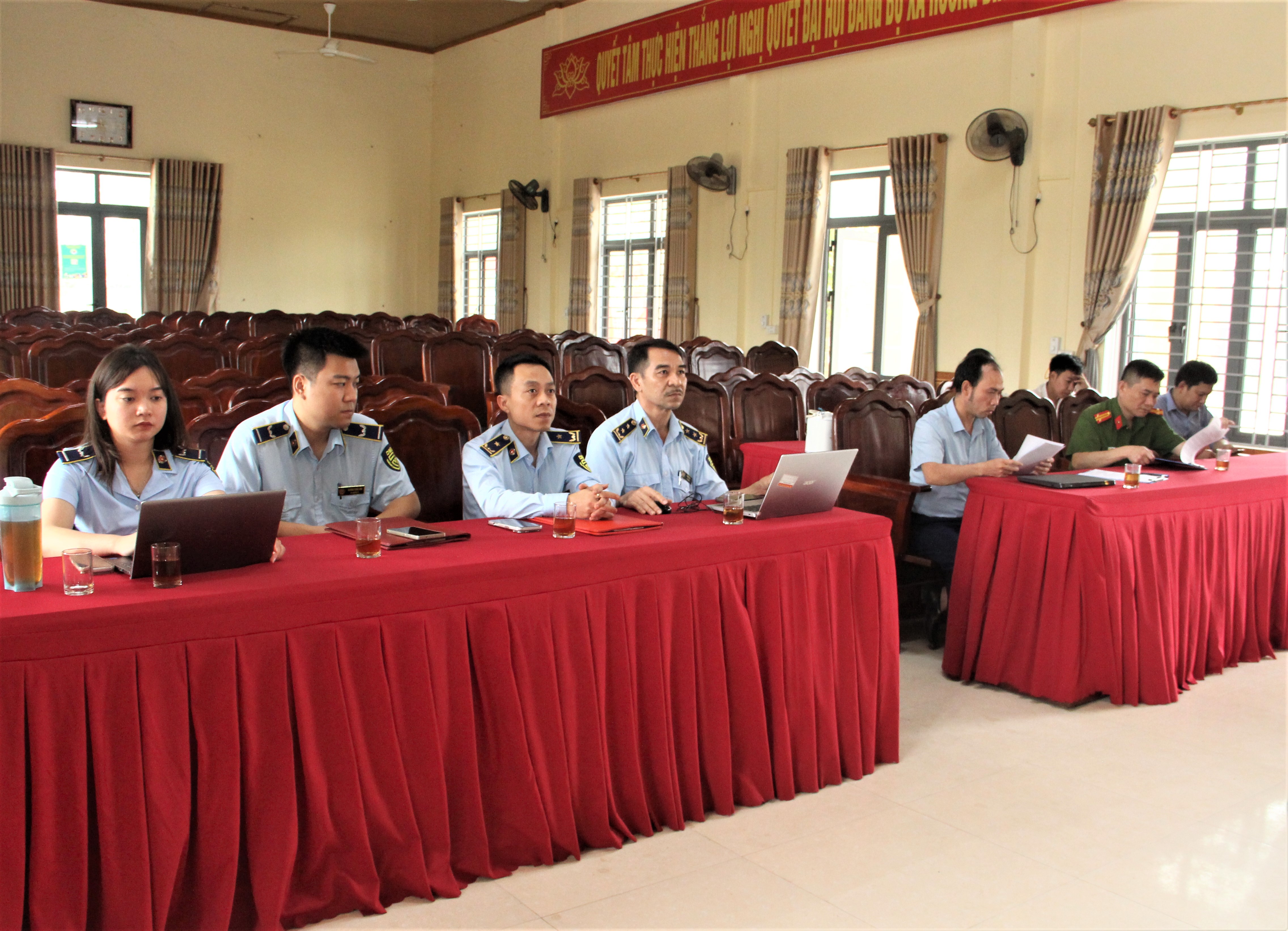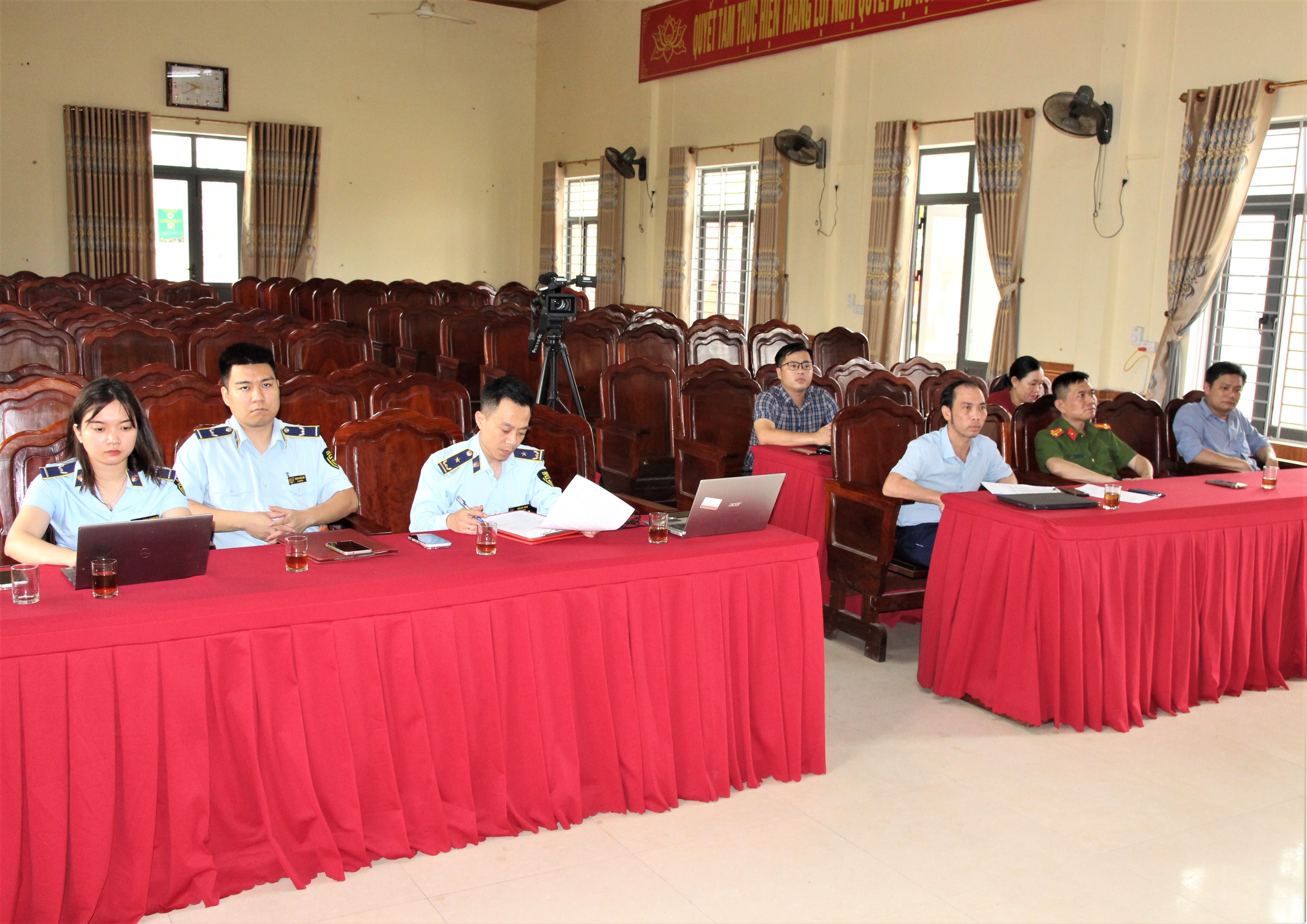 Tới dự có đồng chí Võ Viết Linh – Đội trưởng Đội Quản lý thị trường số 1, tỉnh Hà Tĩnh và đồng chí Thái Hồng Sang - Ủy viên Ban Thường vụ Đảng ủy, Phó Chủ tịch UBND xã.