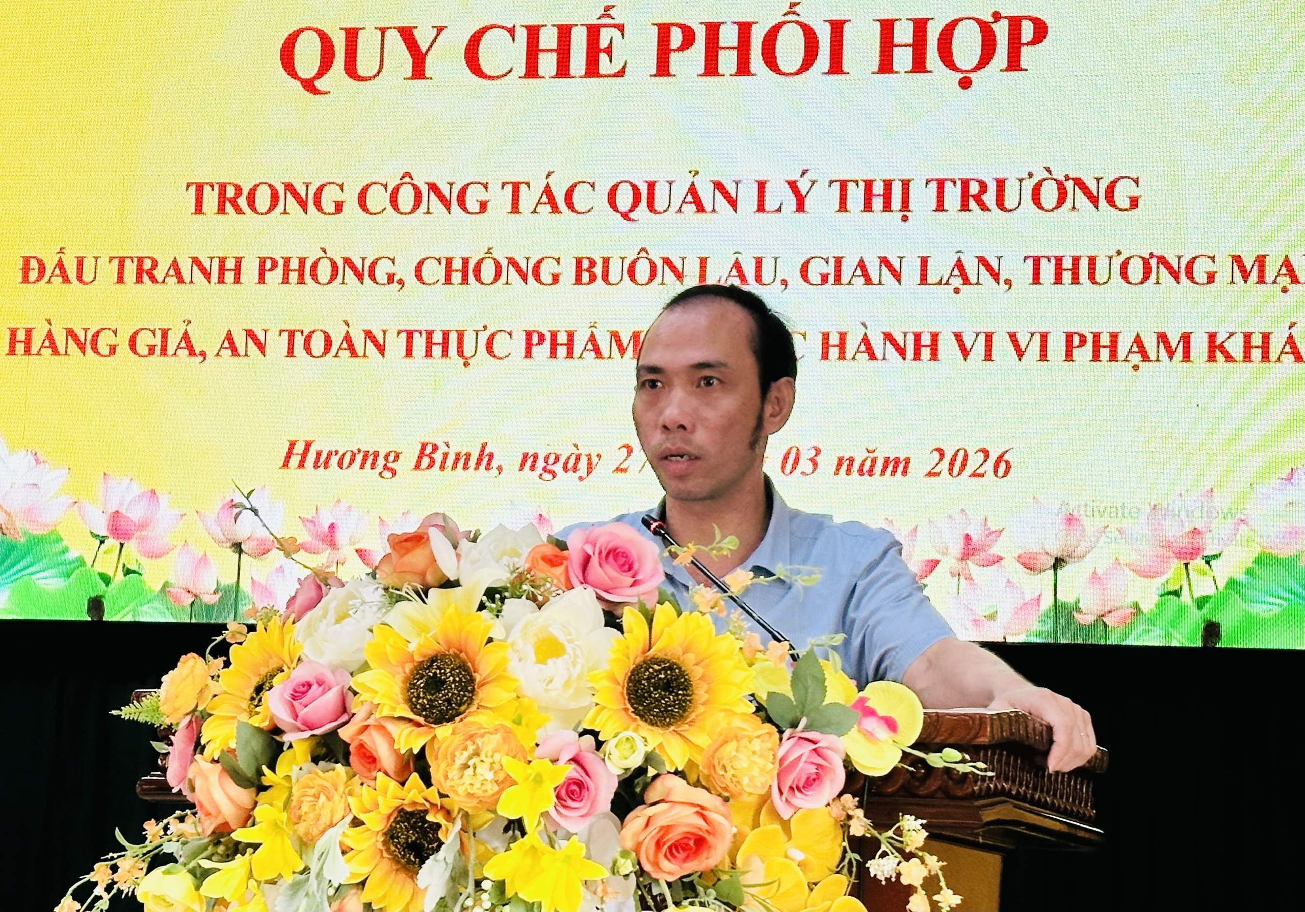 Sáng ngày 27/3/2026, UBND xã Hương Bình phối hợp Đội Quản lý thị trường số 1 tổ chức ký kết Quy chế phối hợp trong công tác Quản lý thị trường, đấu tranh phòng, chống buôn lậu, gian lận thương mại, hàng giả, an toàn thực phẩm và các hành vi vi phạm khác trên địa bàn xã.