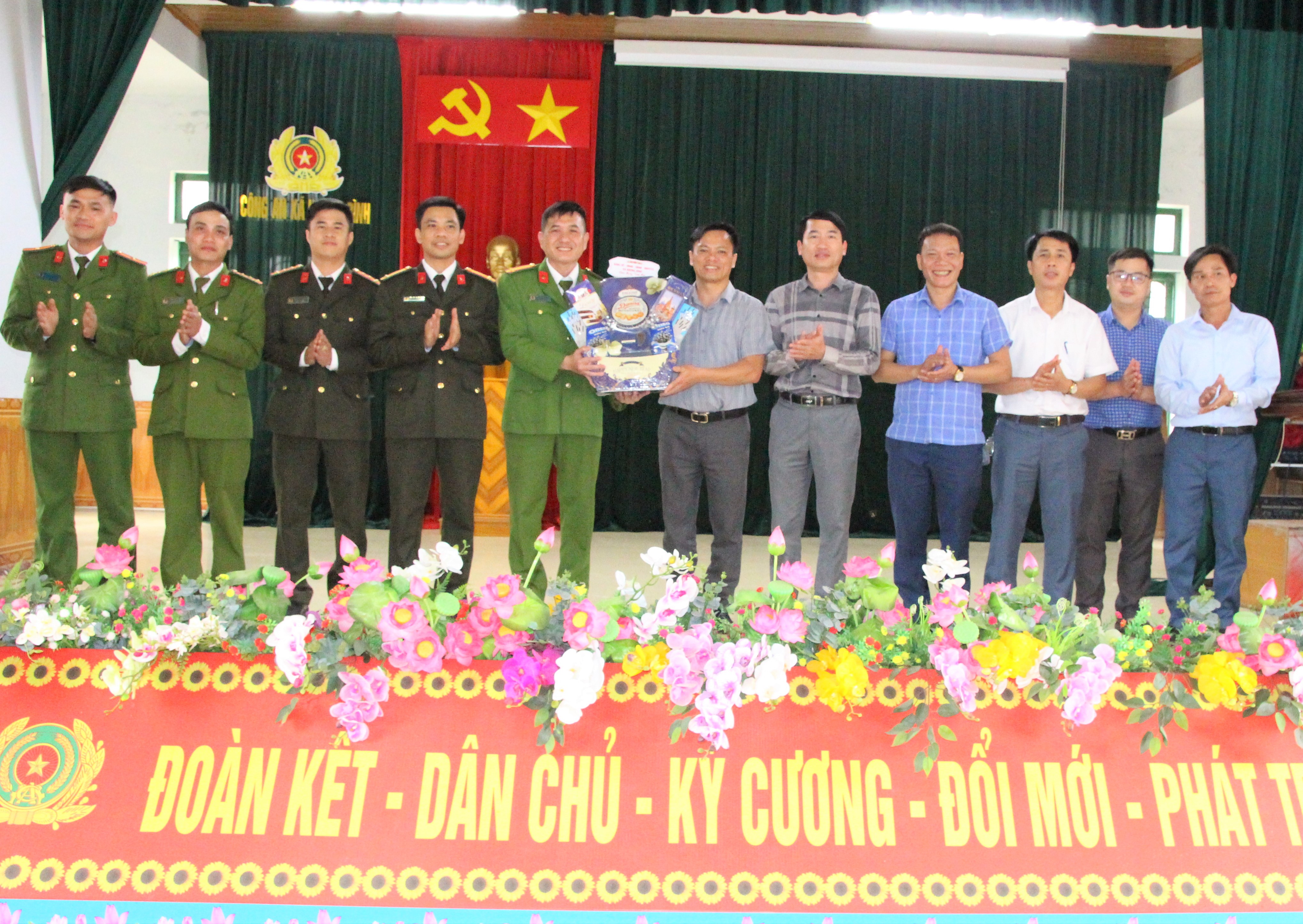 Đoàn cũng đã đến thăm và chúc Tết tập thể cán bộ, chiến sỹ Công an xã Hương Bình. Tại đây, Trung tá Nguyễn Hồng Sơn – Trưởng Công an xã đã thông tin, báo cáo tình hình ANTT trên địa bàn. Đồng thời triển khai một số phương án bảo đảm ANTT trong đêm giao thừa để nhân dân vui Tết, đón Xuân Bính Ngọ vui vẽ, an toàn.