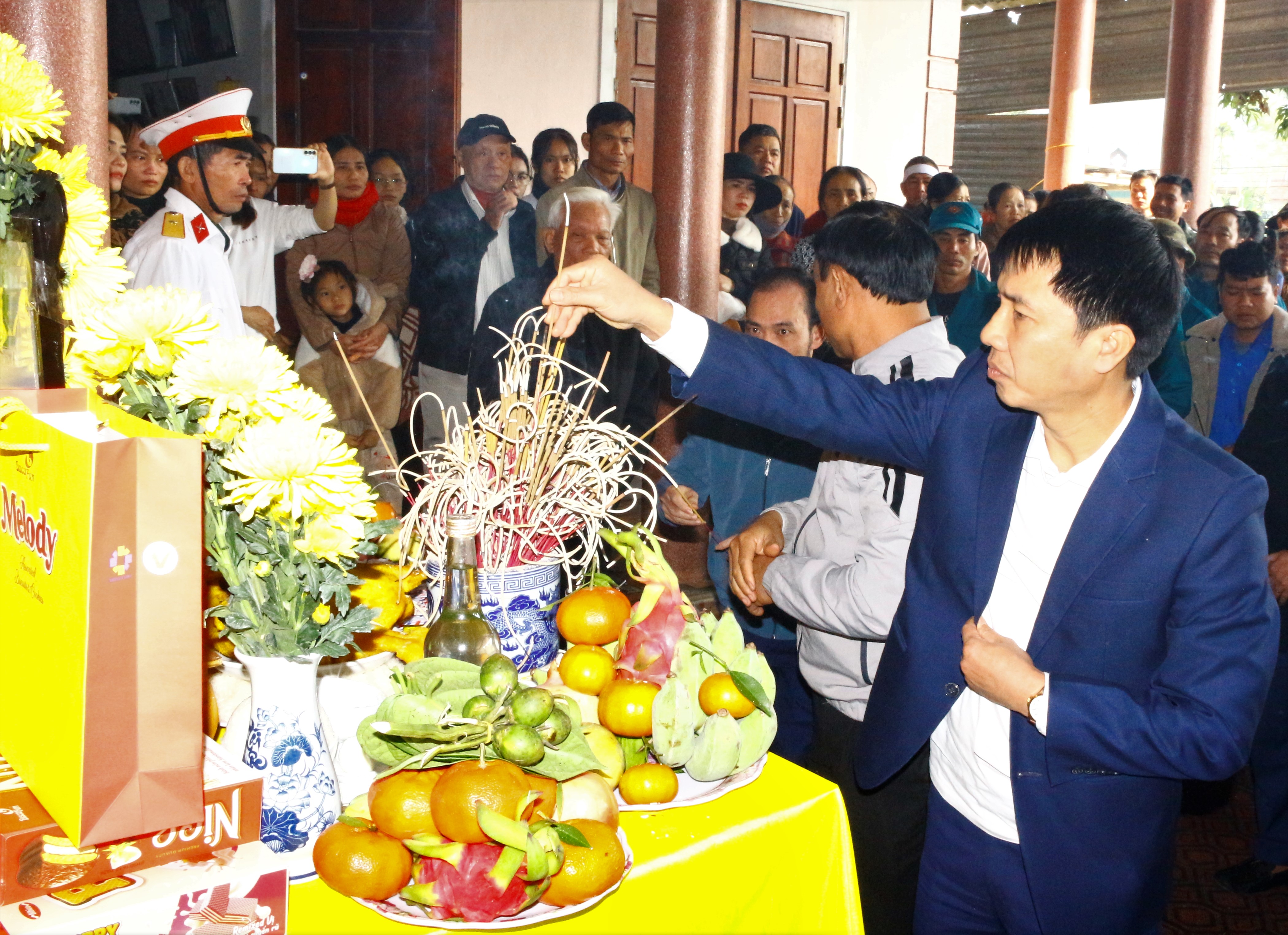 Các đại biểu, cán bộ, chiến sĩ lực lượng vũ trang, nhân dân xã Hương Bình và gia đình liệt sĩ đã dành phút mặc niệm, dâng hoa, dâng hương tưởng nhớ, bày tỏ lòng tri ân sâu sắc đối với người con ưu tú của quê hương đã anh dũng hy sinh vì độc lập, tự do của Tổ quốc.