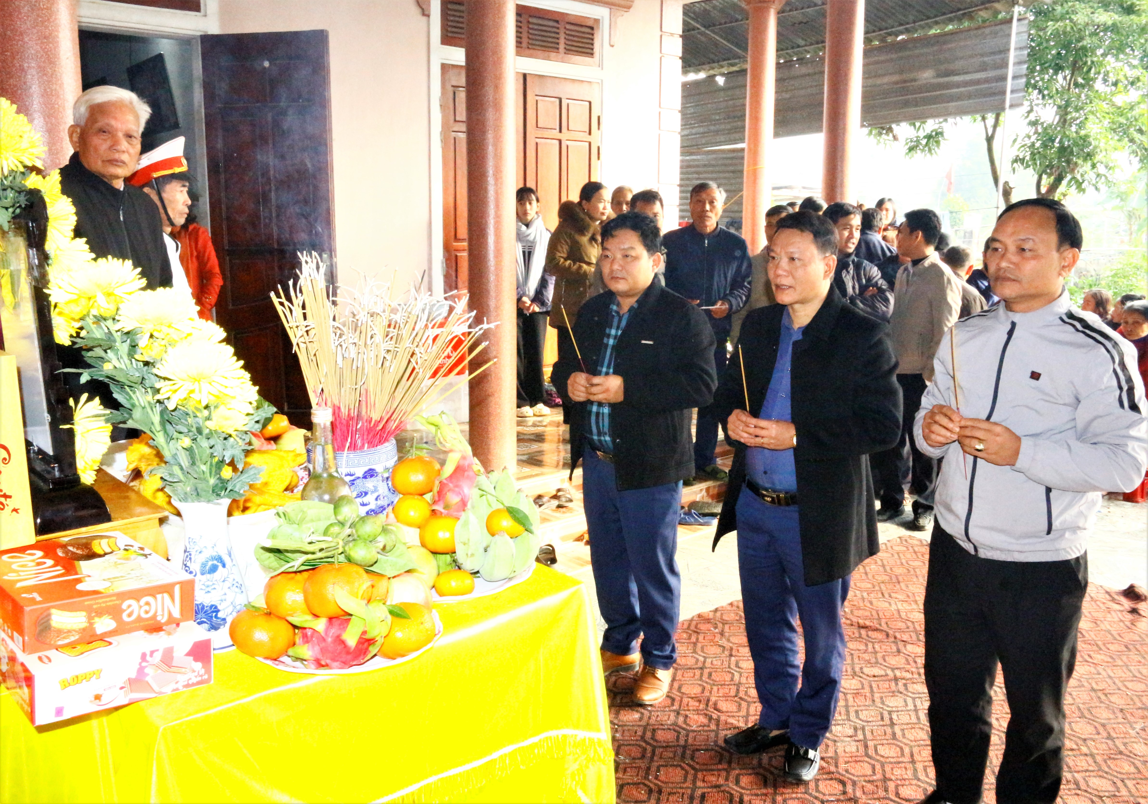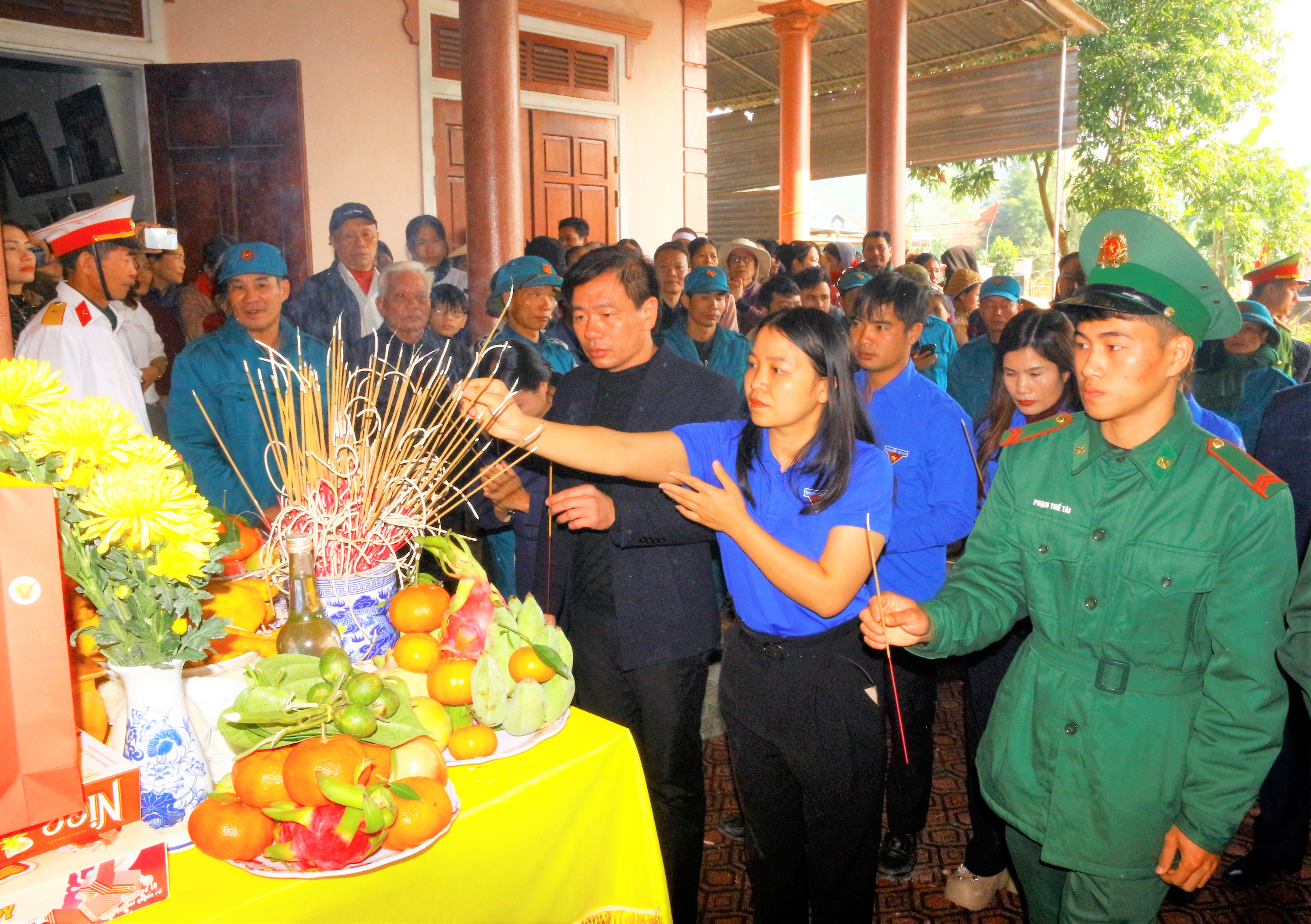 Tới dâng hương, dự Lễ đón nhận và an táng hài cốt liệt sĩ có các đồng chí Đoàn Thanh Hải – Phó Bí thư Thường trực Đảng ủy, Nguyễn Văn Hùng – Phó Chủ tịch HĐND xã, Đặng Quốc Bảo – Phó Chủ tịch UBND xã, Thái Hồng Sang - Phó Chủ tịch UBND xã, Nguyễn Đình Hậu - Chủ tịch Ủy ban MTTQ xã, Trần Văn Hương - Trưởng Phòng Văn hóa - Xã hội; đại diện các ban, ngành đoàn thể tổ chức chính trị xã hội, Công an, Quân sự, Đồn Biên phòng Hòa Hải, Ban công tác mặt trận thôn cùng bà con nhân dân trên địa bàn.