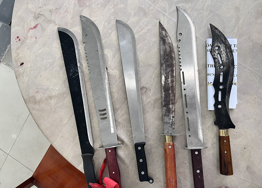 - Dao tự chế hoặc hoán cải (có cấu tạo, đặc điểm bao gồm: tay cầm, lưỡi dao; tay cầm dài từ 30cm trở lên, lưỡi có chiều dài từ 05cm trở lên, sắc nhọn hoặc sắc hoặc nhọn).