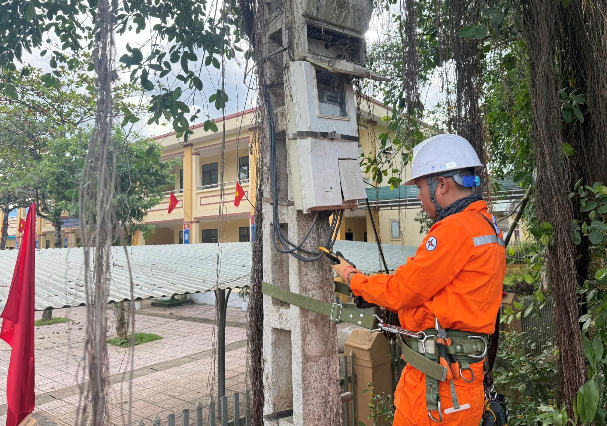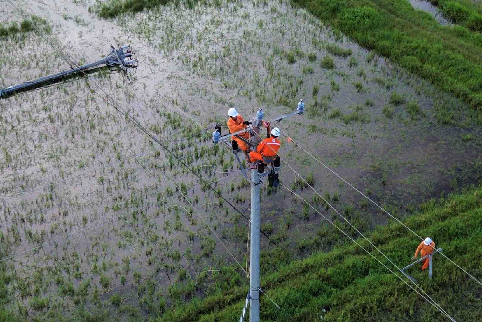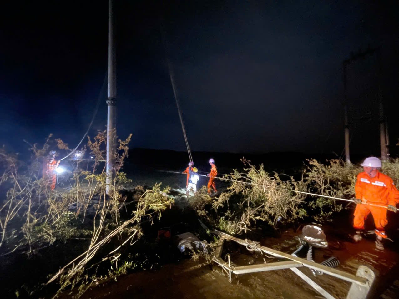 Ngành Điện lực khắc phục sự cố trong mưa bão vừa qua.