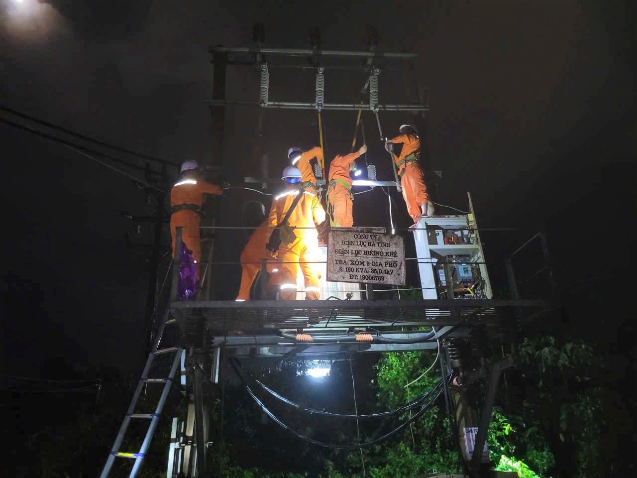 Đội quản lý Điện lực Khu vực Hương Khê thâu đêm kiểm tra, xử lý sự cố an toàn lưới điện.