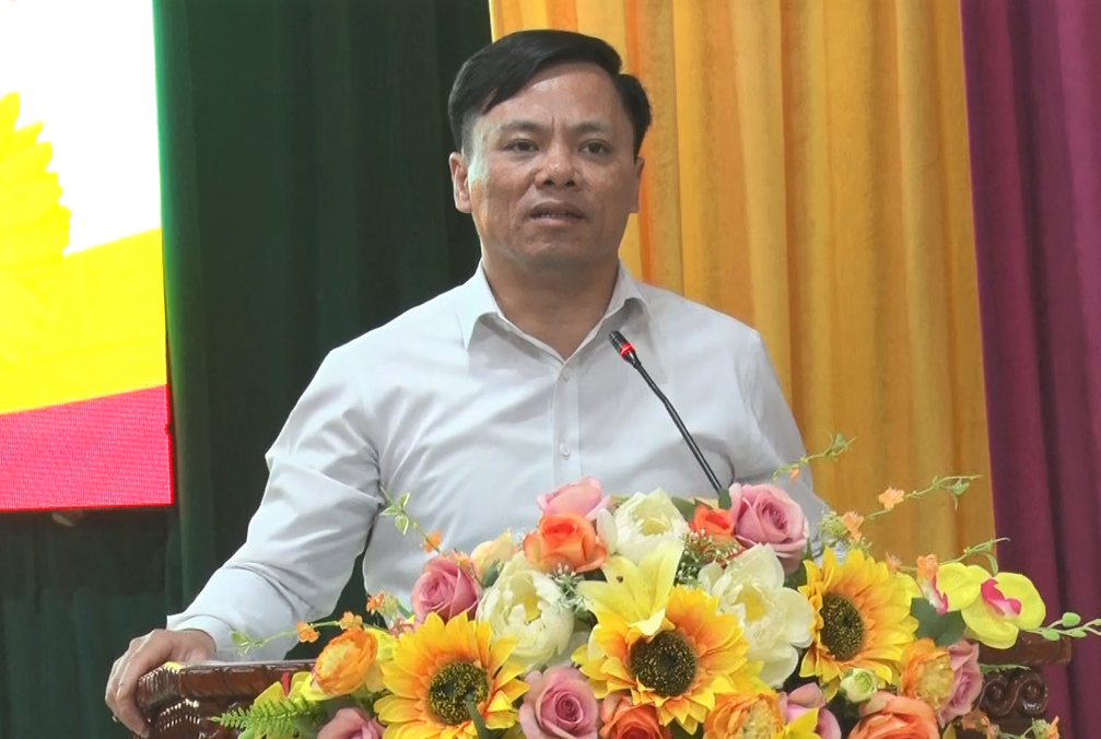 Đồng chí Nguyễn Thanh Tuấn - Bí thư Đảng ủy, Chủ tịch HĐND xã phát biểu tại hội nghị.