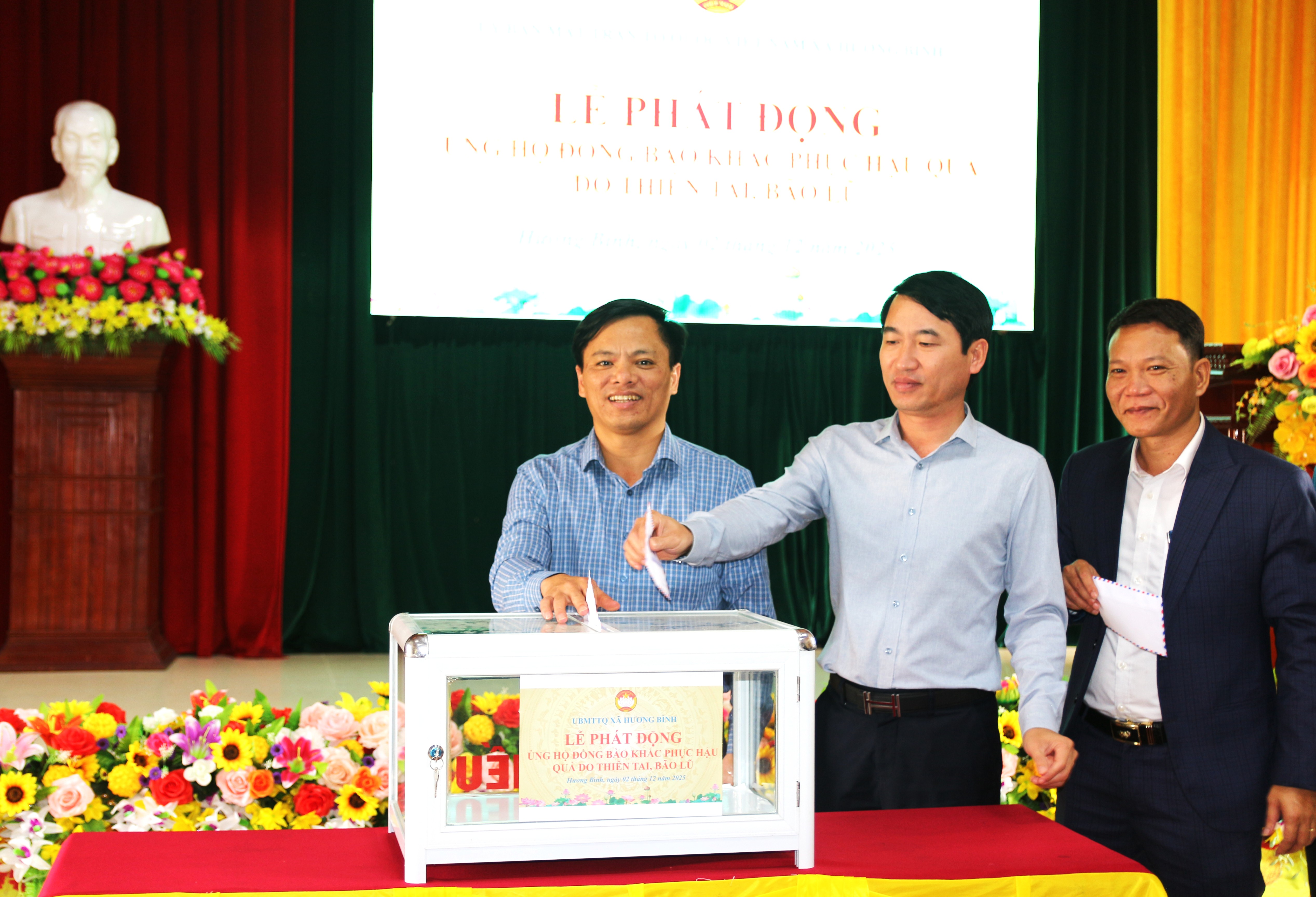 Để góp phần chia sẻ, động viên bà con nhân dân vùng lũ sớm ổn định cuộc sống, Ban Thường trực Ủy ban MTTQ Việt Nam xã Hương Bình kêu gọi cán bộ công chức, viên chức, người lao động, lực lượng vũ trang, doanh nghiệp và bà con Nhân dân chung tay chia sẻ, ủng hộ, giúp đỡ nhân dân vùng lũ Hà Tĩnh và các tỉnh, thành phố khu vực miền Trung - Tây Nguyên và Hà Tĩnh để sớm vượt qua giai đoạn khó khăn do bão lũ gây ra.