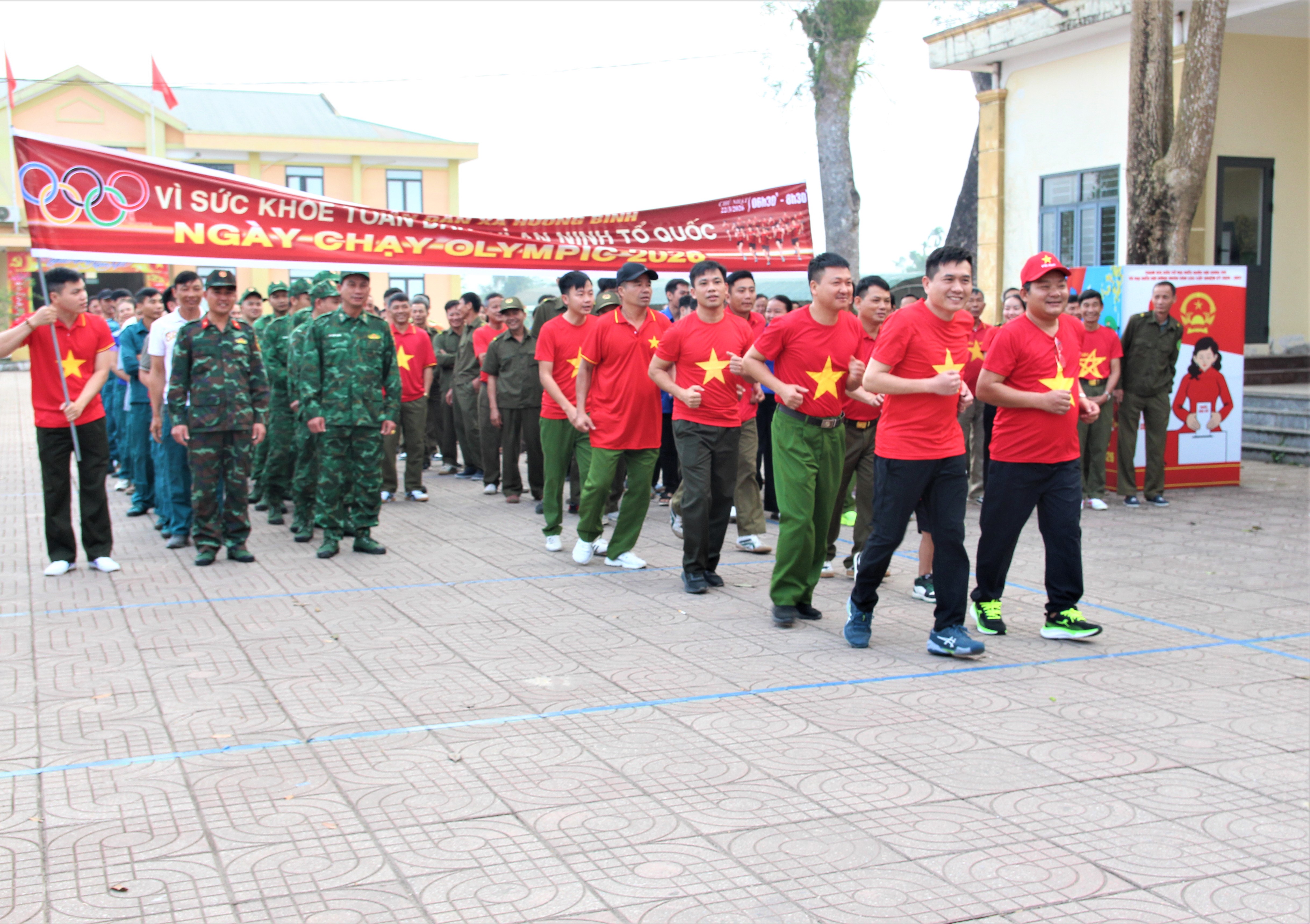 Ngay sau lễ phát động, các lực lượng cán bộ, chiến sĩ Công an xã; Ban Chỉ huy quân sự xã; lực lượng tham gia bảo vệ an ninh, trật tự ở cơ sở; cán bộ, công chức, viên chức; học sinh, sinh viên; đoàn viên, hội viên các tổ chức chính trị - xã hội và các tầng lớp Nhân dân trên địa bàn xã đã tham gia chạy với cự ly 2km.