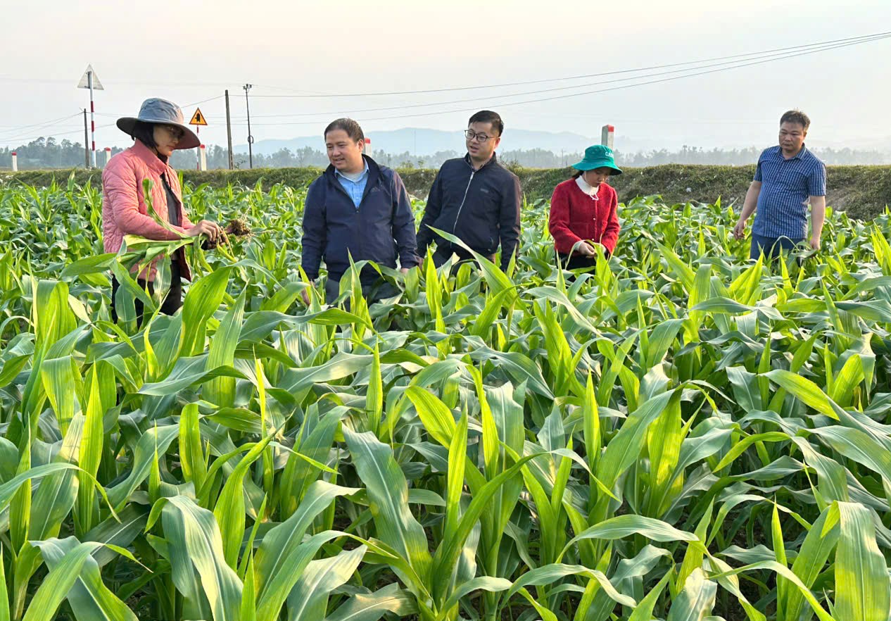 Ngành chuyên môn kiểm tra Ngô vụ trên địa bàn xã Hương Bình.