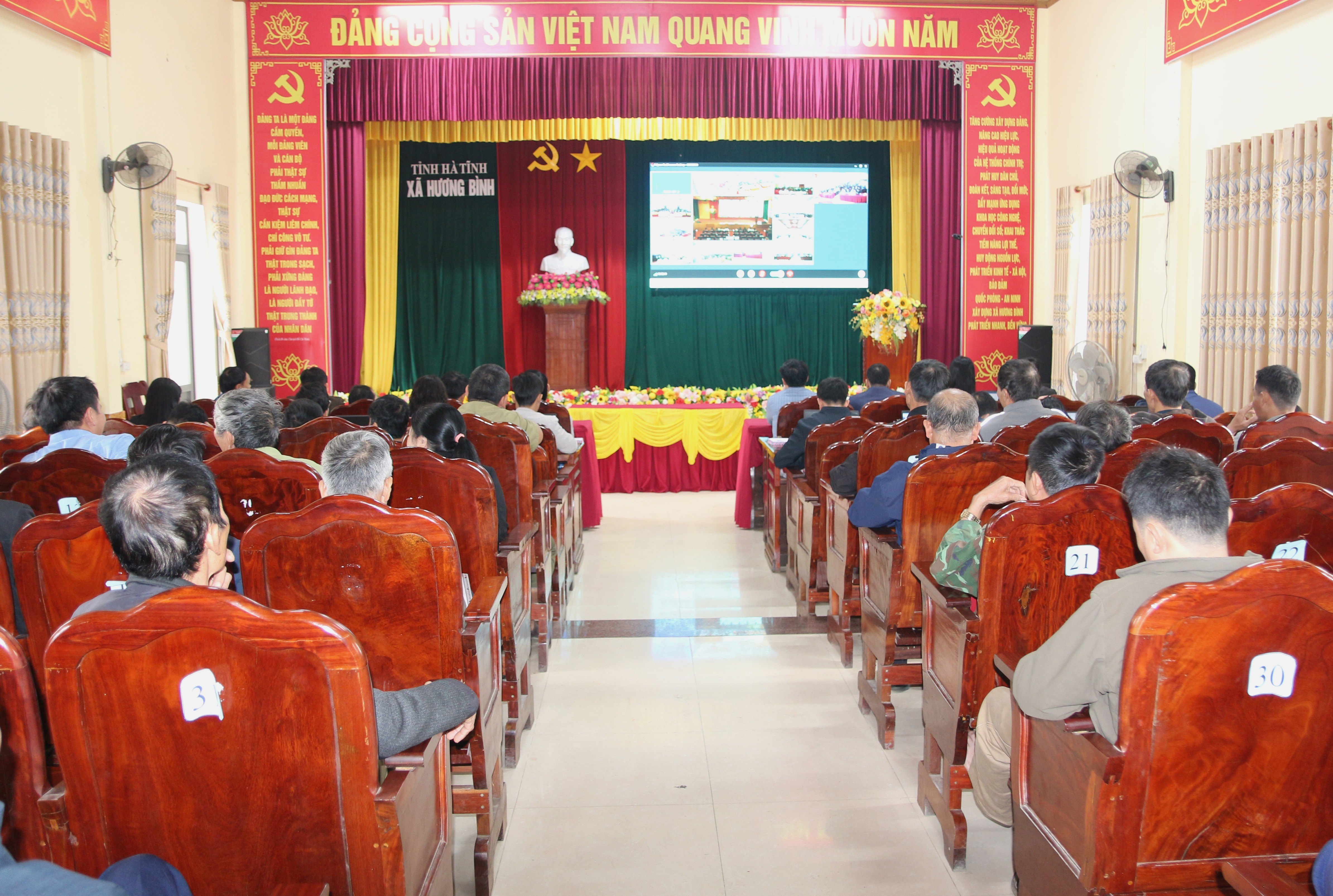 Tại điểm cầu trực tuyến xã Hương Bình có các đồng chí Nguyễn Thanh Tuấn – Bí thư Đảng ủy, Chủ tịch HĐND xã; Đoàn Thanh Hải – Phó Bí thư Thường trực Đảng Ủy; Lê Quang Vinh – Phó Bí thư Đảng ủy, Chủ tịch UBND xã. Cùng dự có các đồng chí trong Thường trực Đảng ủy, Ủy viên Ban Thường vụ Đảng ủy, HĐND, lãnh đạo UBND và trưởng phó các ban, ngành đoàn thể, Bí thư, Trưởng ban công tác mặt trận thôn, thôn trưởng.