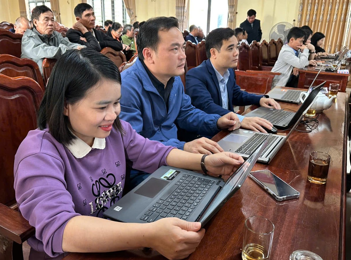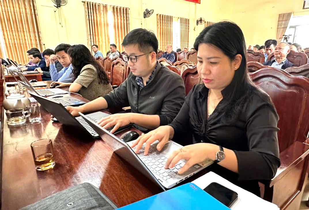 Các đại biểu dự hội nghị tại điểm cầu xã Hương Bình